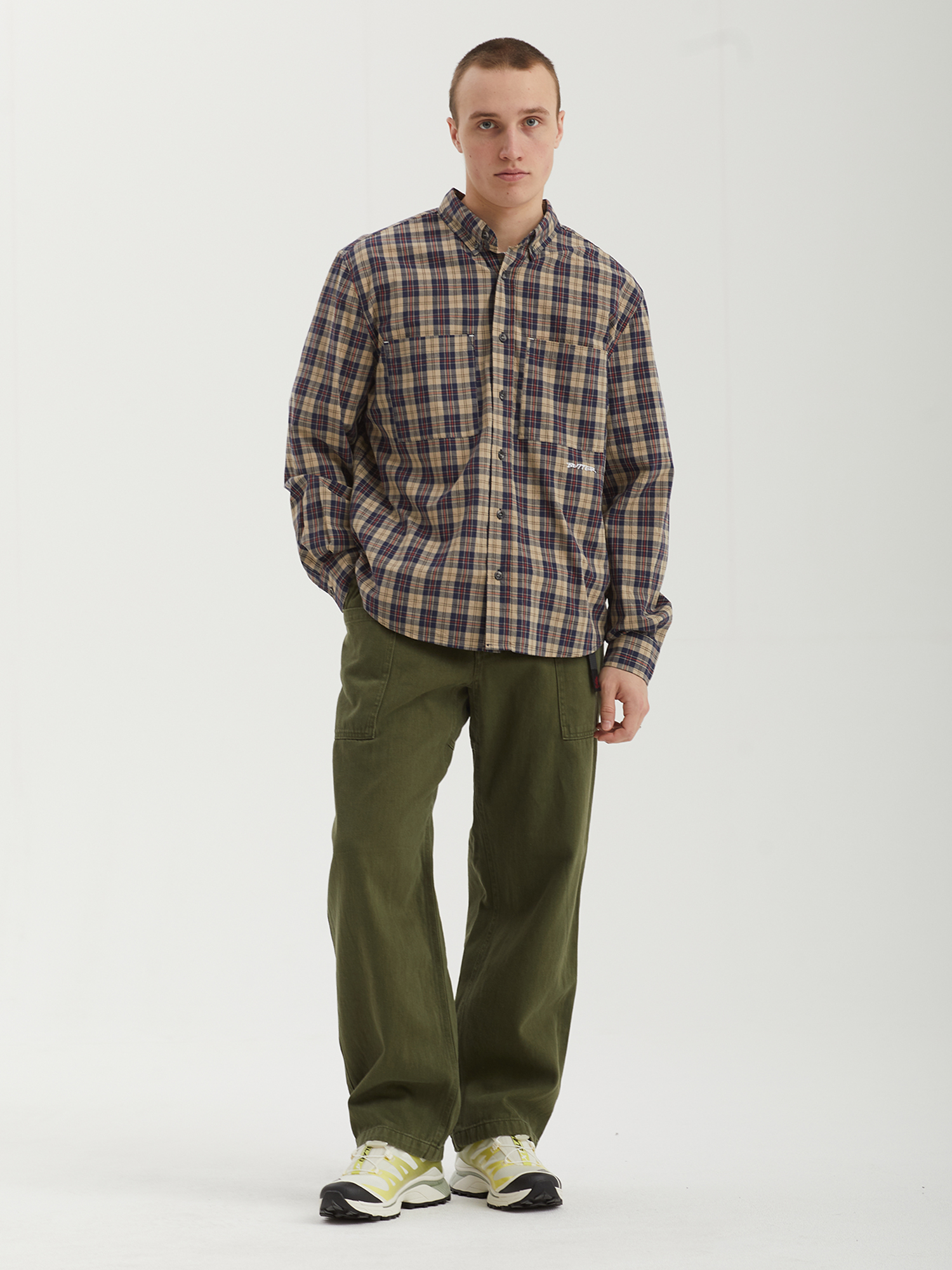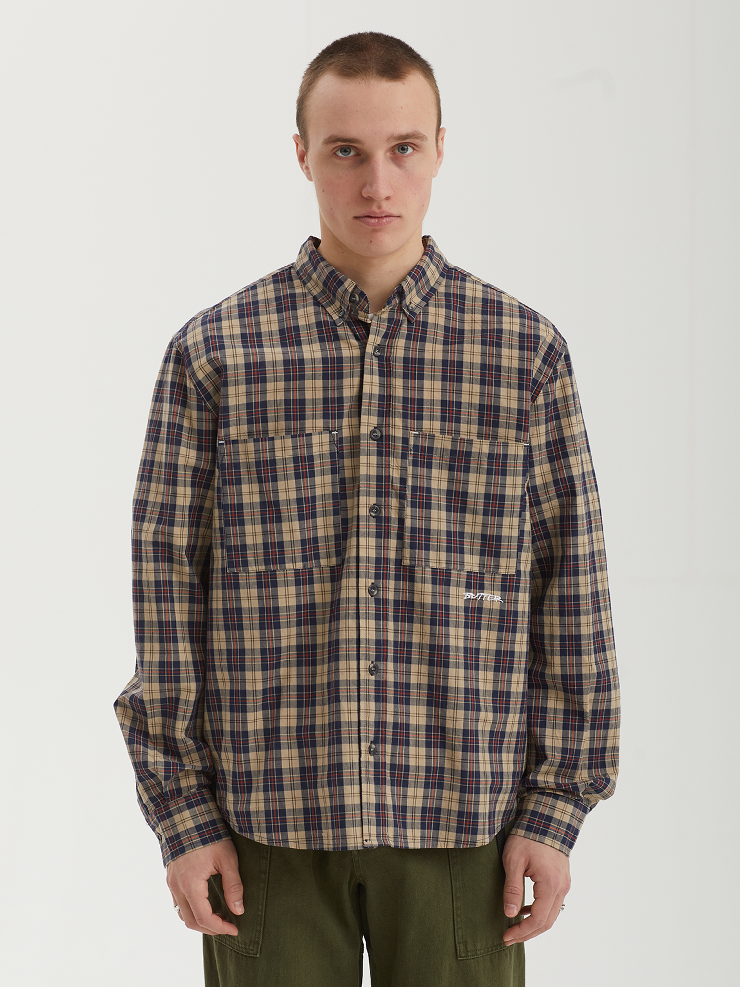 Рубашка с длинным рукавом Butter Goods из хлопкового материала с рисунком в клетку.