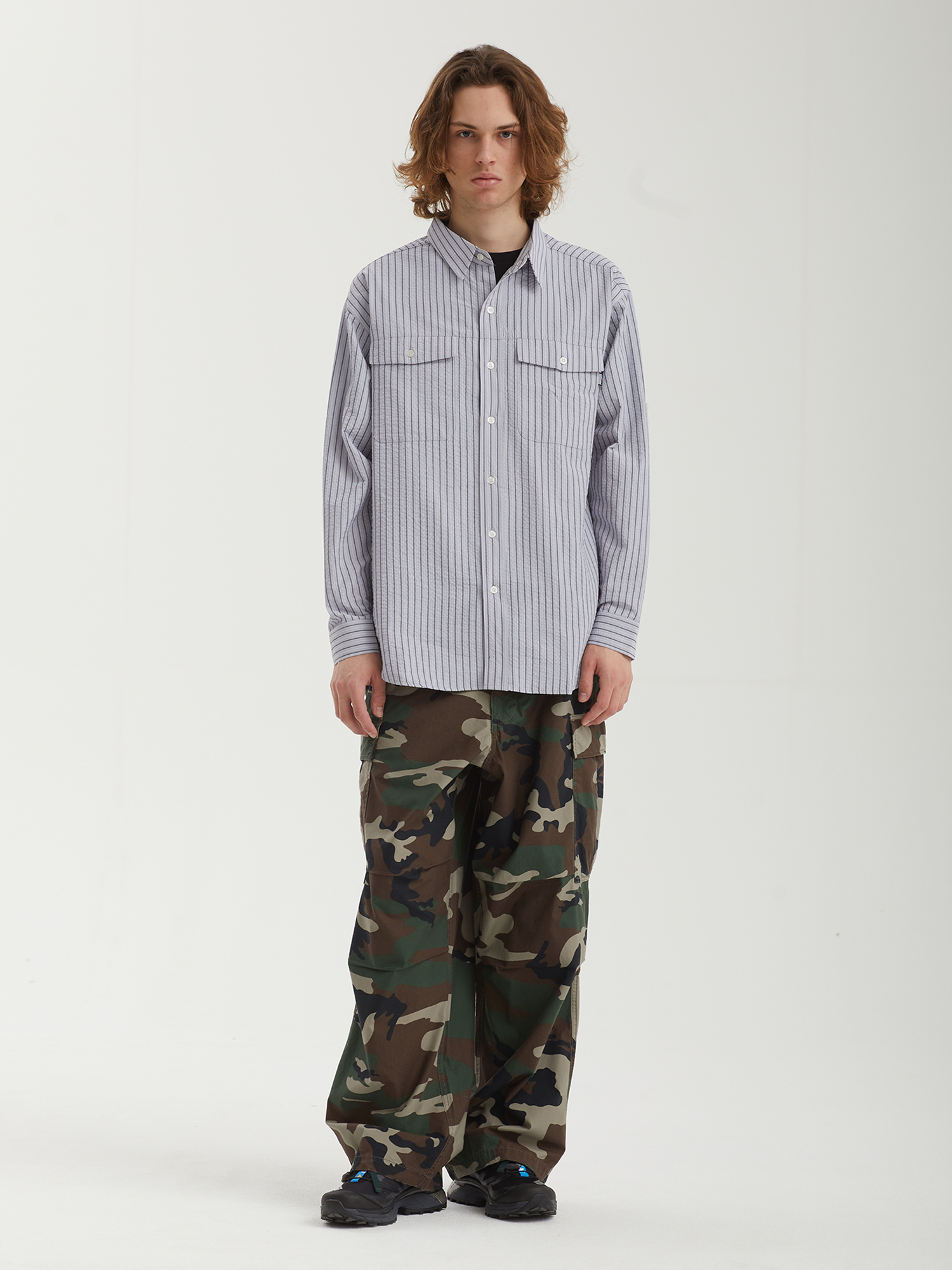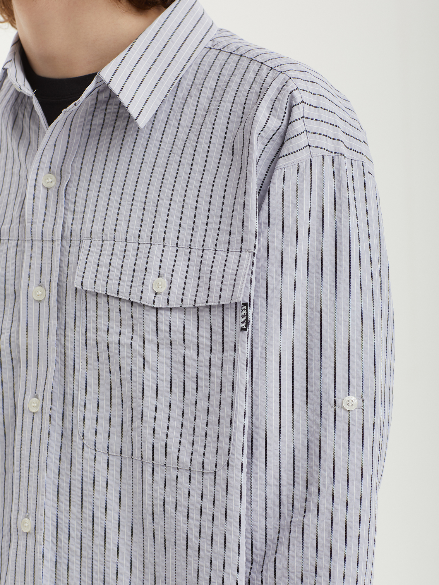Рубашка Metalwood с верхом из легкого жатого материала на сетчатой подкладке. На спине — широкая прорезь для дополнительной вентиляции.