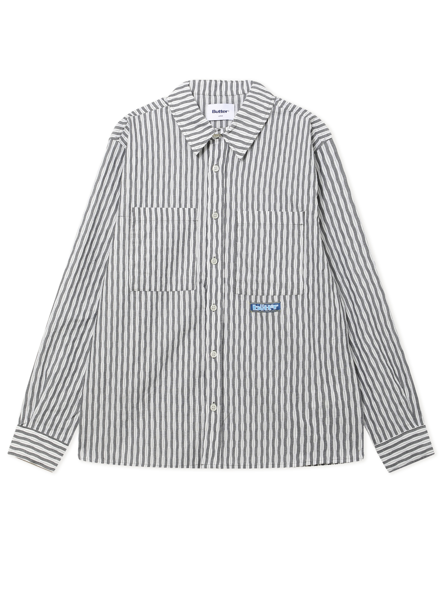 Рубашка с длинным рукавом Butter Goods из жатого хлопкового материала с рисунком в тонкую полоску.