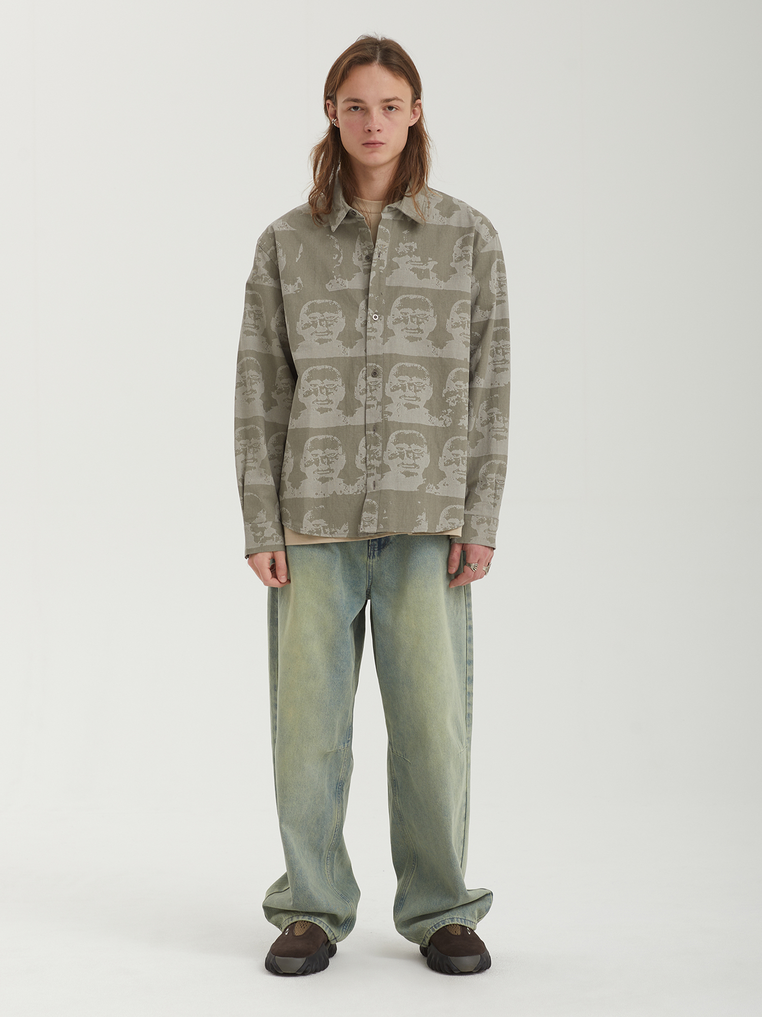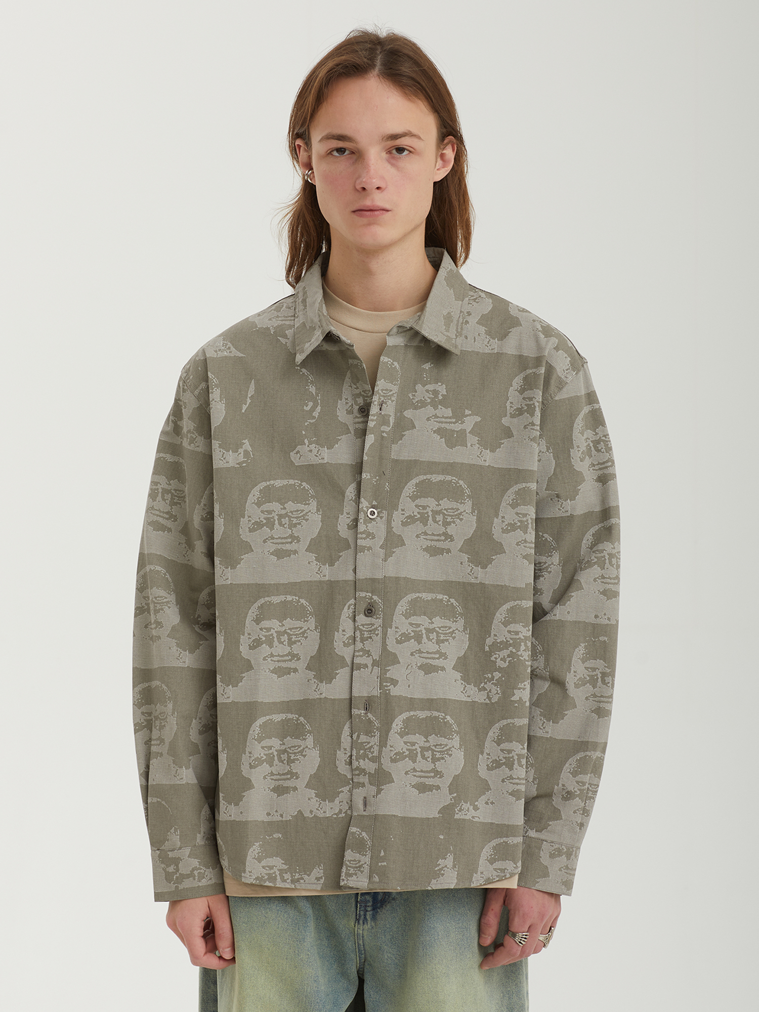 Рубашка Heresy из хлопкового материала с орнаментом. Изделие выстирано для получения винтажного эффекта.