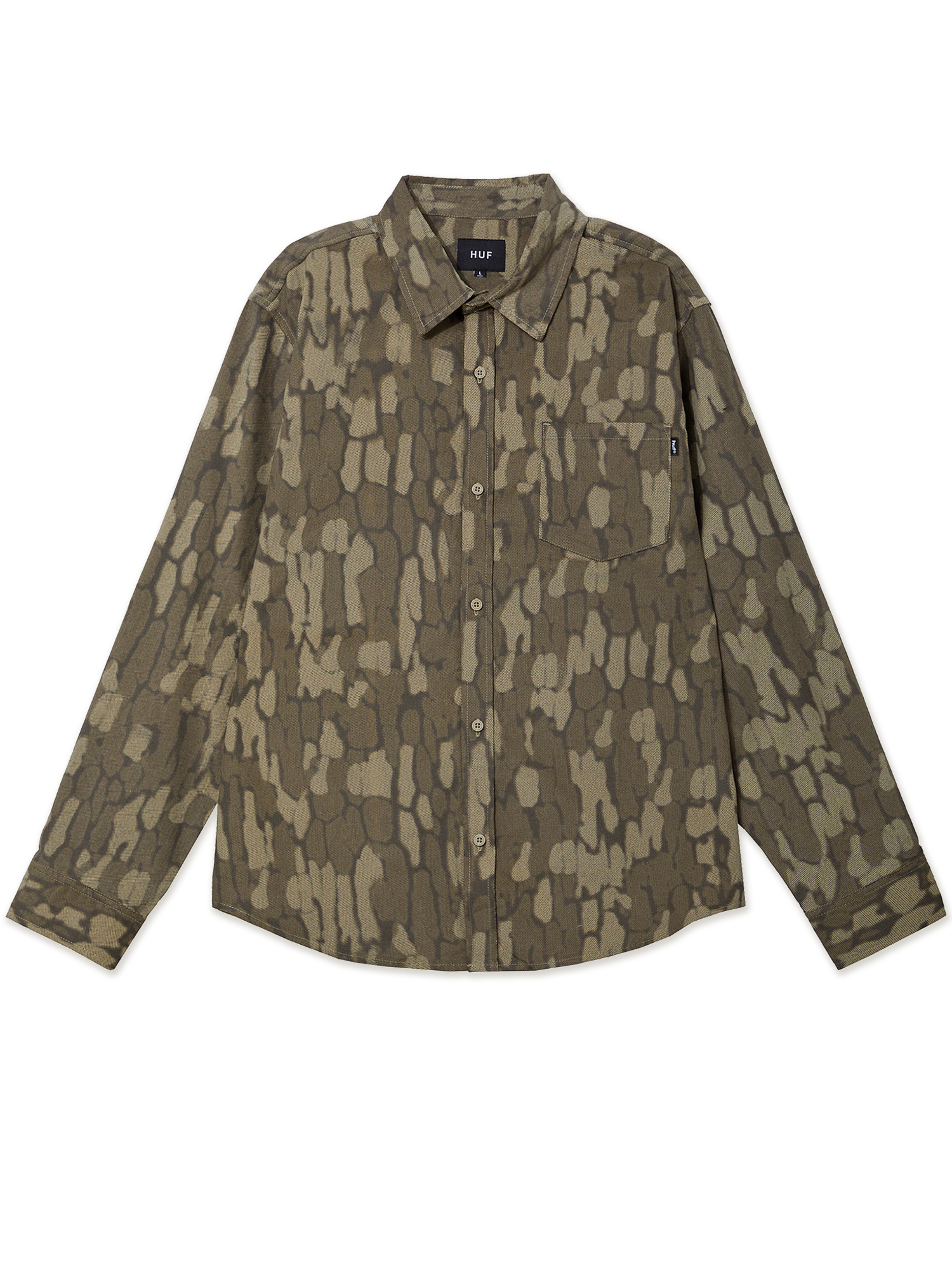 Вельветовая рубашка с камуфляжным принтом Huf из хлопкового материала.