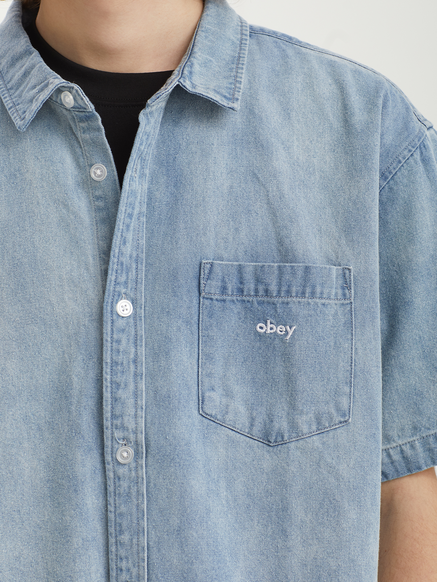 Рубашка с коротким рукавом Obey из выстиранного хлопкового денима.
