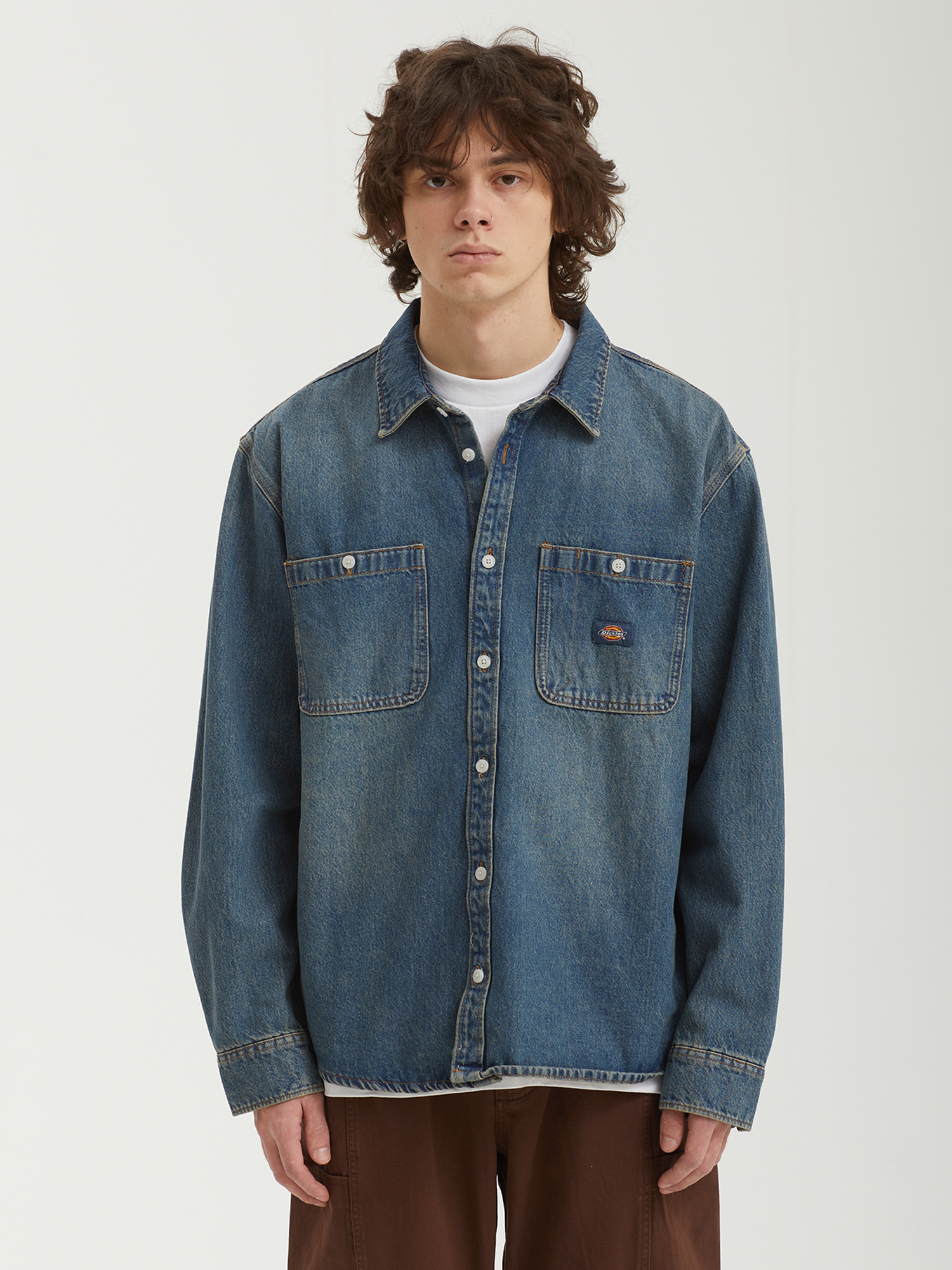 Джинсовая рубашка Dickies из прочного хлопкового денима.