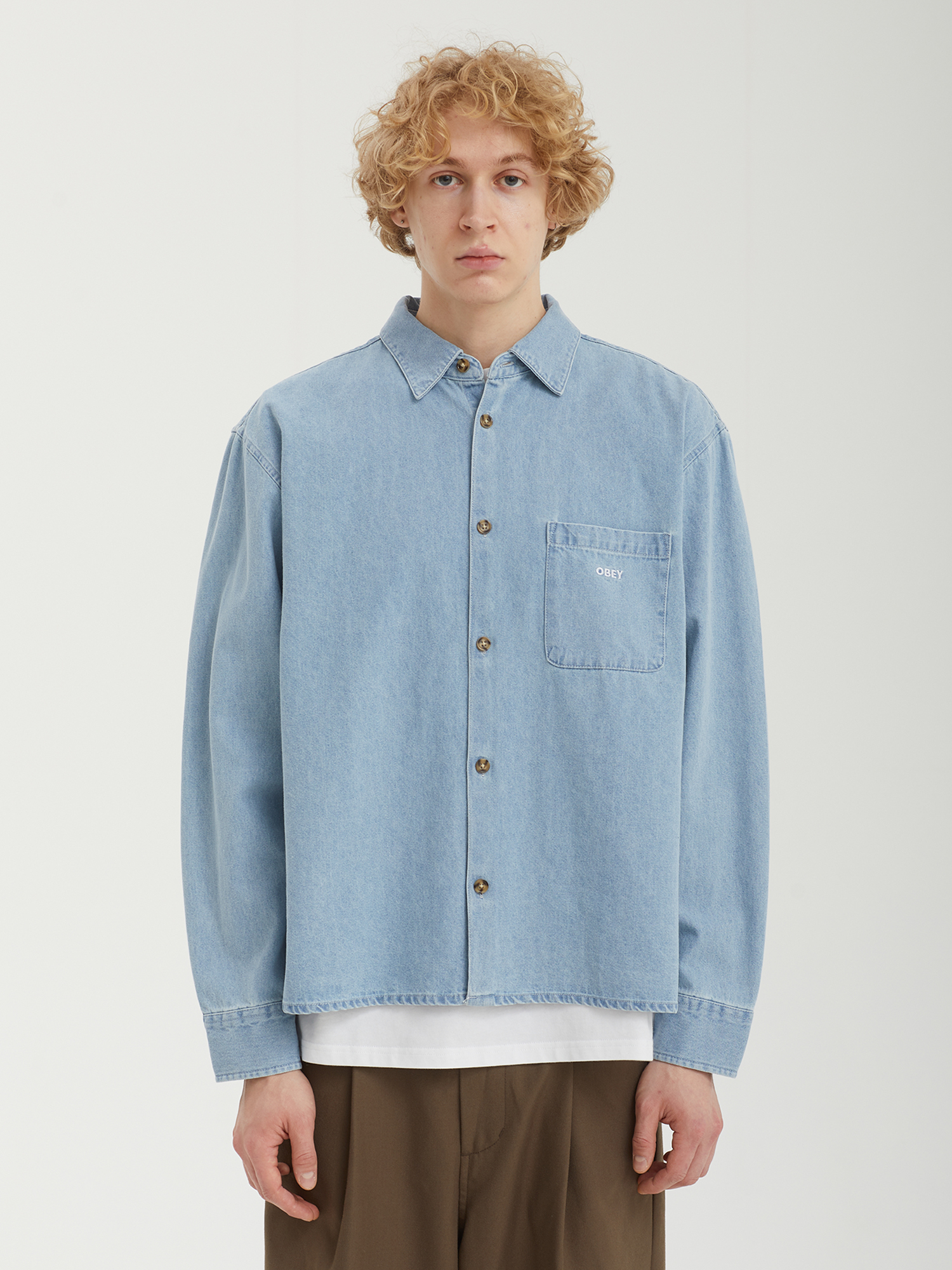 Джинсовая рубашка Obey из хлопкового материала.