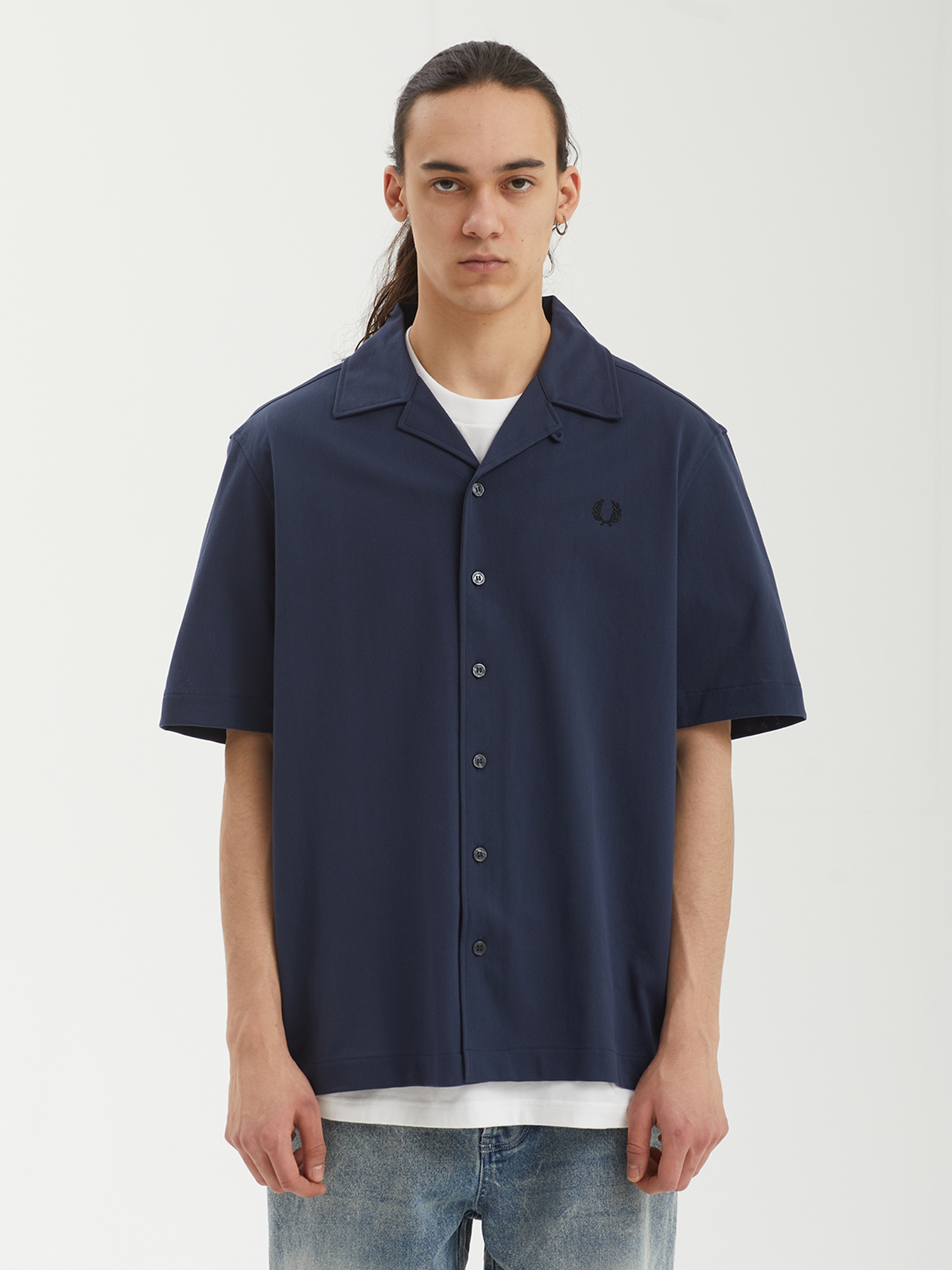 Рубашка с коротким рукавом Fred Perry из сетчатого хлопкового материала.