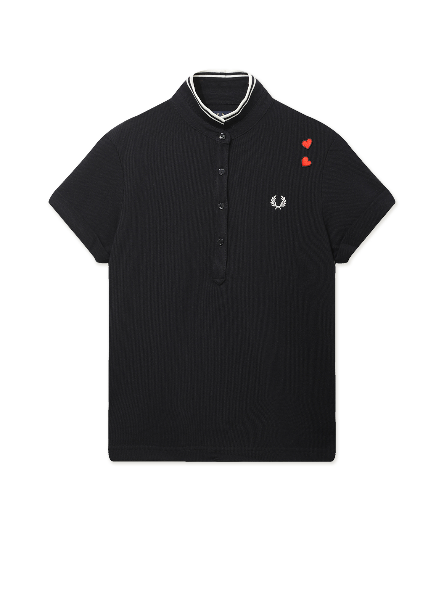 Поло с коротким рукавом Fred Perry из коллекции Amy Winehouse Foundation, вдохновленной стилем Эми Уайнхаус. Выполнено из фактурного хлопкового пике. Вышитый на груди лавровый венок дополнен нашивками-сердечками, характерными для этой линейки.