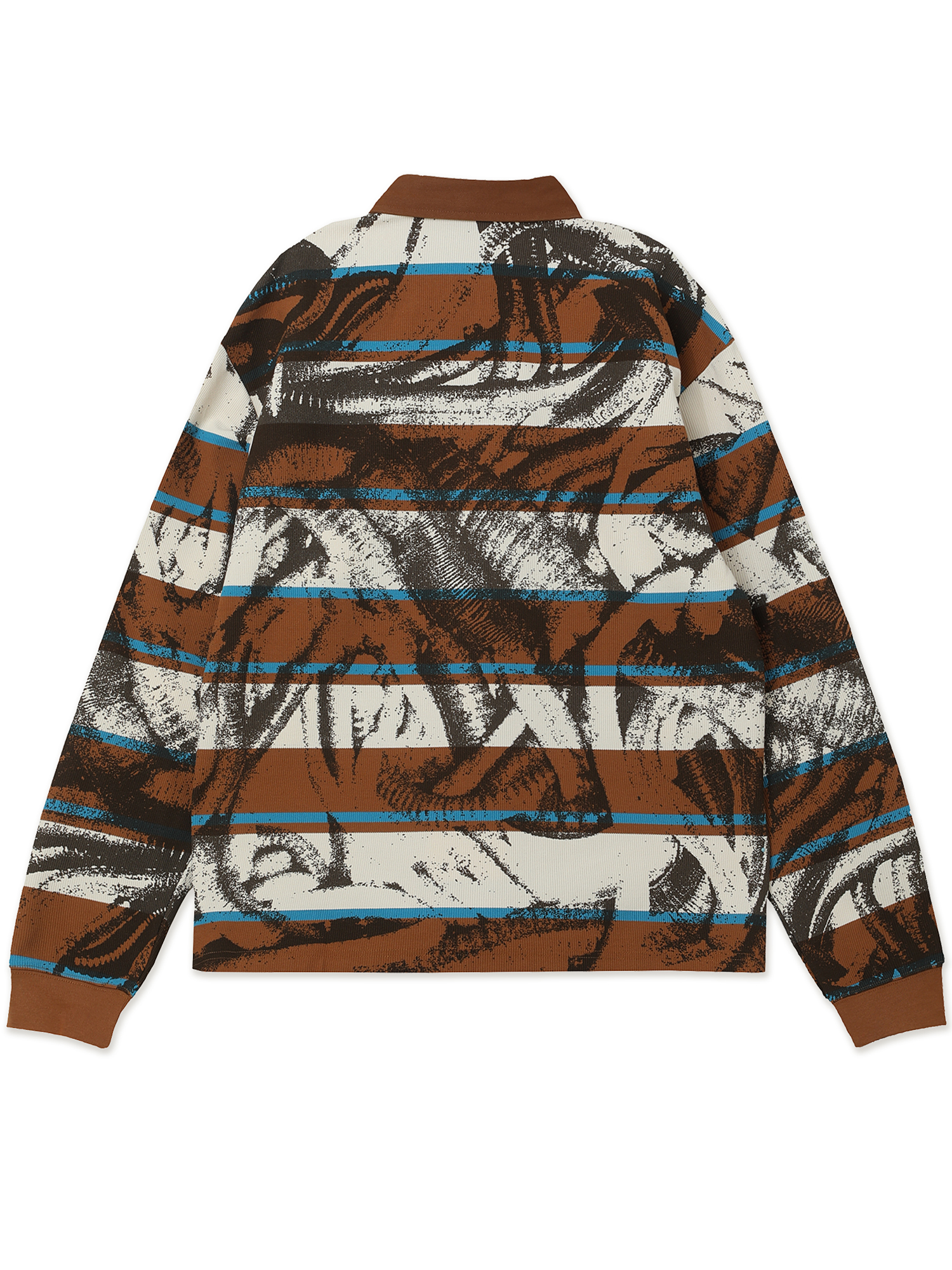 Рубашка-регби Pleasures из смесового эластичного пике с рисунком в полоску. Изделие дополнено сплошным принтом.