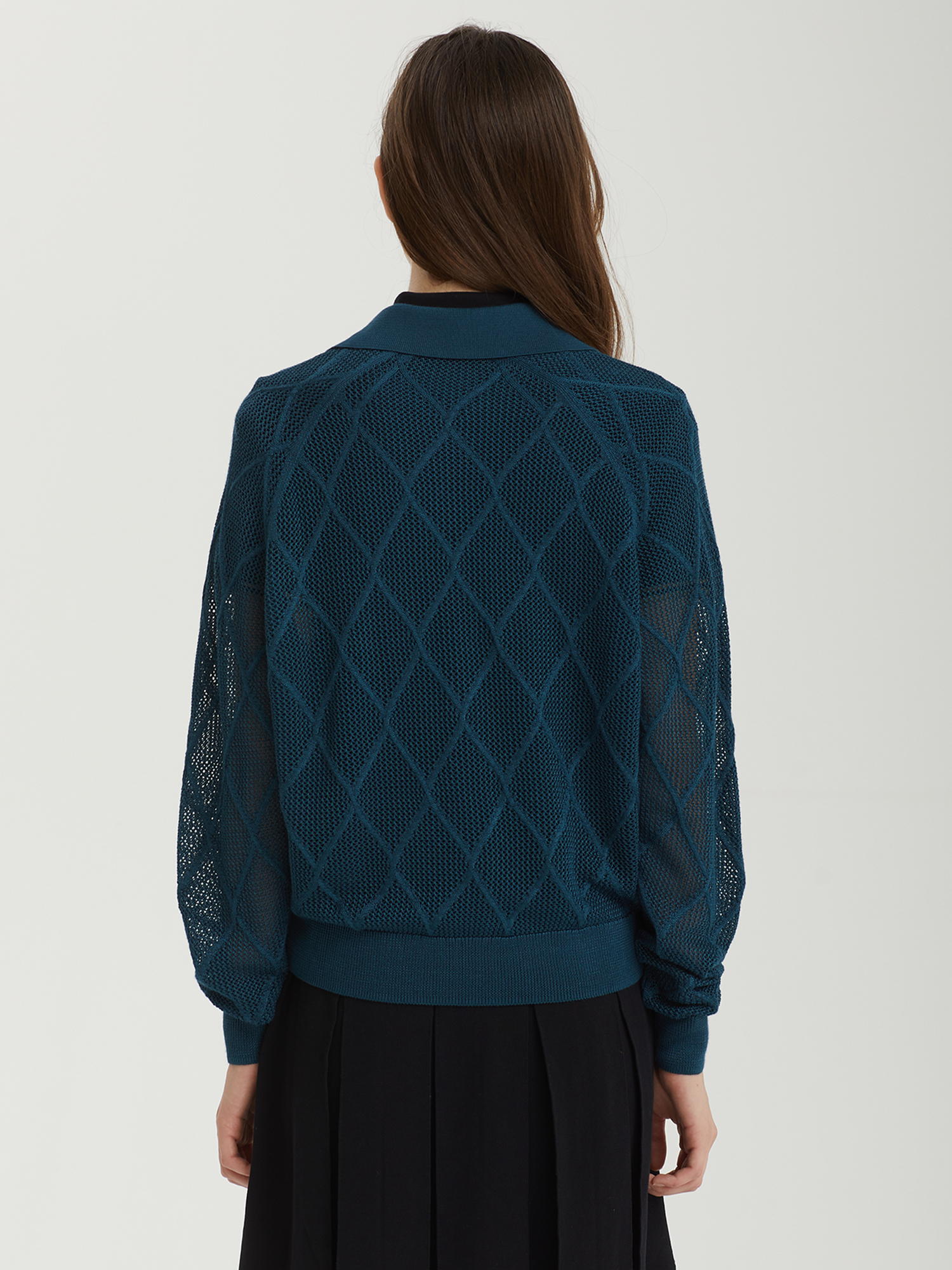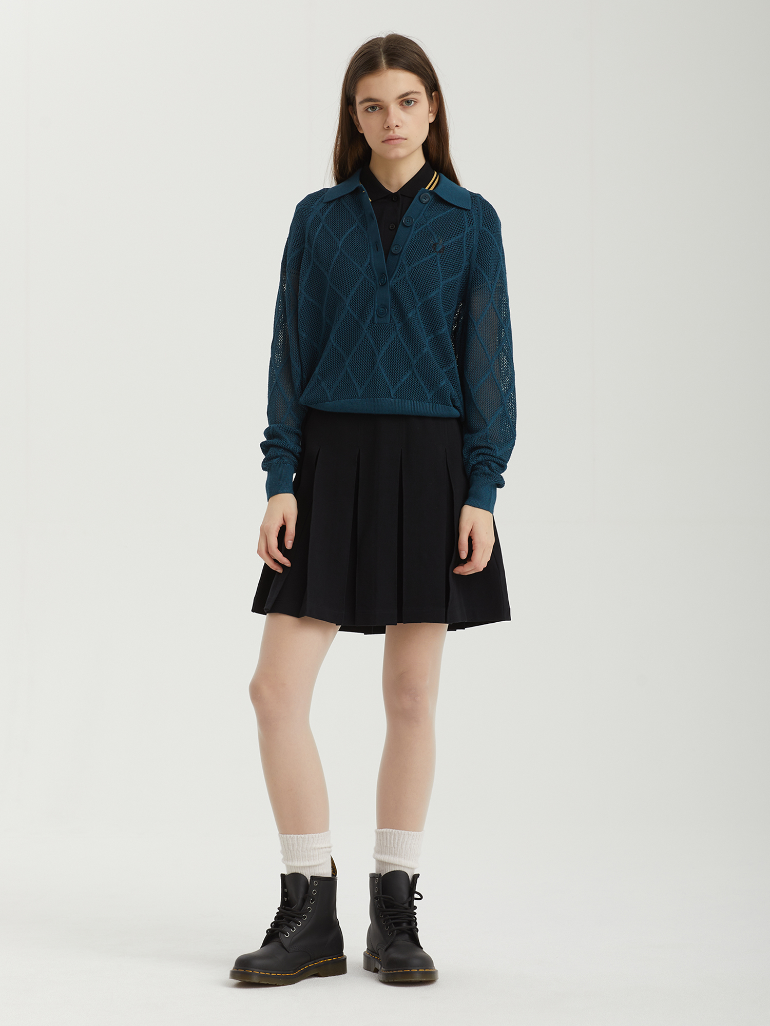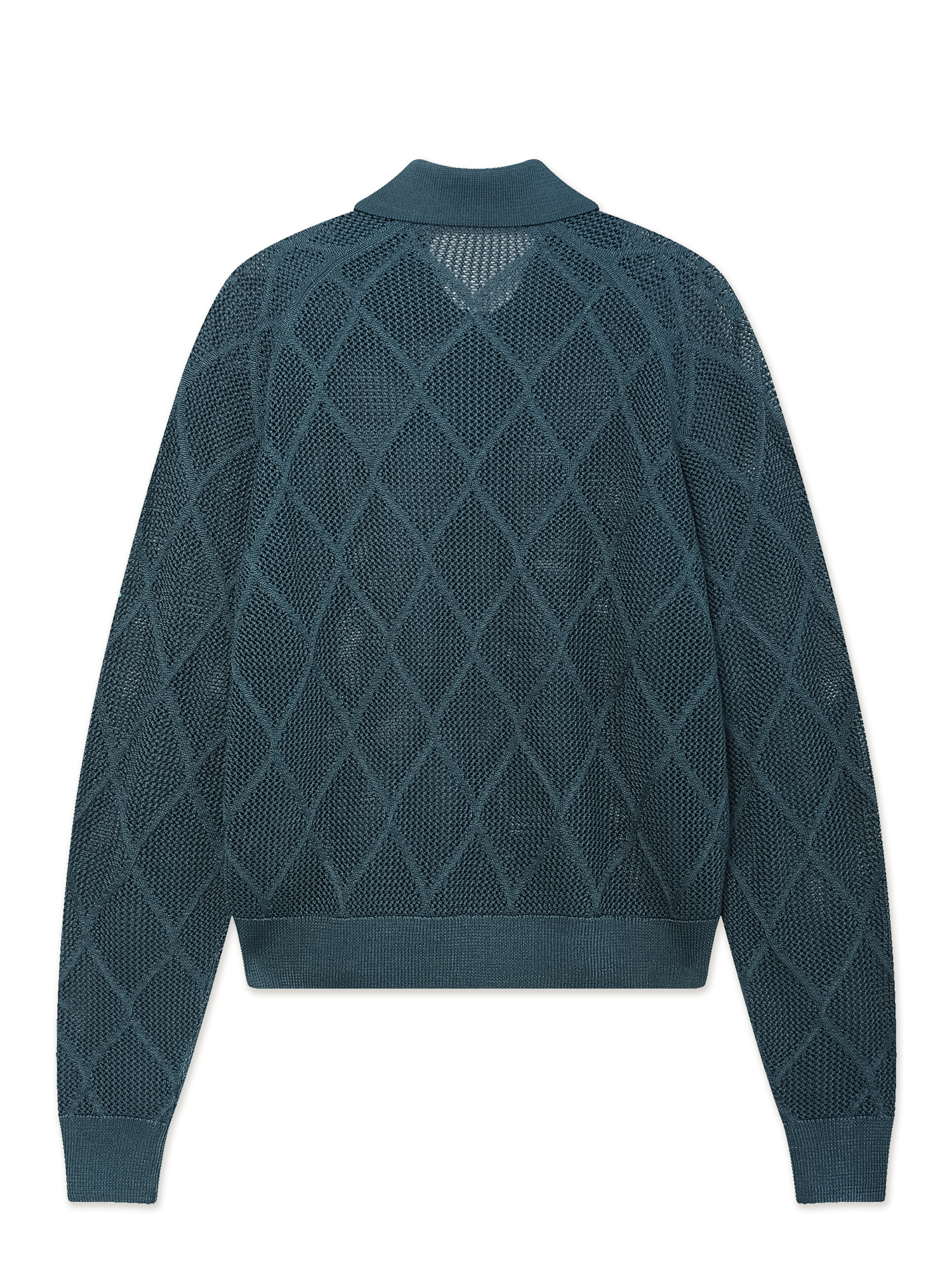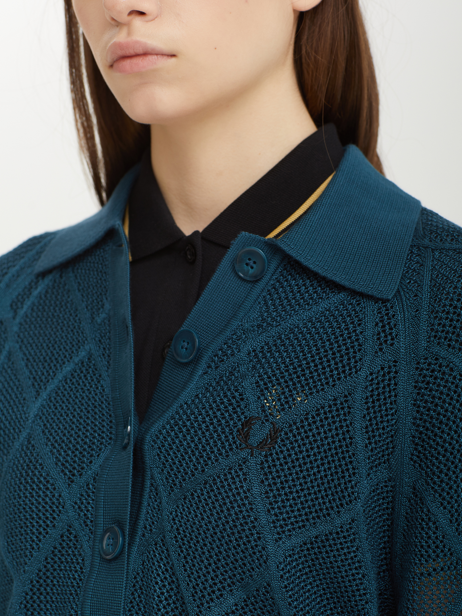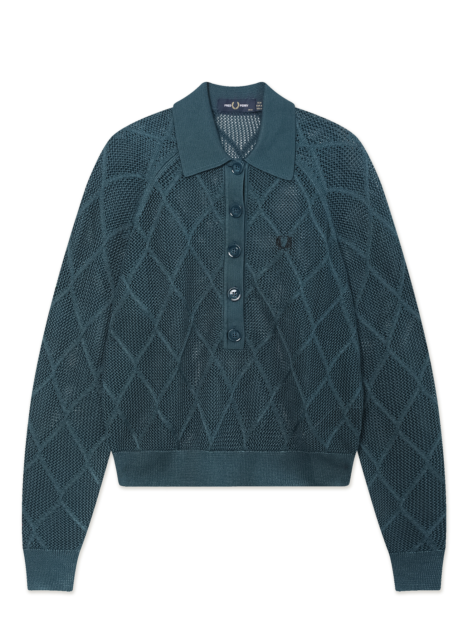 Поло с длинным рукавом Fred Perry из смесовой пряжи с рисунком аргайл, выполненном в технике кроше.