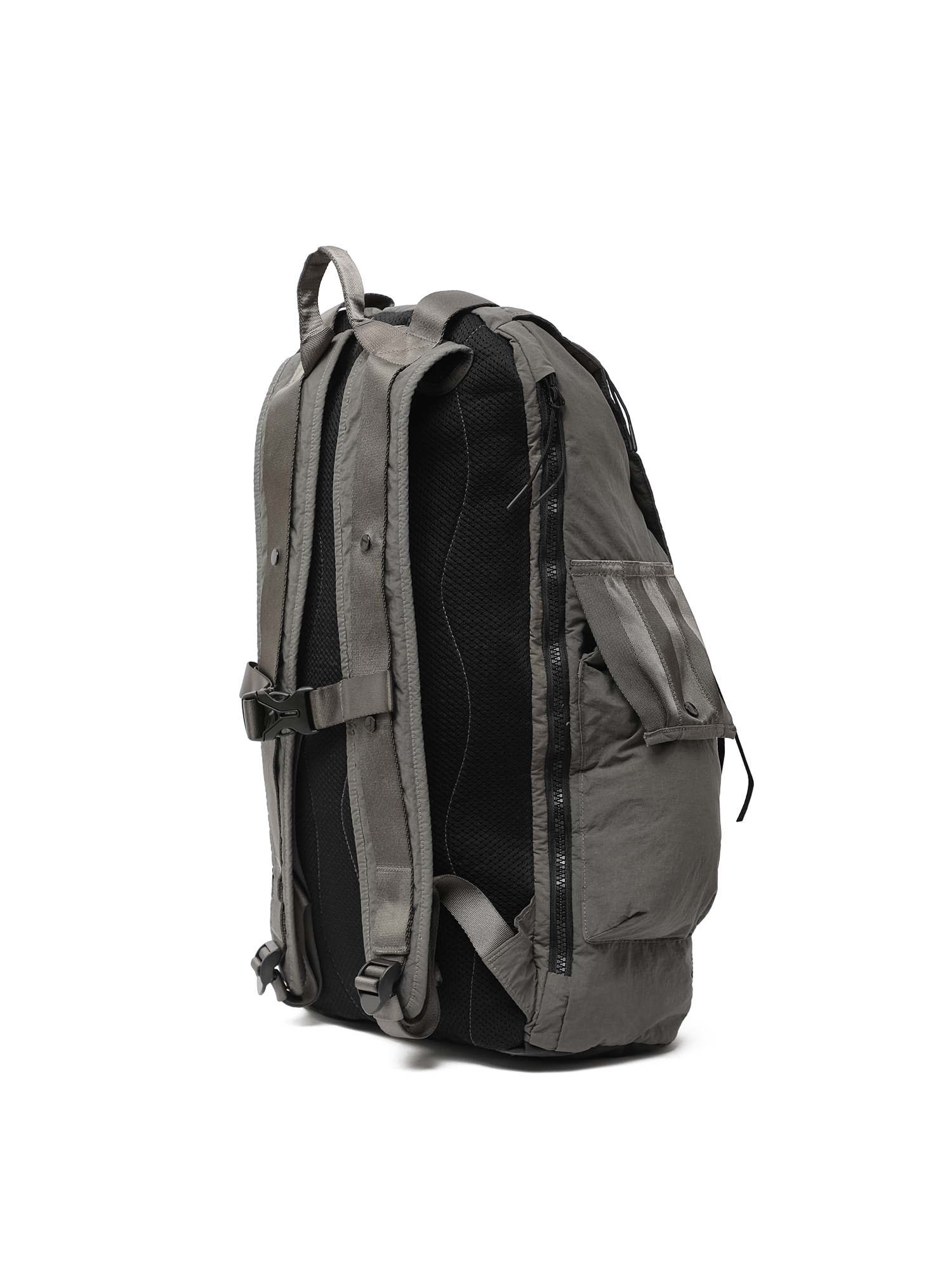Рюкзак C.P. Company — функциональный аксессуар в утилитарной эстетике бренда, сочетающий легкость, прочность и продуманную организацию пространства. Модель выполнена из Plain Paper Touch — легкого нейлонового канваса, обеспечивающего комфорт и износостойкость в повседневном использовании. Эргономичный дизайн дополнен мягкими плечевыми лямками, регулируемыми ремнями с пряжками и удобной ручкой для переноски. Основное отделение оснащено карманом с кнопкой и вышитым логотипом, боковым доступом на молнии и скрытым верхним карманом на молнии для быстрого доступа к необходимым вещам. Дополнительную функциональность обеспечивают боковые карманы с клапанами, кнопками и кулисками, фронтальный нижний карман на молнии, а также внутреннее отделение с застежкой на пряжку и карманом на молнии. Технология Garment dyeing придает рюкзаку насыщенный цвет с мягкими оттеночными переходами, которые становятся более выразительными со временем.
