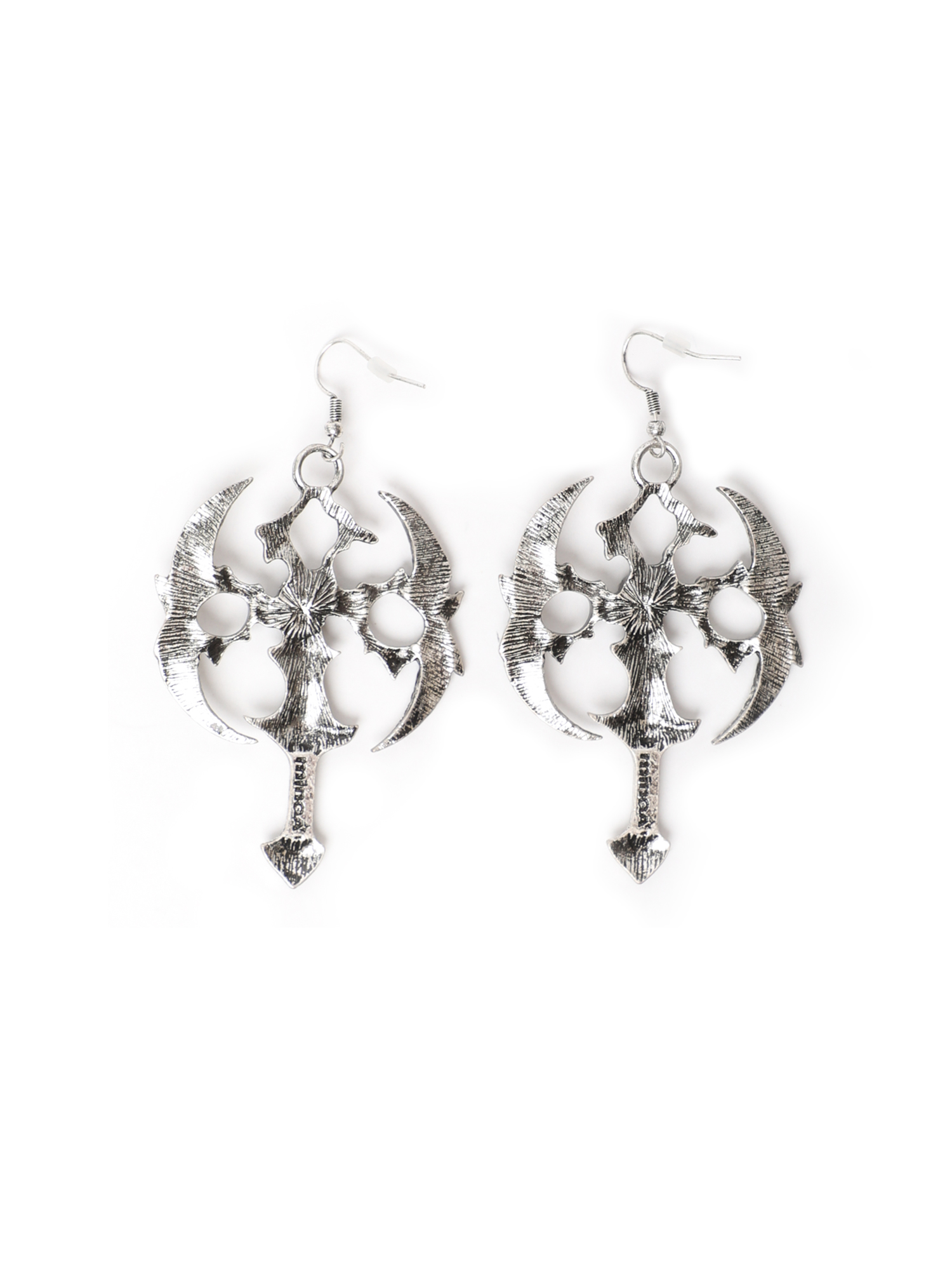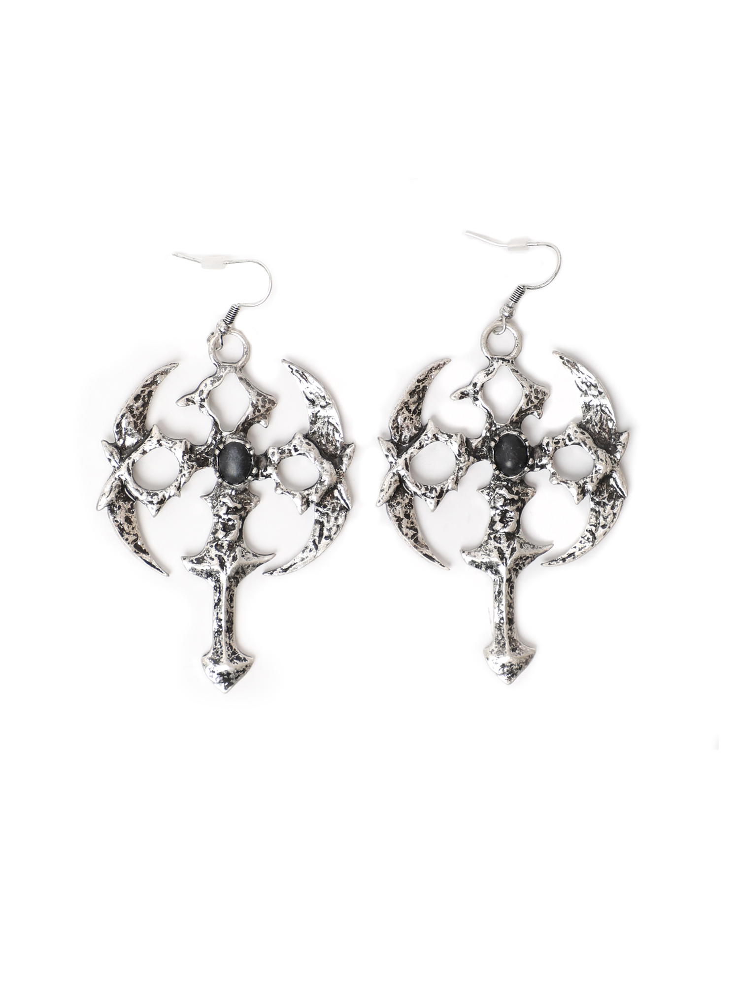 Серьги Oxdized Silver Sigil Cross Drop Earrings