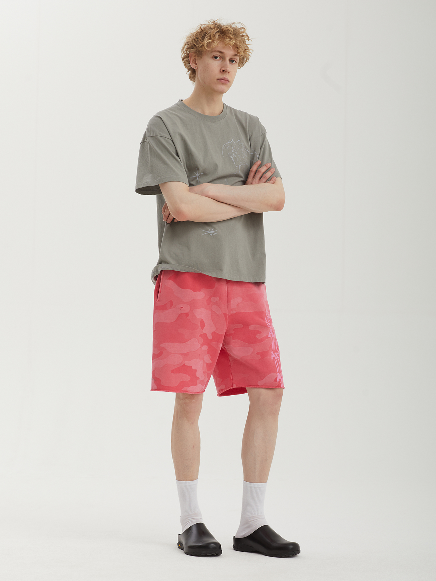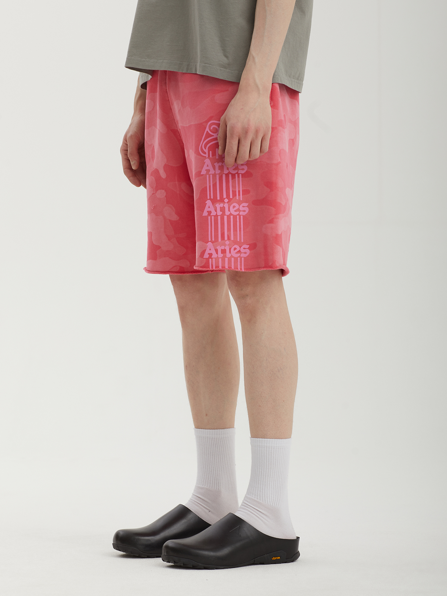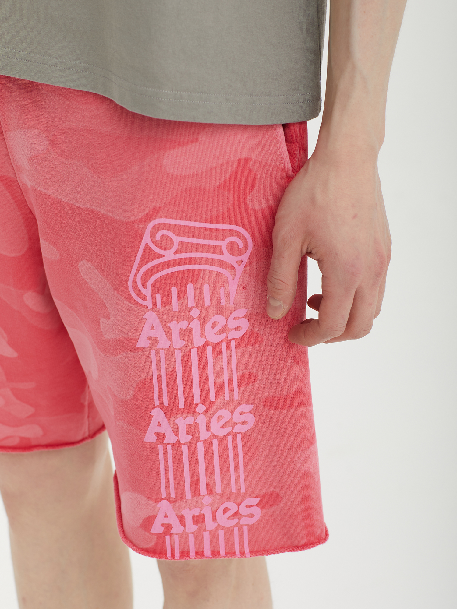 Шорты Aries из плотного хлопкового материала с петельчатой изнанкой. Изделие дополнено камуфляжным принтом и выстирано для получения винтажного эффекта.