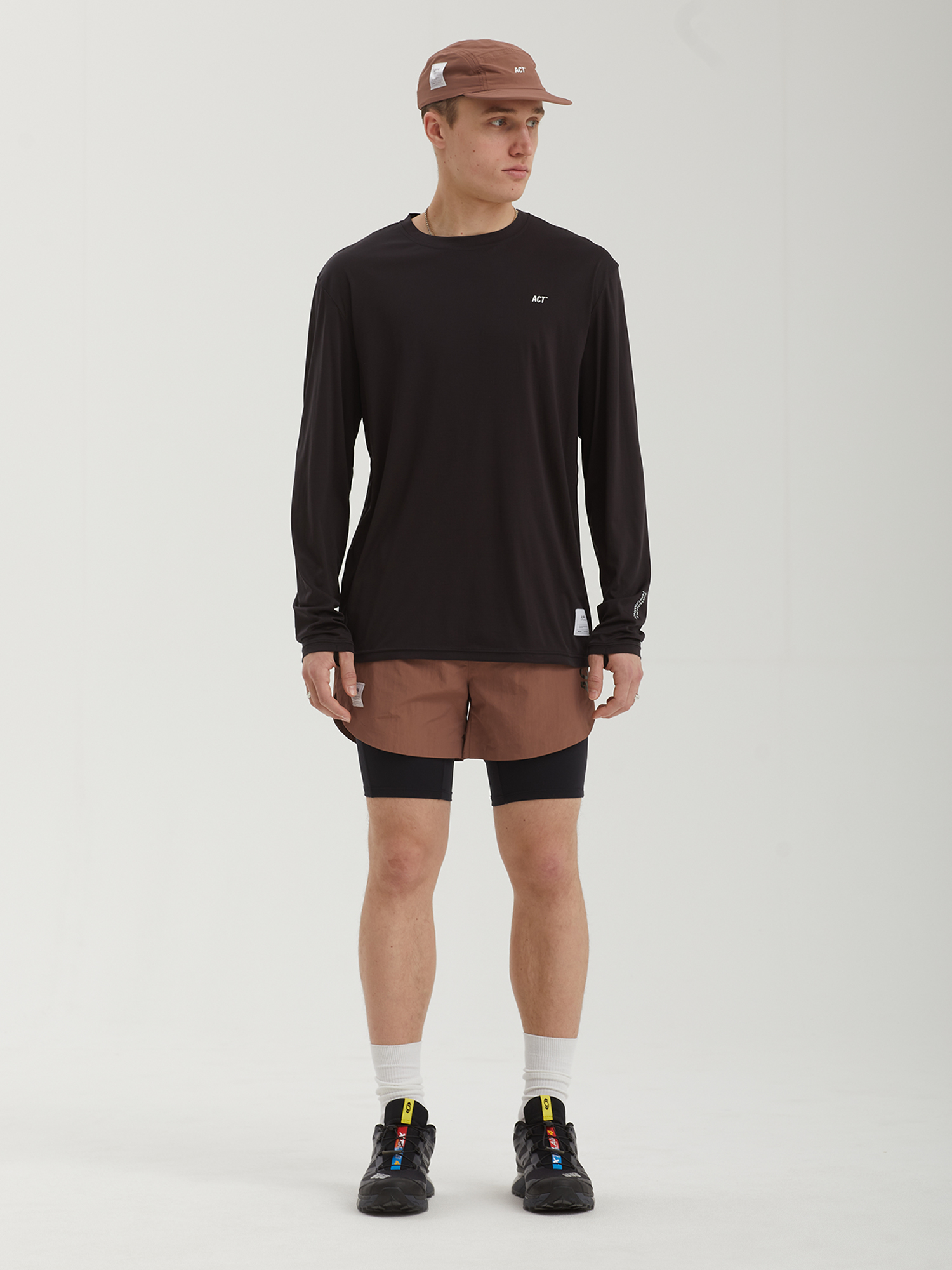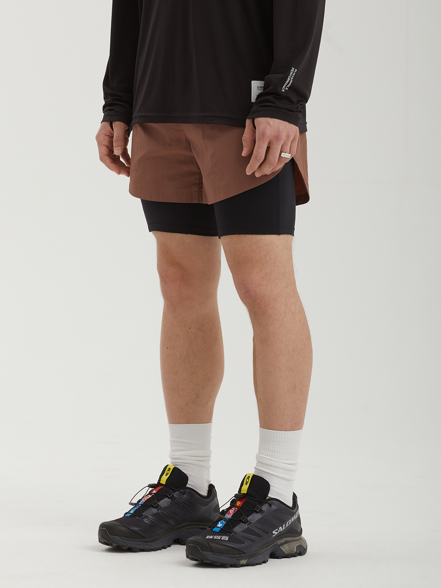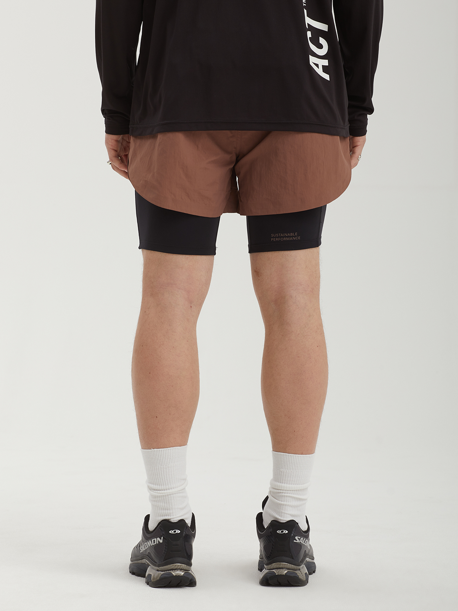 Беговые шорты ACT Running с конструкцией 2-в-1 из материала на биосинтетической основе. Интегрированный внутренний слой обеспечивает дополнительную поддержку и снижает риск натирания, а функциональные карманы позволяют разместить необходимые мелочи во время бега.