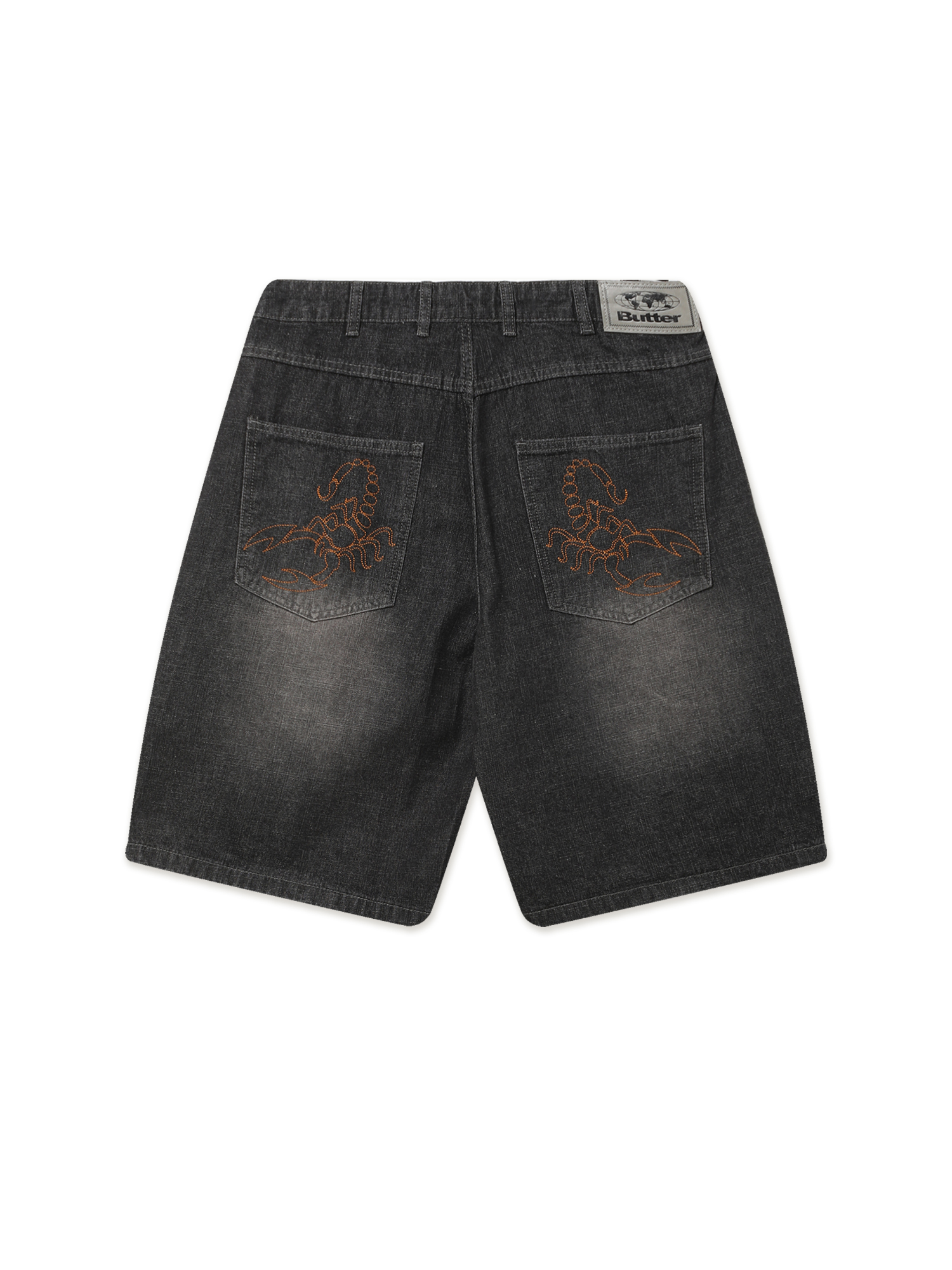 Джинсовые шорты Butter Goods из хлопкового денима с вышитыми скорпионами.
