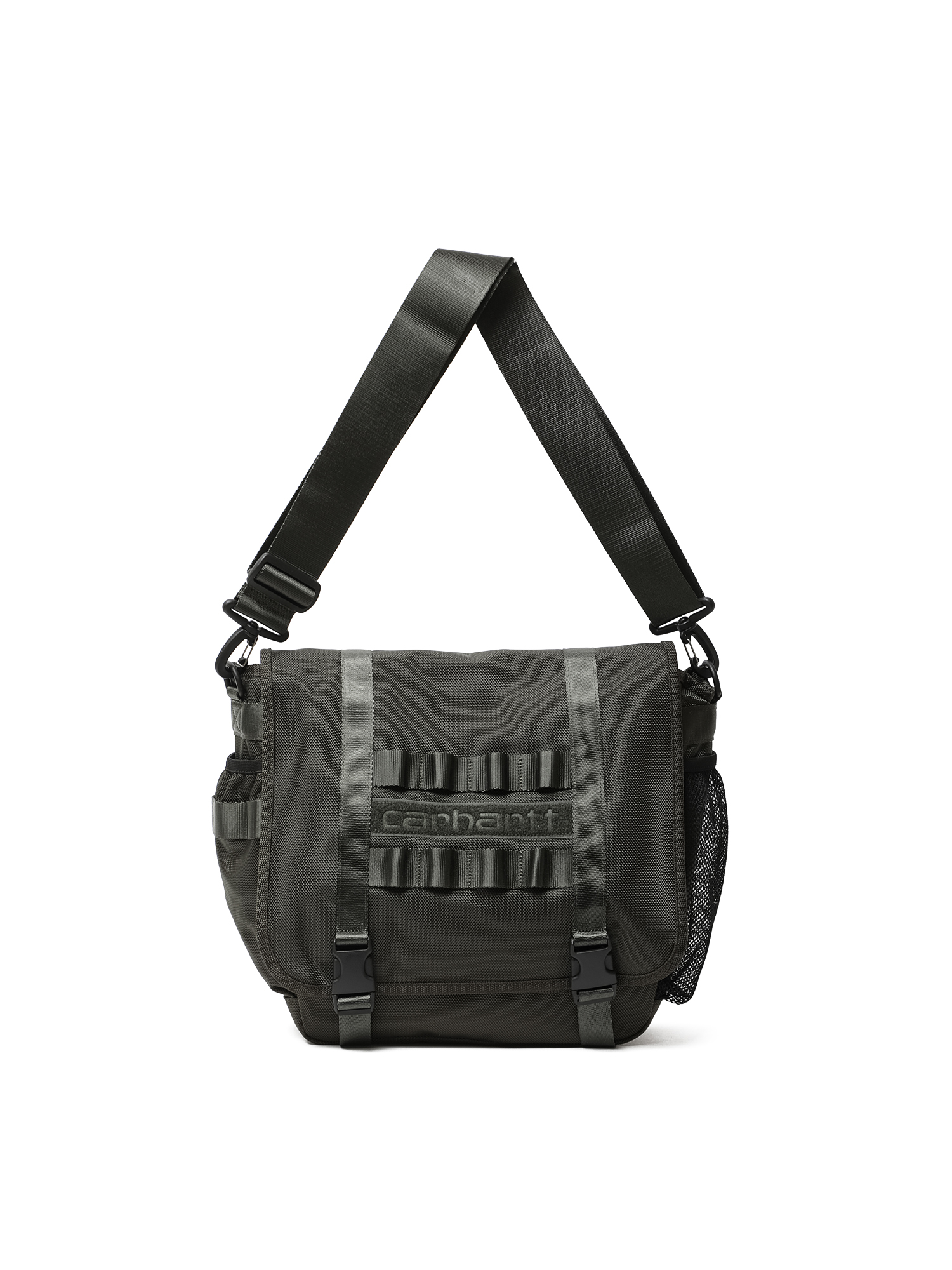 Сумка через плечо Carhartt WIP из экстра прочного фактурного нейлона. Изделие дополнено широким плечевым ремнем, утилитарными карманами и ремнями для лучшей фиксации.