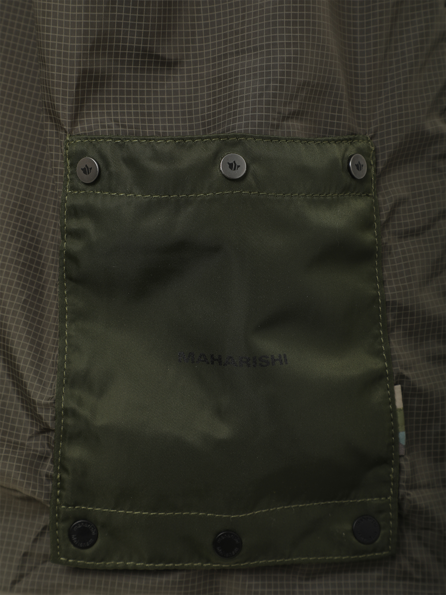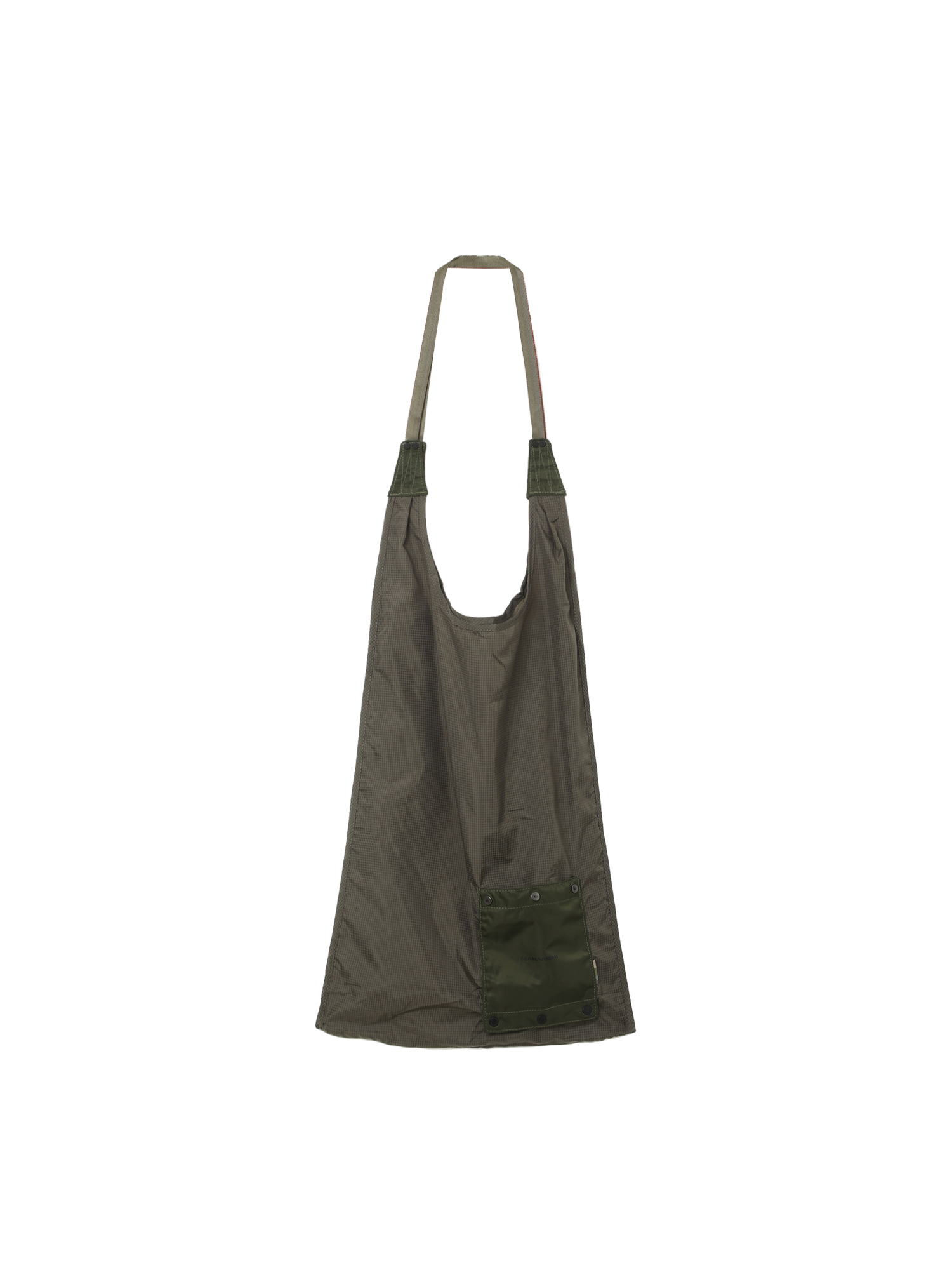 Складная сумка-шопер Maharishi из прочного микро-рипстопа. Изделие полностью убирается во внешний карман на кнопках.