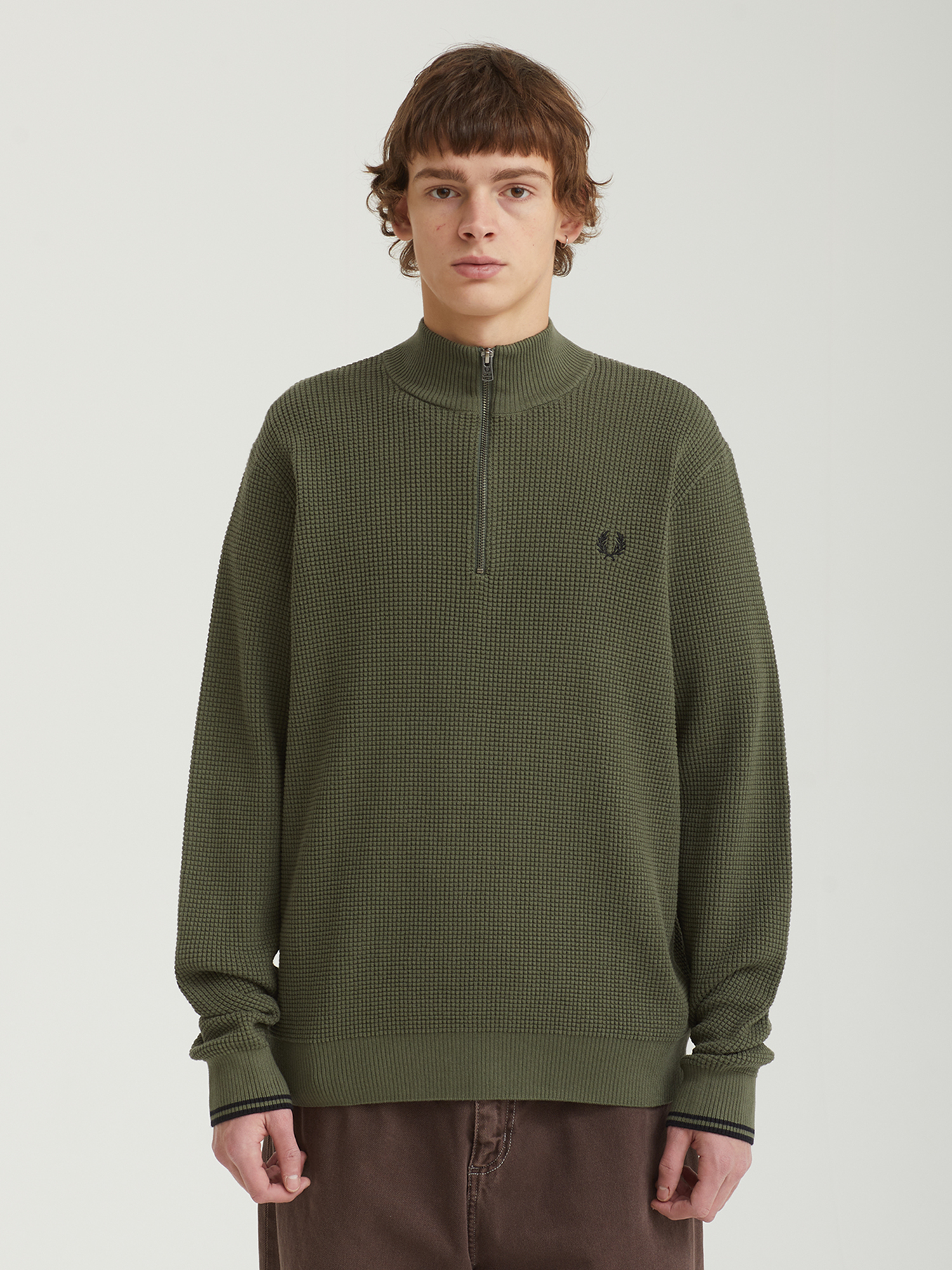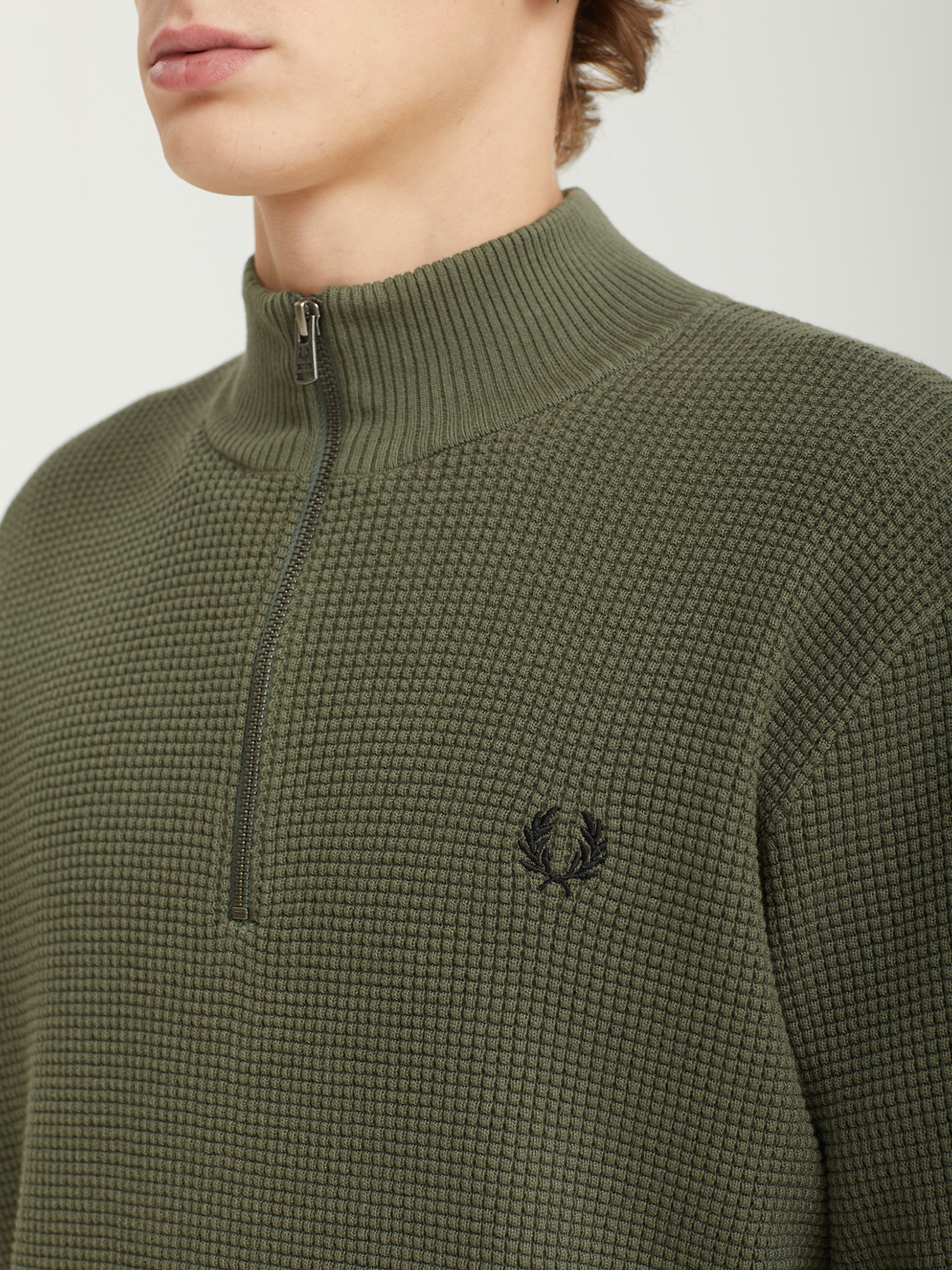 Джемпер с воротником на молнии Fred Perry из вычесанной хлопковой пряжи.