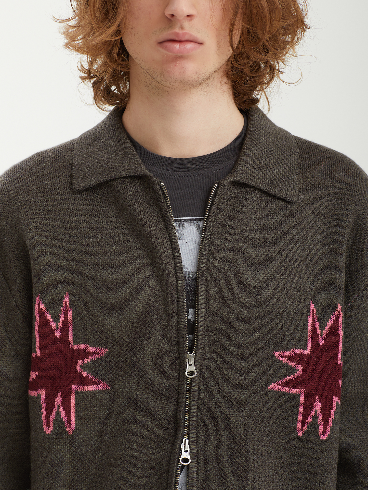 Свитер на молнии Metalwood из смесовой пряжи с высоким процентом натуральной шерсти в составе. Изделие дополнено ярким рисунком.