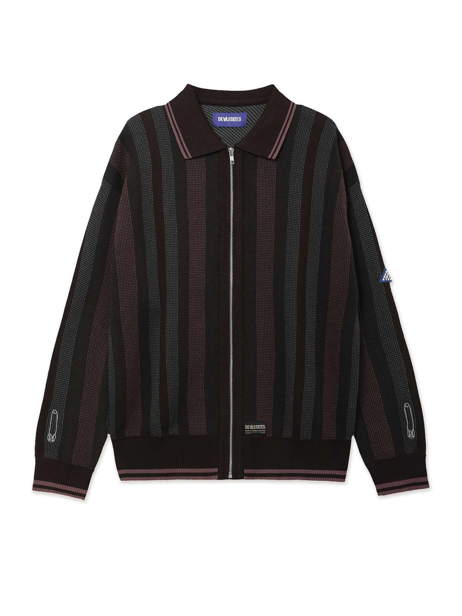 Свитер-поло на молнии Deva States из хлопковой пряжи с узором в полоску.