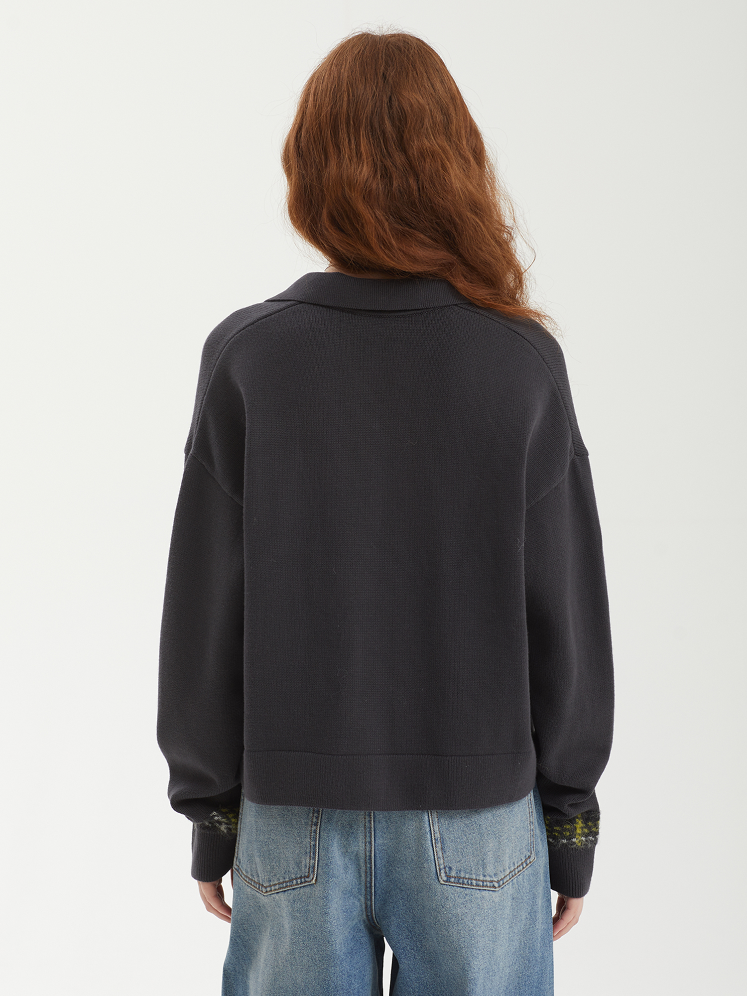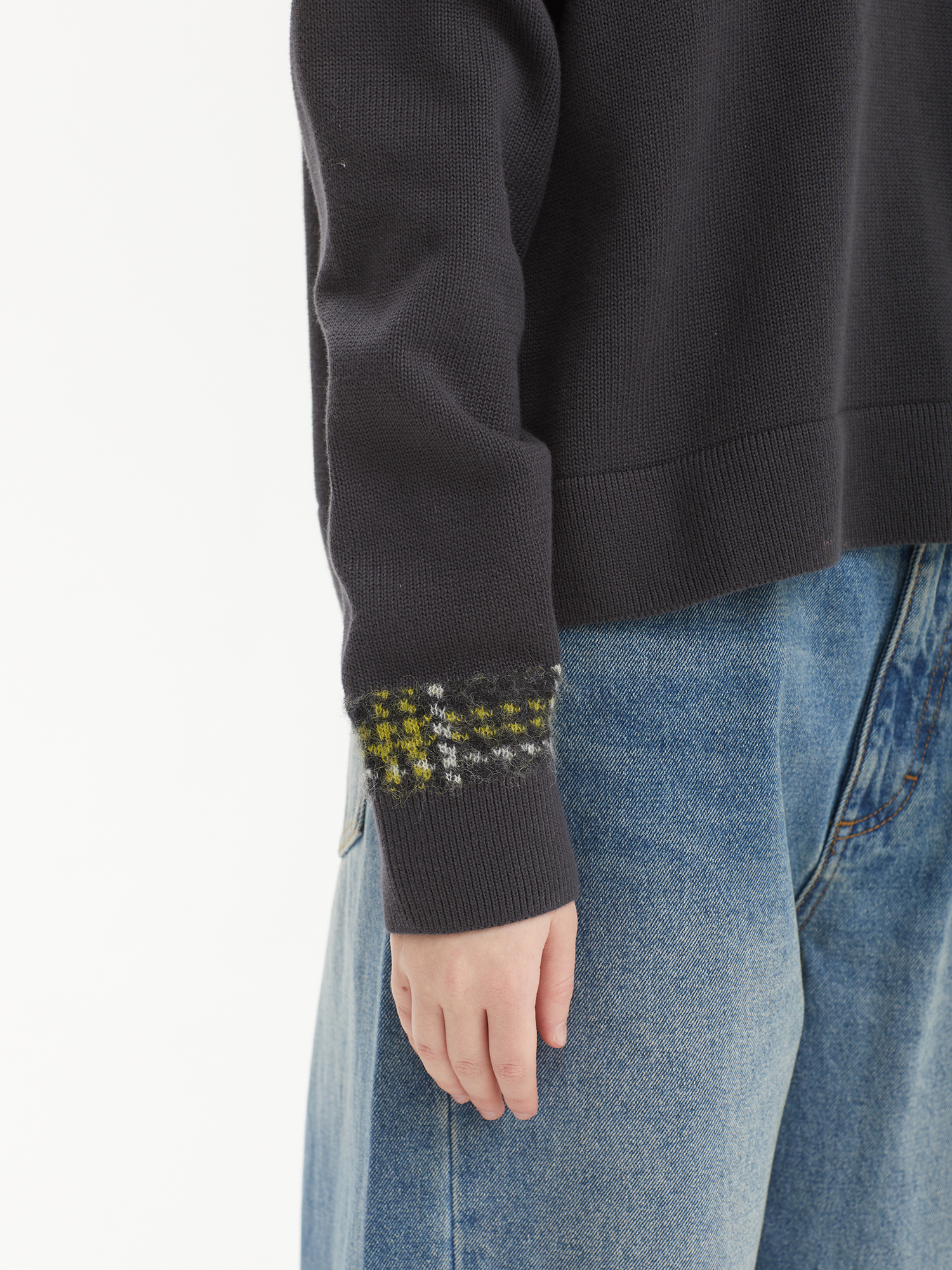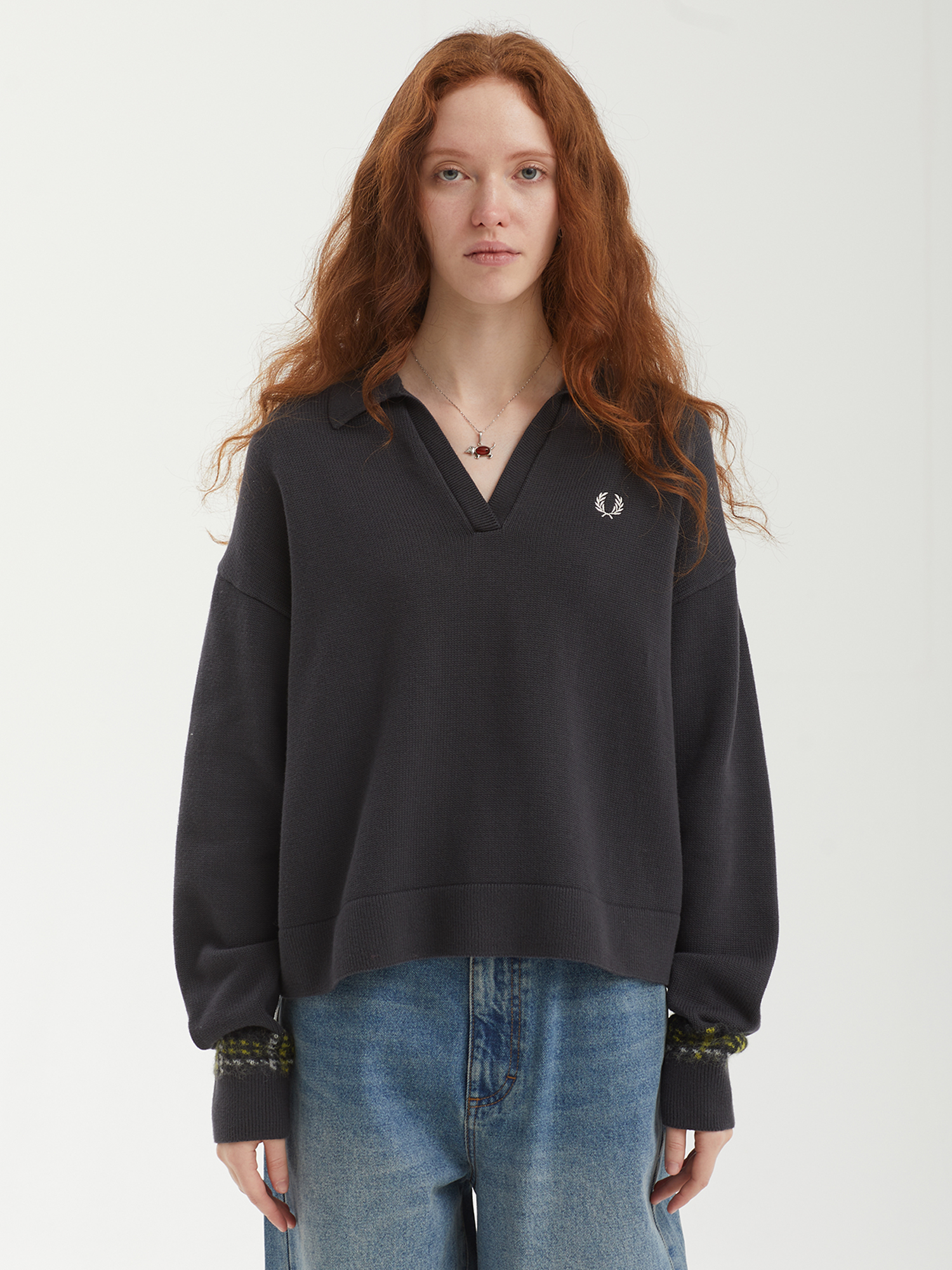 Свитер Fred Perry выполнен из хлопкового трикотажа и дополнен контрастными тартановыми вставками на манжетах. Свободный крой, открытый ворот и спущенная линия плеч придают силуэту непринужденность и легкий оверсайз-эффект. Вышитый лавровый венок служит узнаваемым акцентом и отражает наследие бренда.