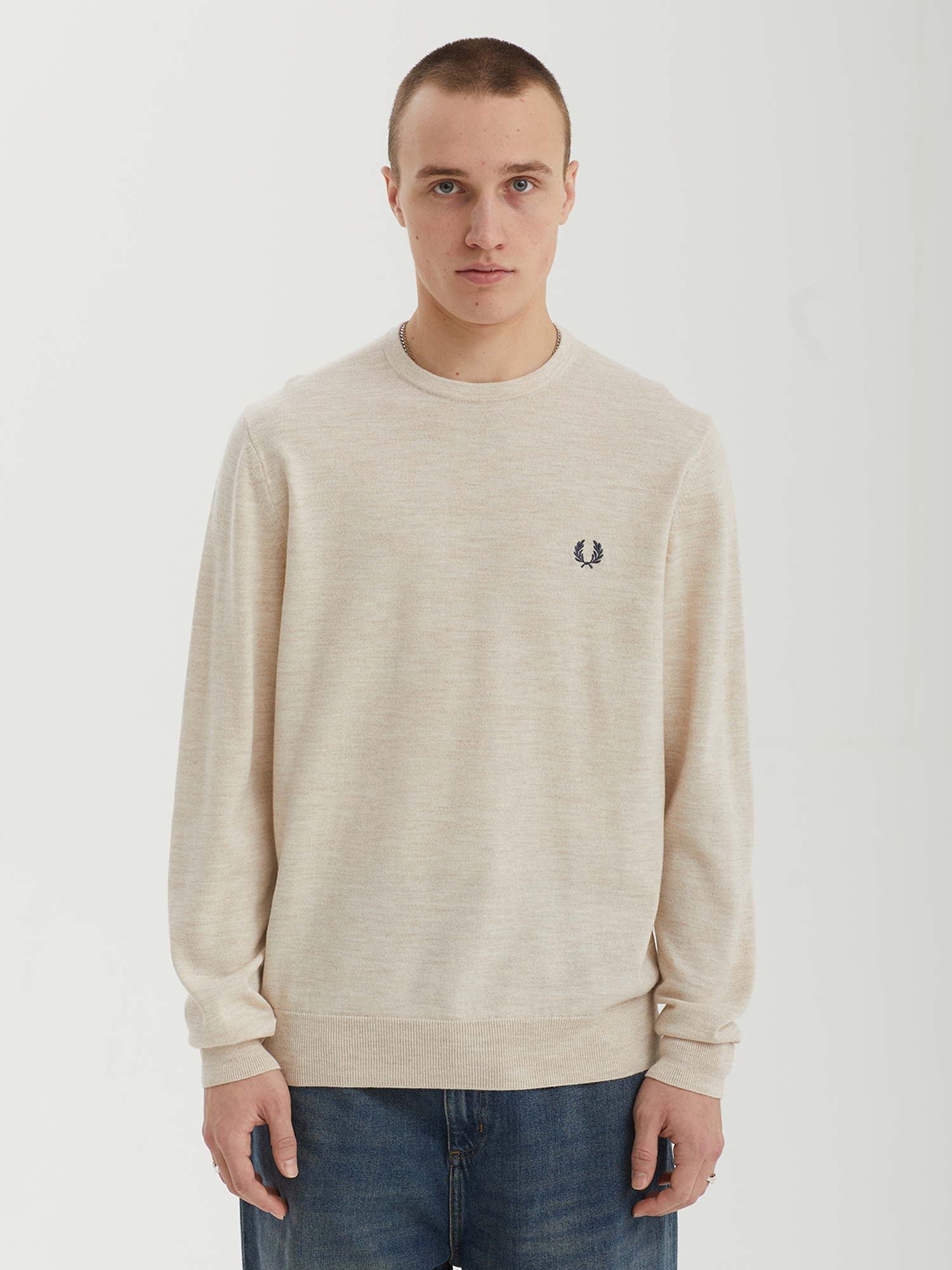 Джемпер Fred Perry из смесовой пряжи с добавлением мериносовой шерсти. Лаконичная вышивка с лавровым венком на груди.