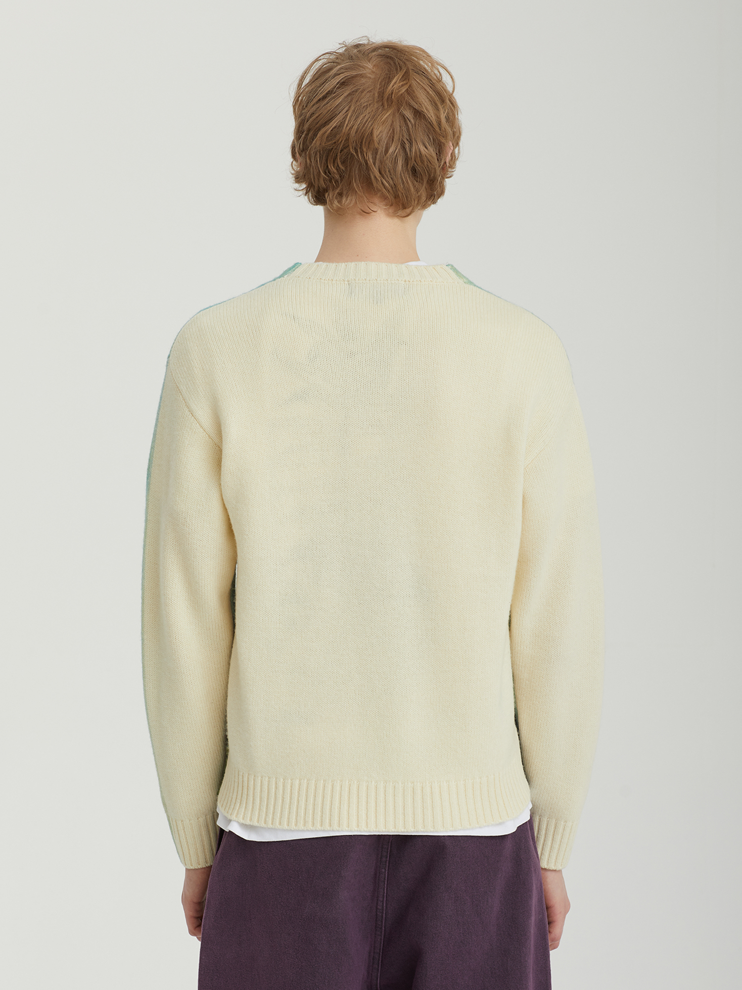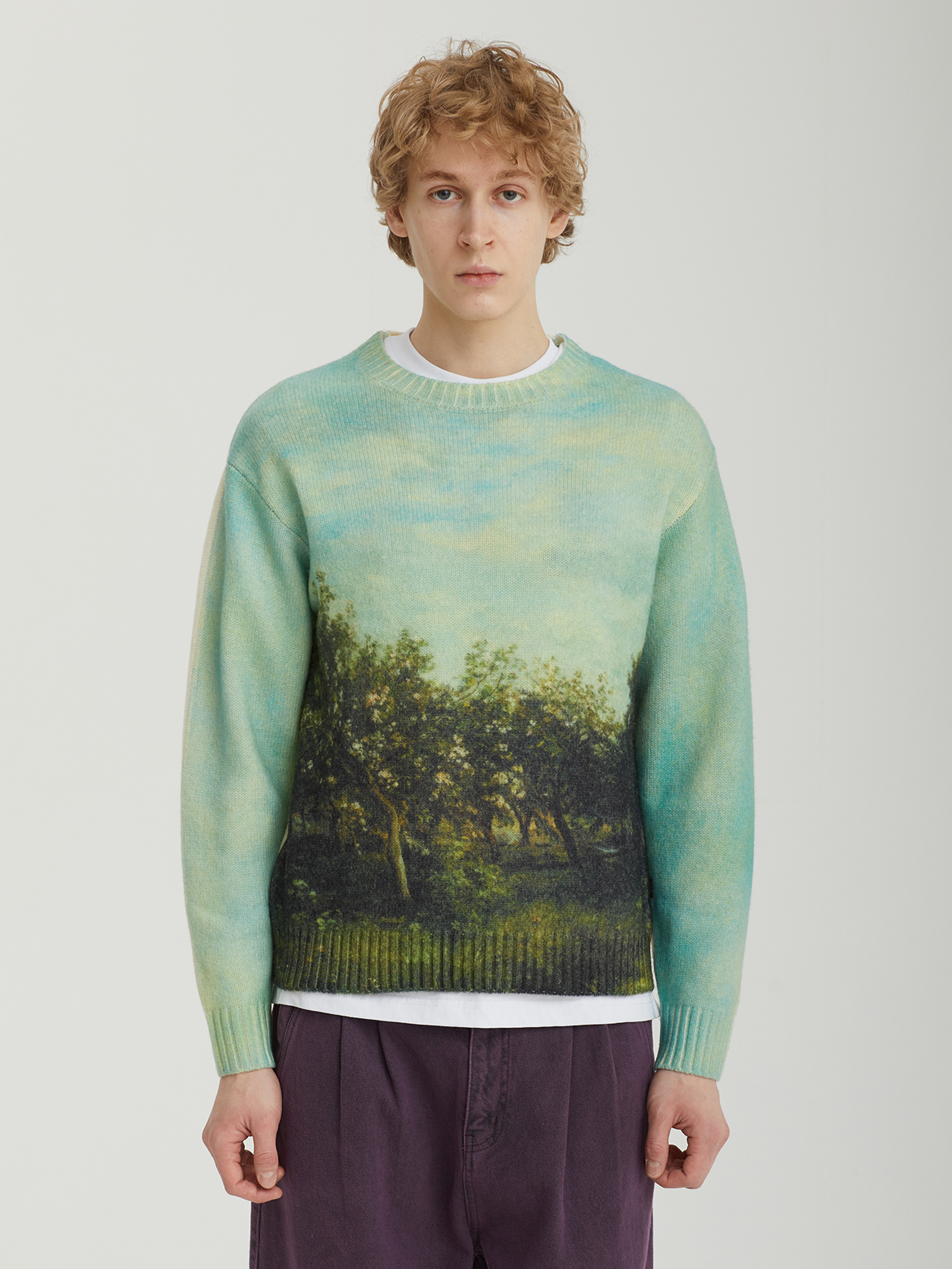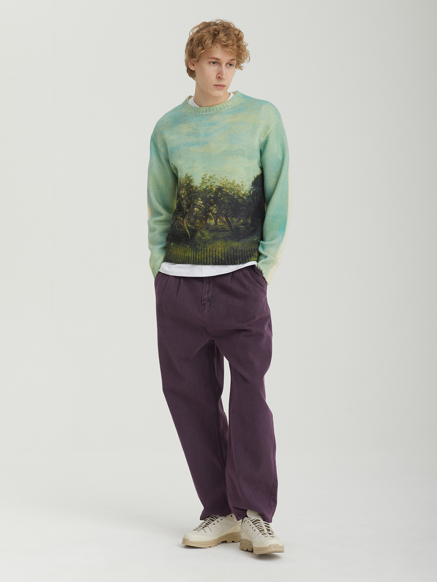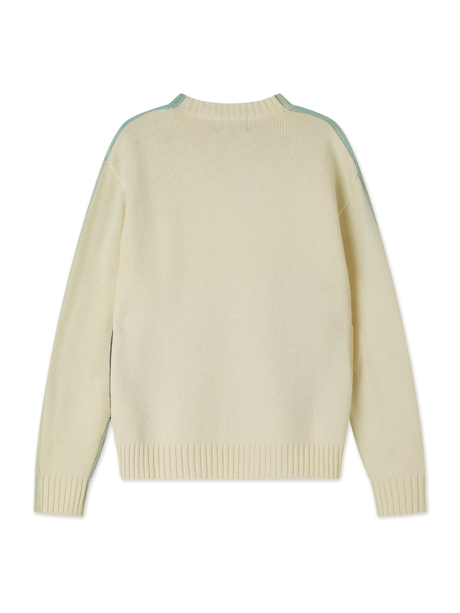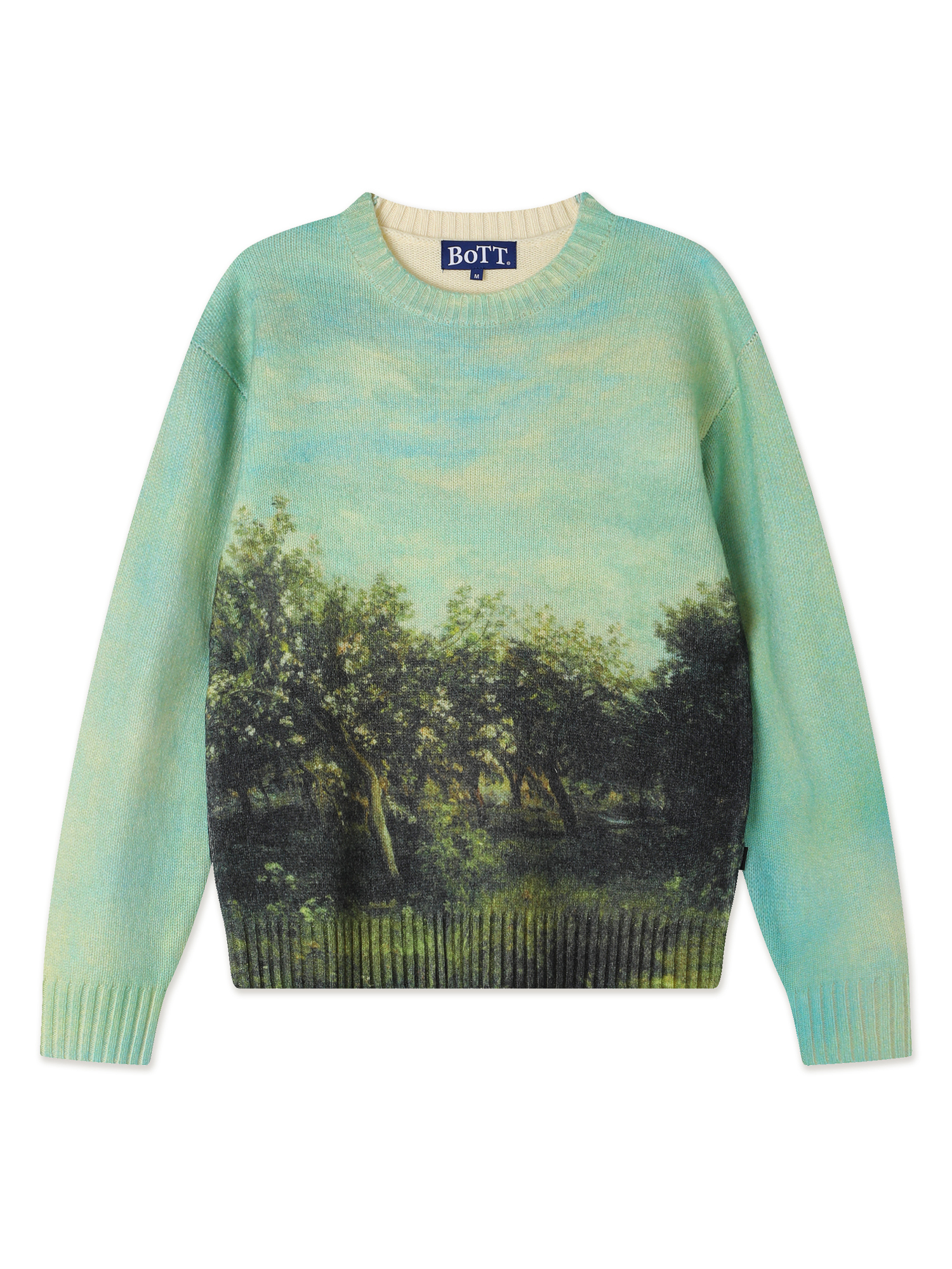 Свитер BoTT из мягкой хлопковой пряжи с отделкой горловины, манжет и низа в крупную трикотажную резинку. Изделие дополнено принтом на фронтальной части.