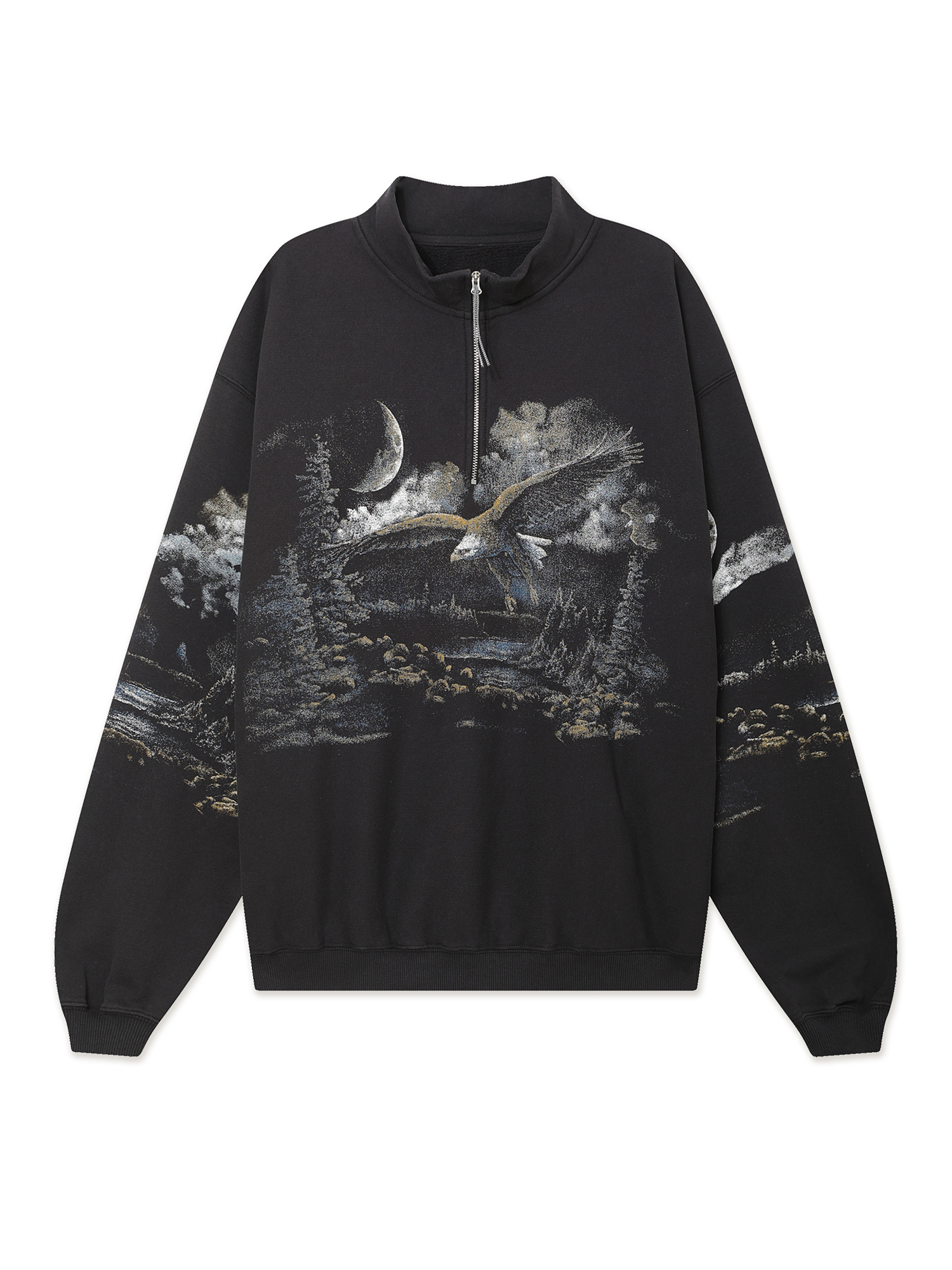Толстовка с воротником-стойкой на молнии ROA из плотного хлопкового трикотажа с ворсистой изнанкой. Изделие дополнено графическим принтом.
