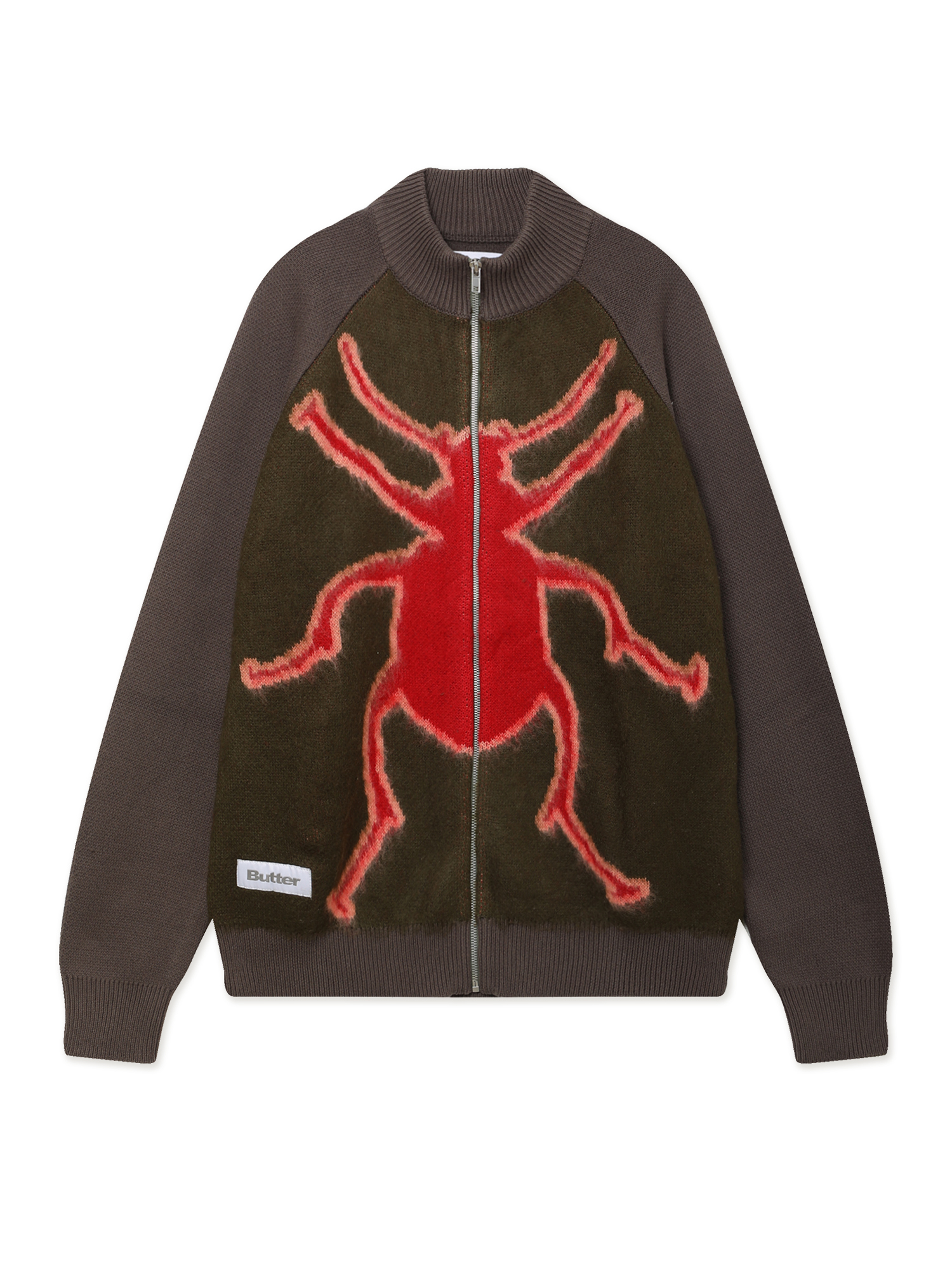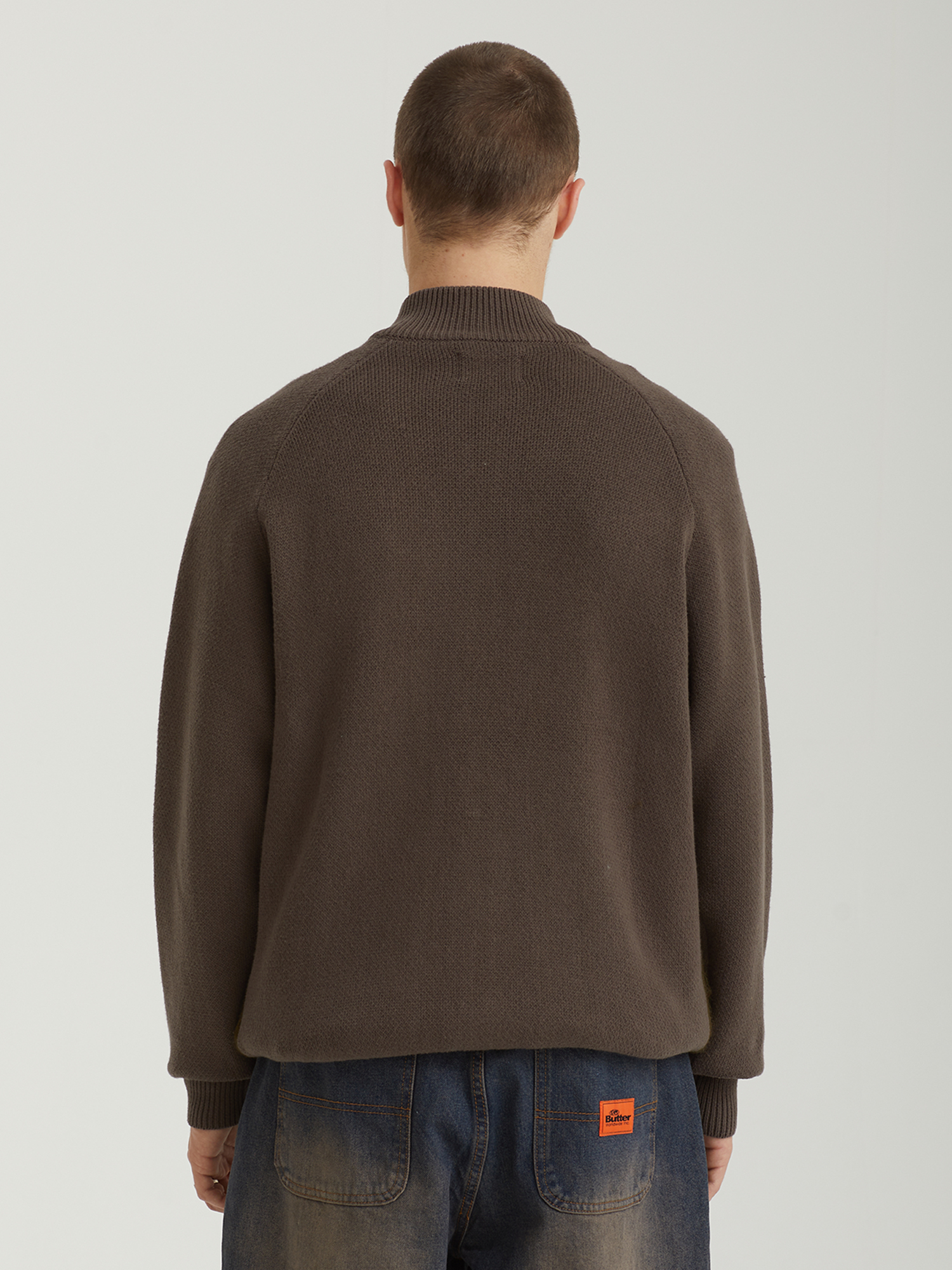 Свитер Butter Goods выполнен из мягкого акрилового трикотажа и оснащен застежкой на молнию. Расслабленный крой и ворсистая поверхность делают вещь особенно уютной. Рукава реглан, эластичные манжеты и нижняя резинка обеспечивают комфортную посадку. Спереди — крупный жаккардовый рисунок, выделяющий изделие в духе эстетики бренда.