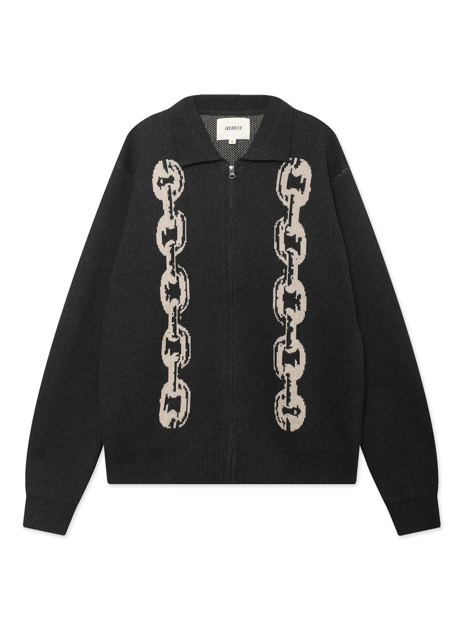 Свитер на молнии Heresy из мягкой хлопковой пряжи. Изделие дополнено контрастным рисунком на груди.