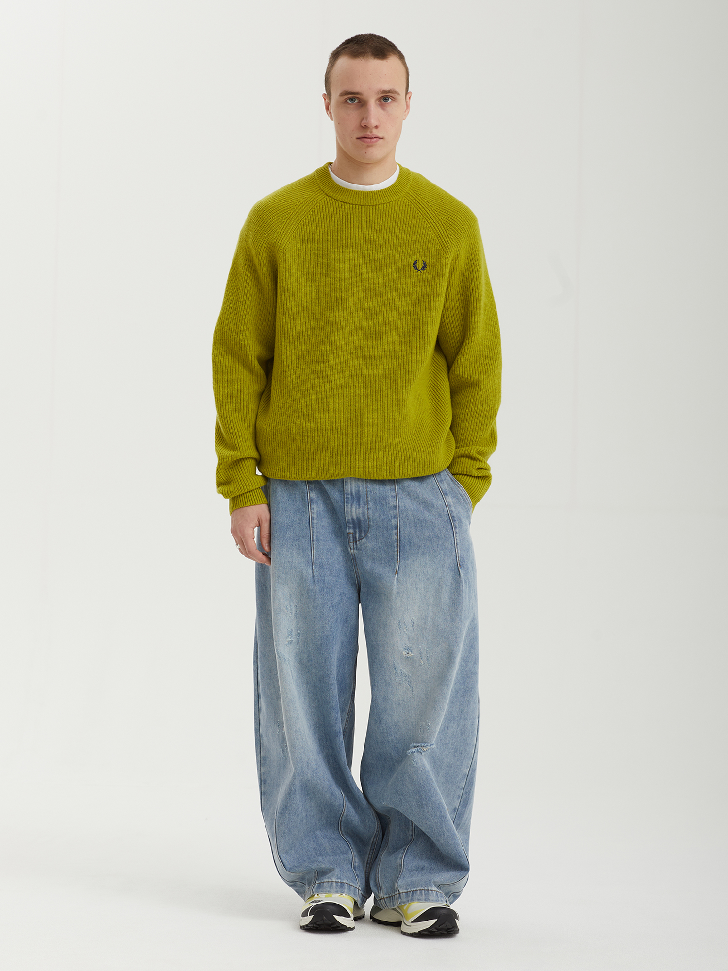 Свитер Fred Perry выполнен из натуральной шерсти, сертифицированной по международному стандарту RWS, который гарантирует этичное и ответственное производство. Классический прямой силуэт, рукава реглан и аккуратная окантовка в рубчик обеспечивают комфортную посадку. Фактурная вязка по всей поверхности делает модель более выразительной. Вышитый лавровый венок завершает дизайн.