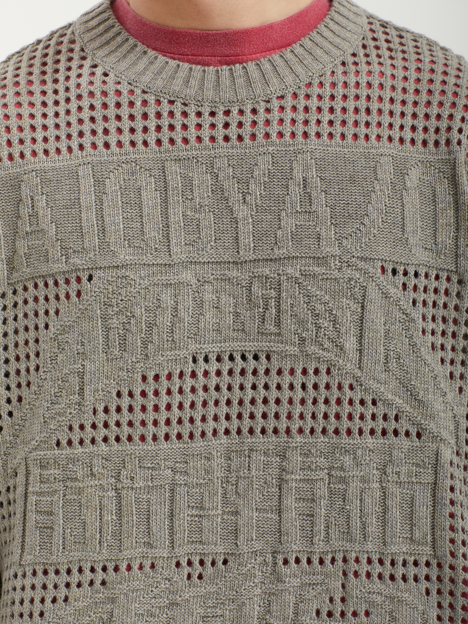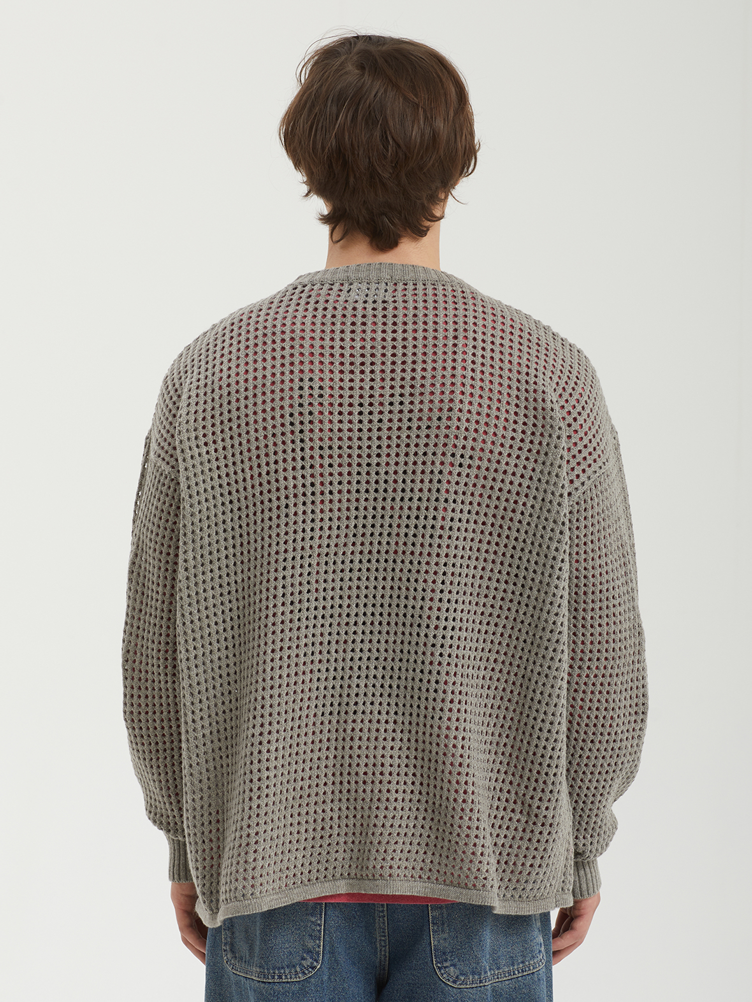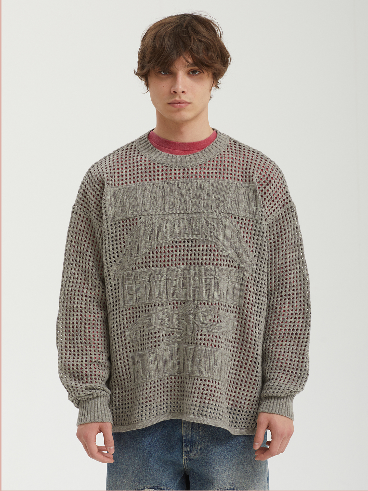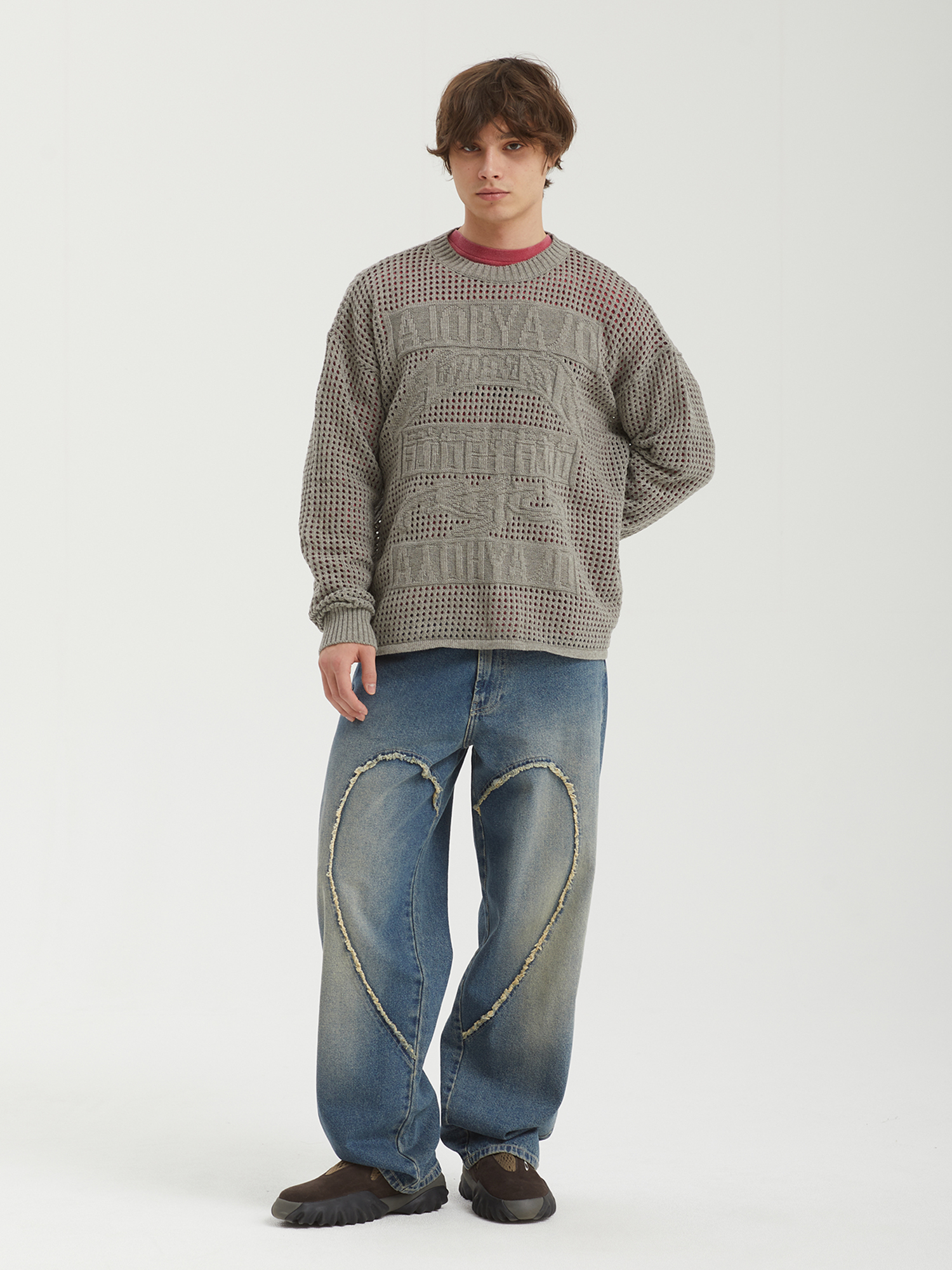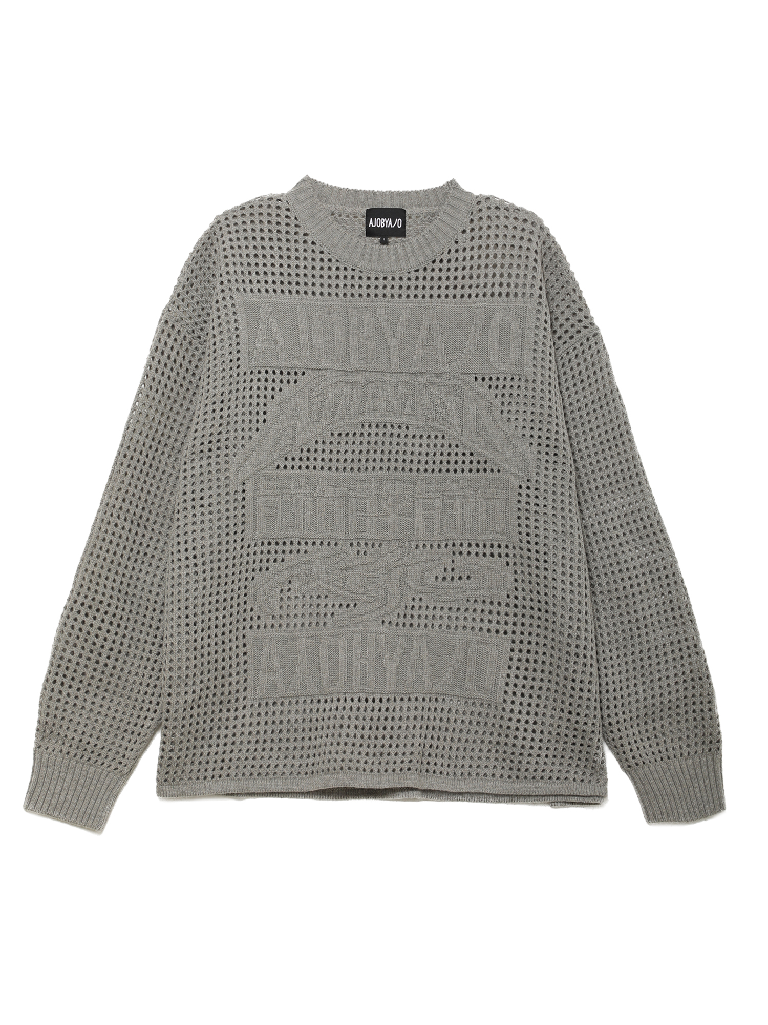 Свитер Ajobyajo из смесовой пряжи с вязкой в технике кроше. На груди — рисунок с логотипом бренда.