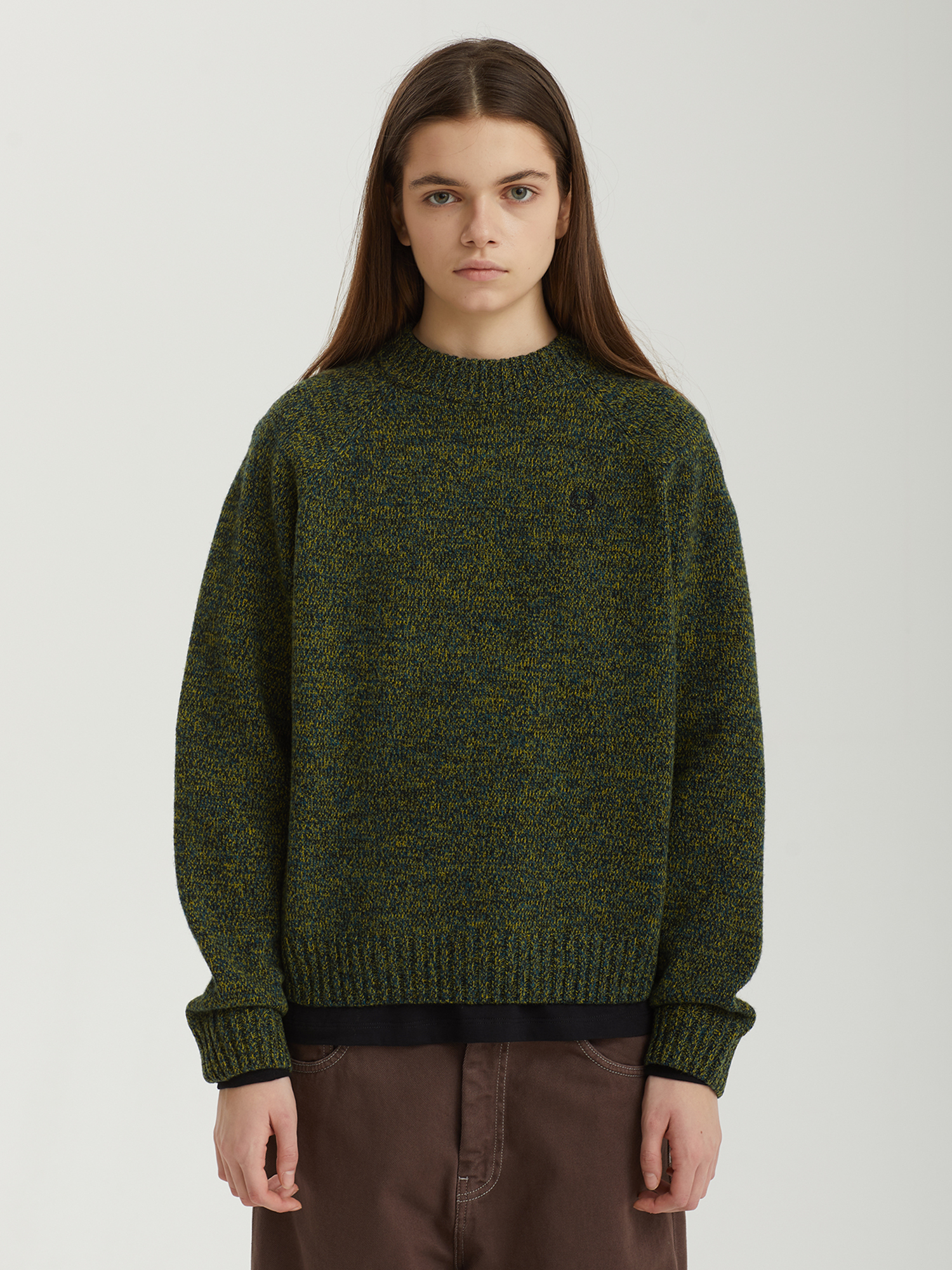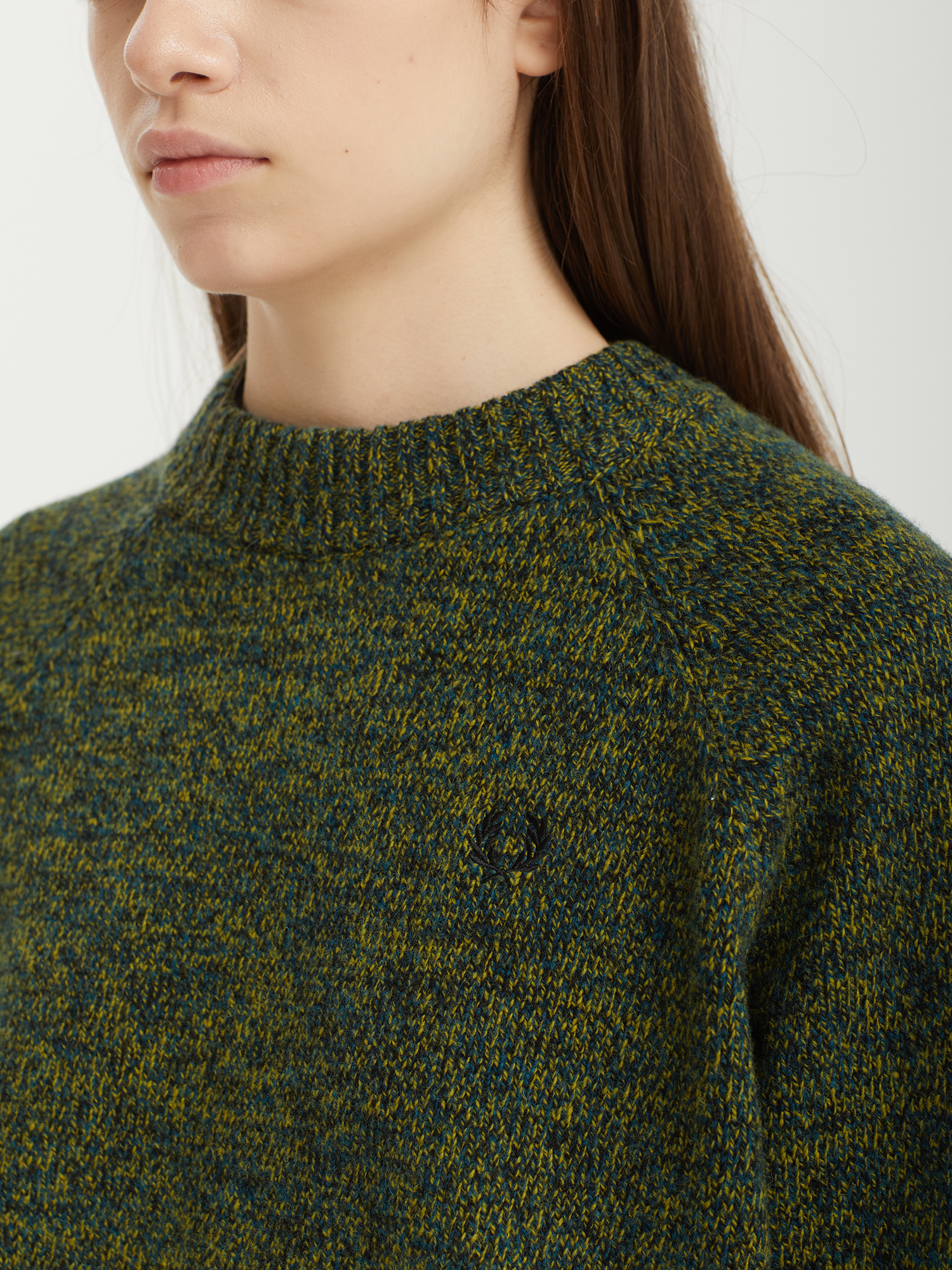 Свитер Fred Perry выполнен из меланжевой пряжи на основе шерсти, сертифицированной по международному стандарту RWS, который гарантирует этичное и ответственное производство. Слегка расслабленный крой с рукавами реглан, аккуратный воротник средней высоты и крупная ребристая отделка по краям обеспечивают комфортную посадку и свободу движений. Вышитый лавровый венок завершает дизайн.