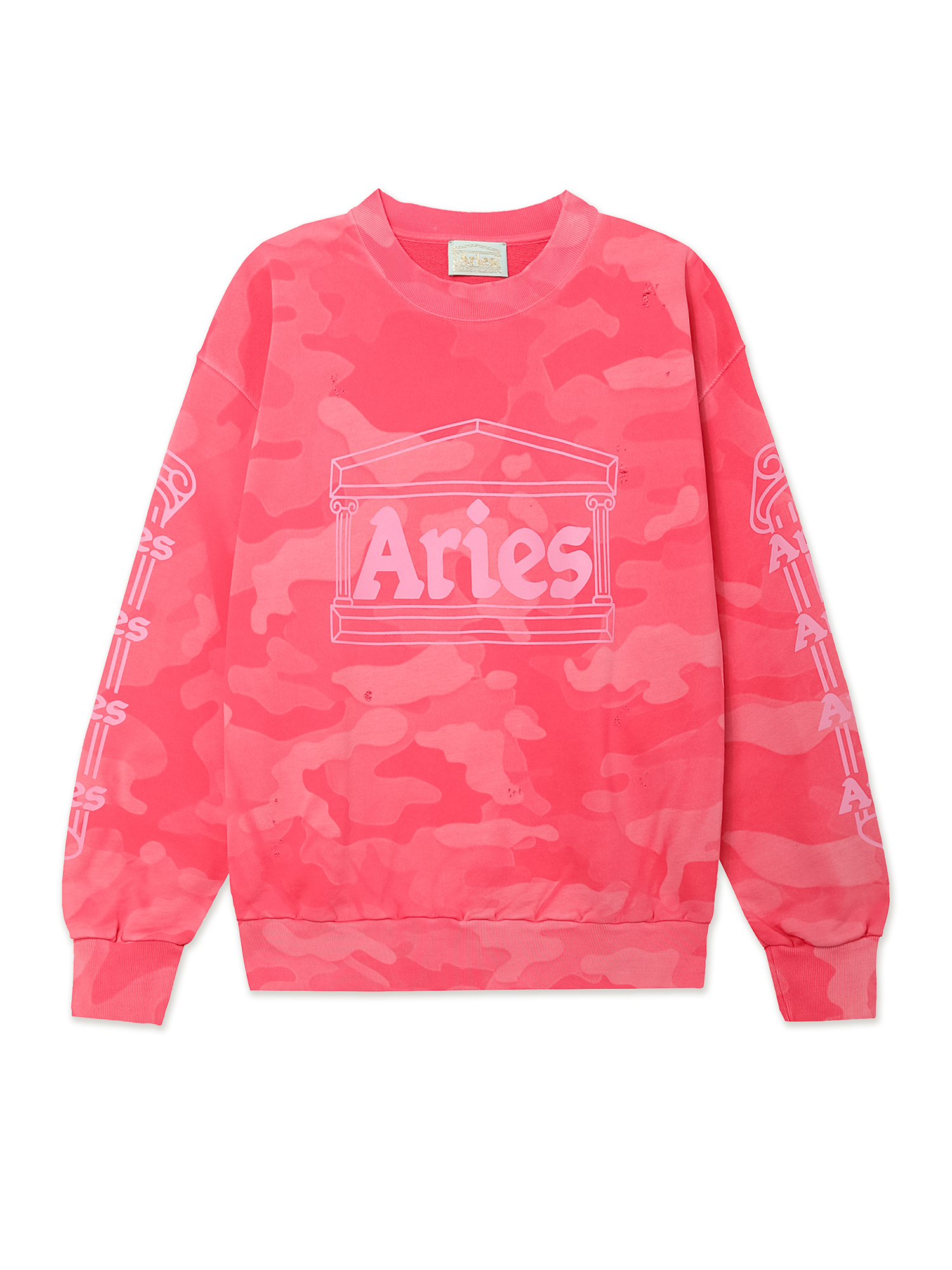 Свитшот Aries из плотного хлопкового материала с петельчатой изнанкой. Изделие дополнено камуфляжным принтом и выстирано для получения винтажного эффекта.