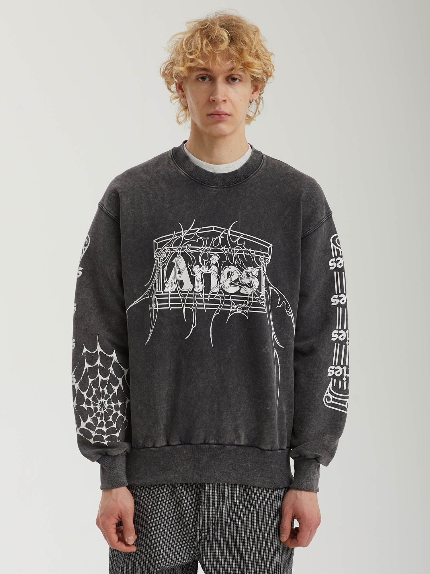 Свитшот Aries из плотного хлопкового материала с ворсистой изнанкой. Изделие выстирано для получения винтажного эффекта.