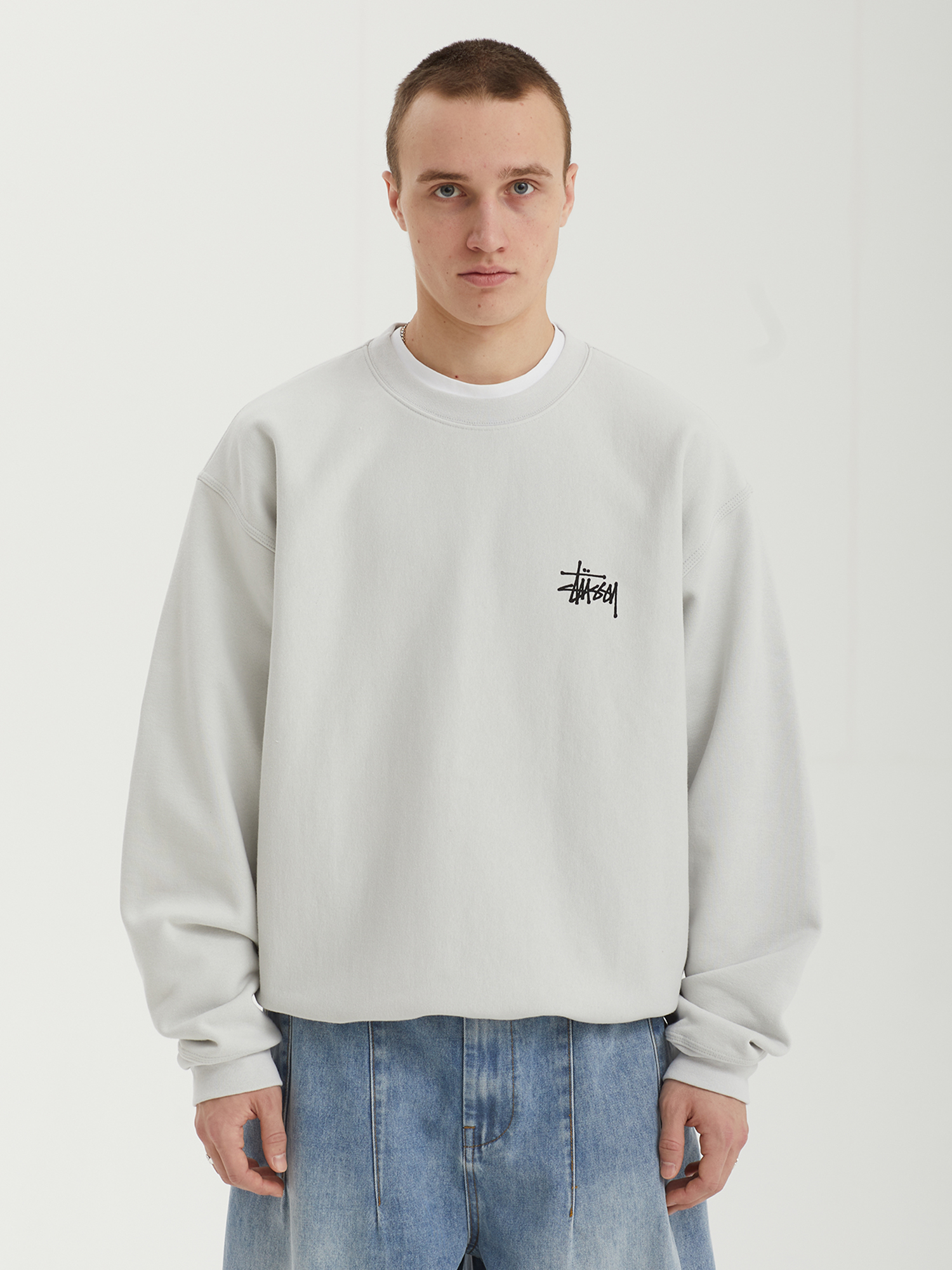 Свитшот с логотипами Stussy из плотной смесовой ткани с ворсистой изнанкой.