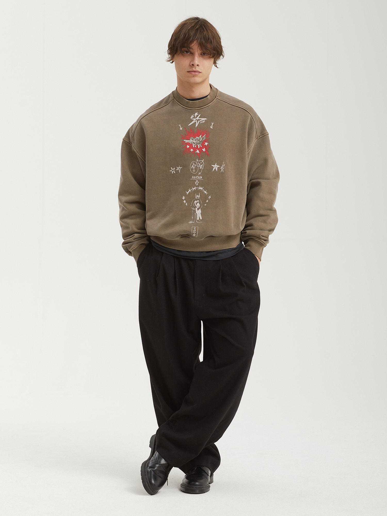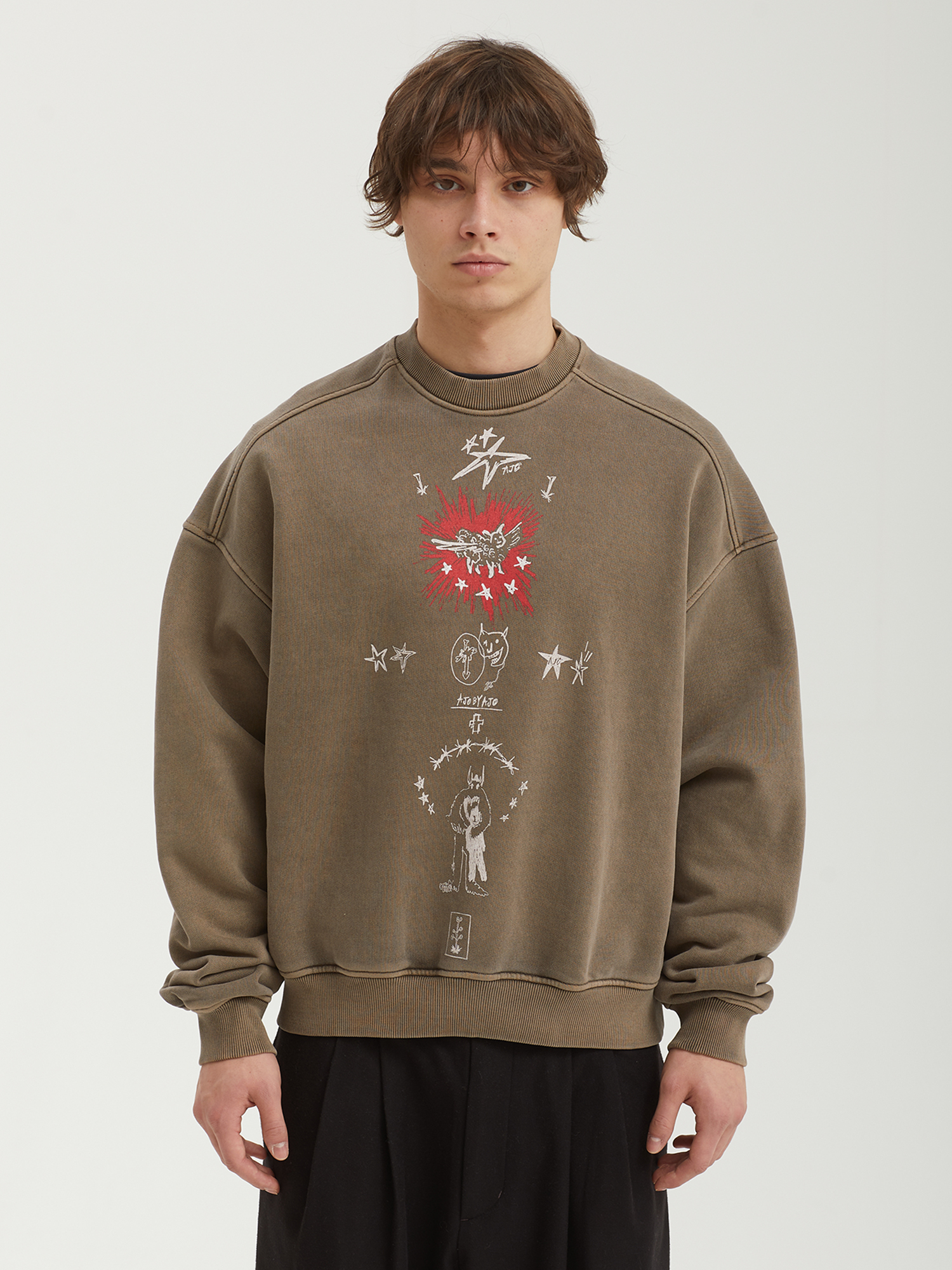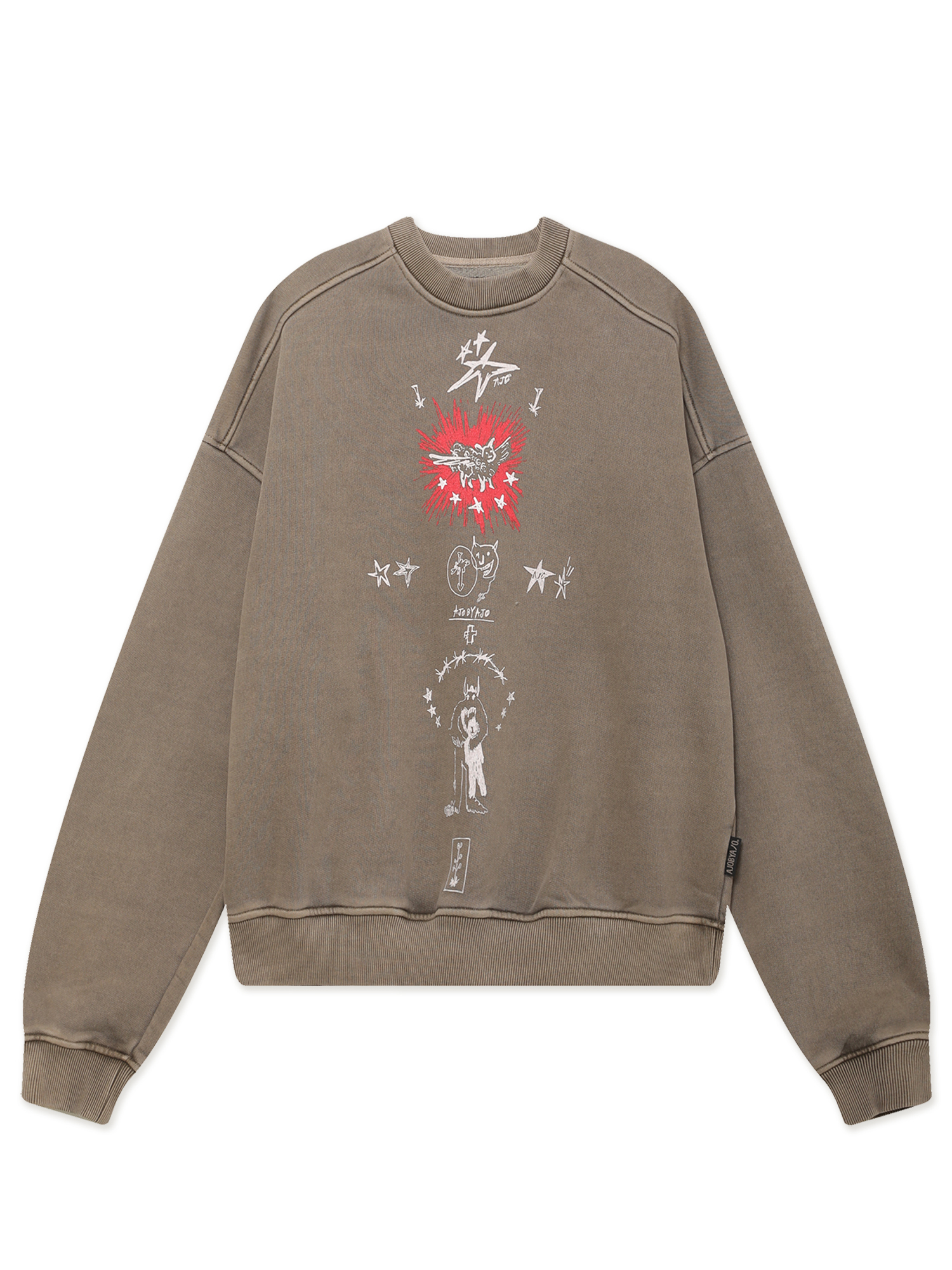 Свитшот Ajobyajo из смесового материала с ворсистой изнанкой. Изделие выстирано в готовом виде для получения винтажного эффекта.
