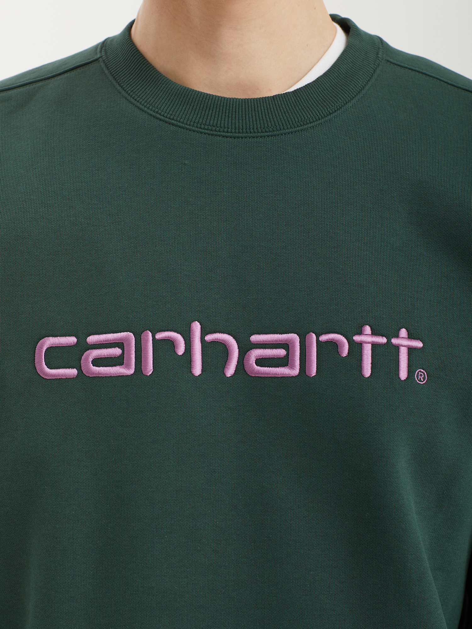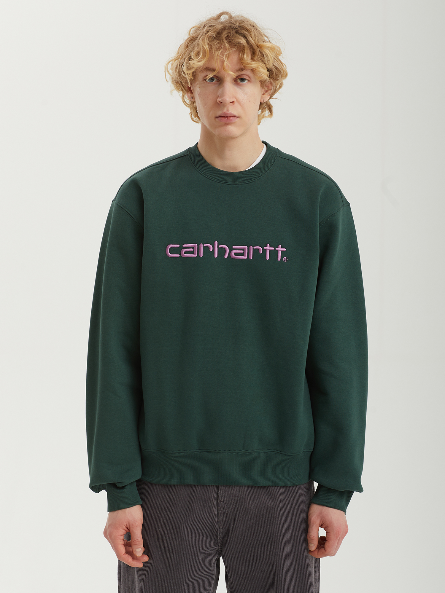 Свитшот Carhartt WIP из плотного смесового материала с ворсистой изнанкой. На груди — объемная вышивка с логотипом бренда.