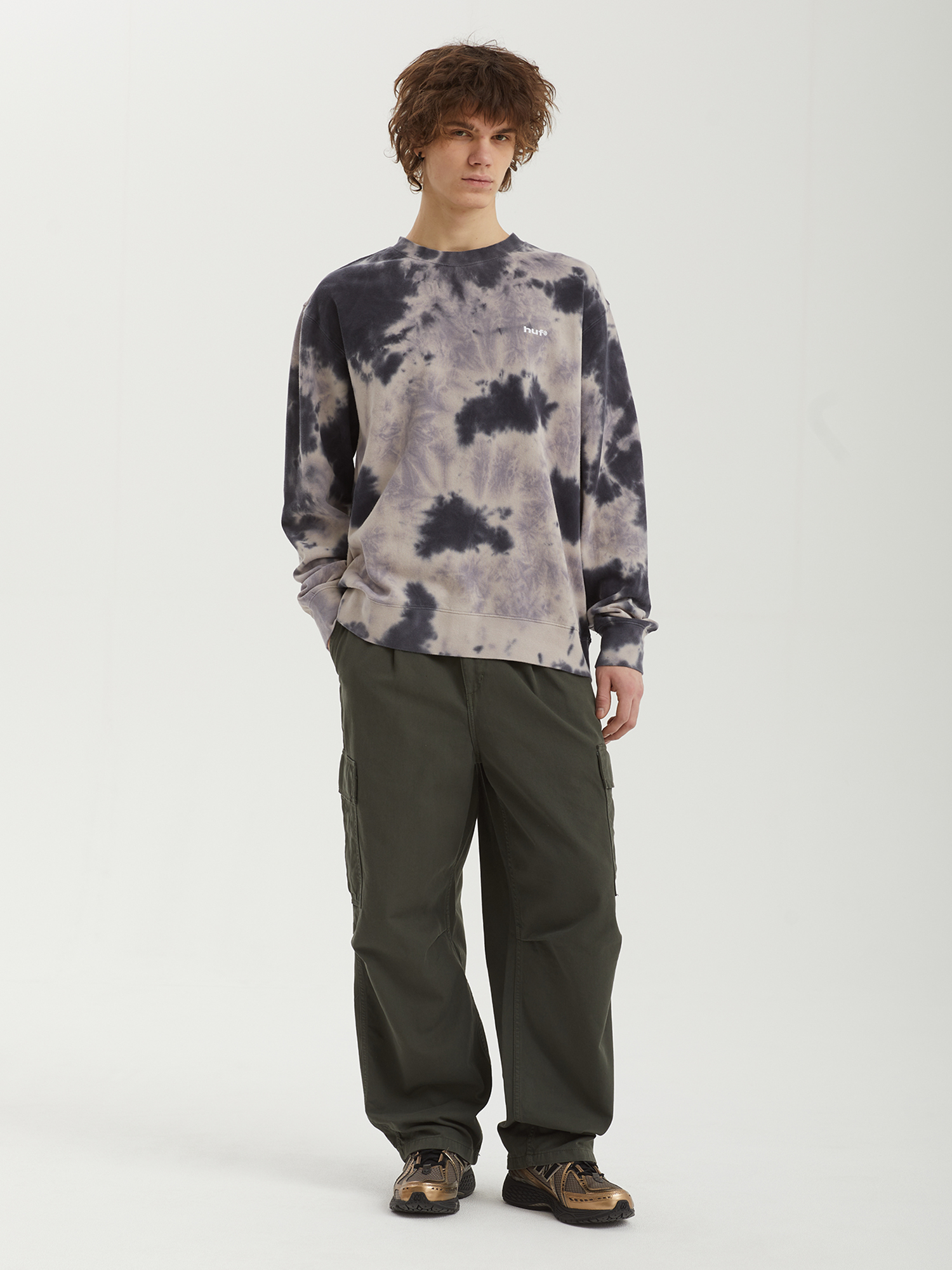Свитшот Huf из хлопкового материала с ворсистой изнанкой. Окрашивание в технике tie-dye.