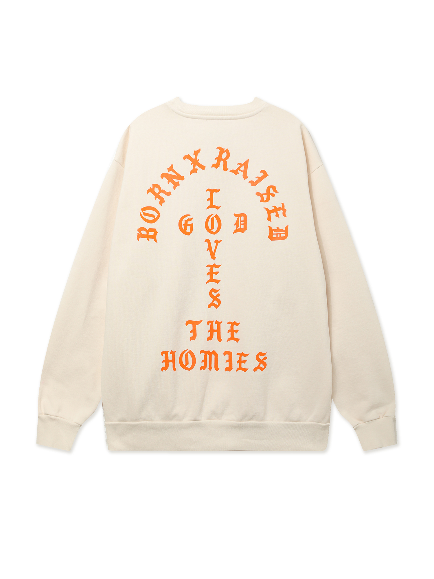 Толстовка с логотипами Born x Raised из плотного хлопкового материала с петельчатой изнанкой.