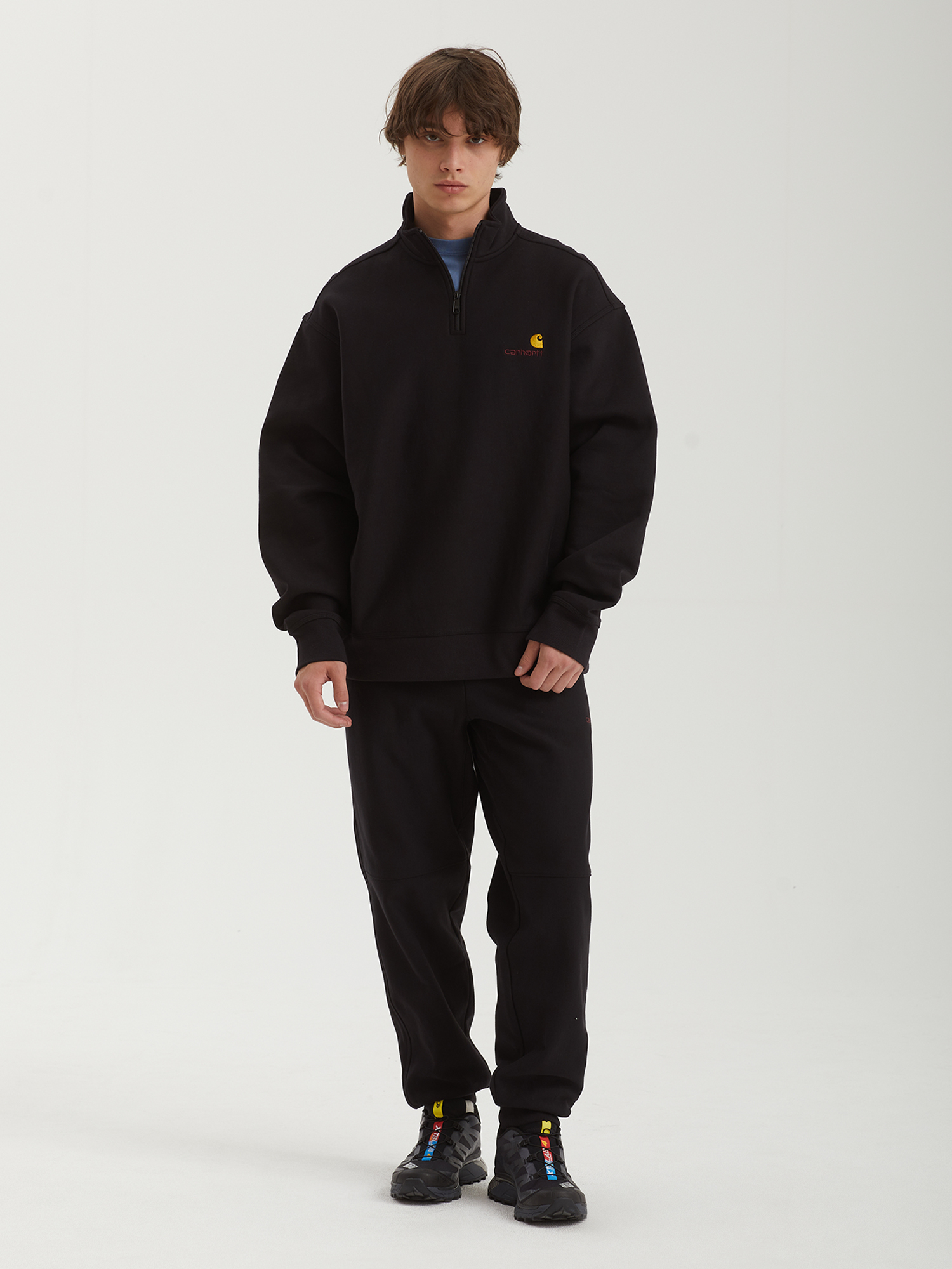Свитшот Carhartt WIP с воротником на молнии. Выполнен из смесового хлопка плотностью 420 г/м2. Мягкая и ворсистая изнанка, напоминающая по фактуре флис. Вышивка на груди.