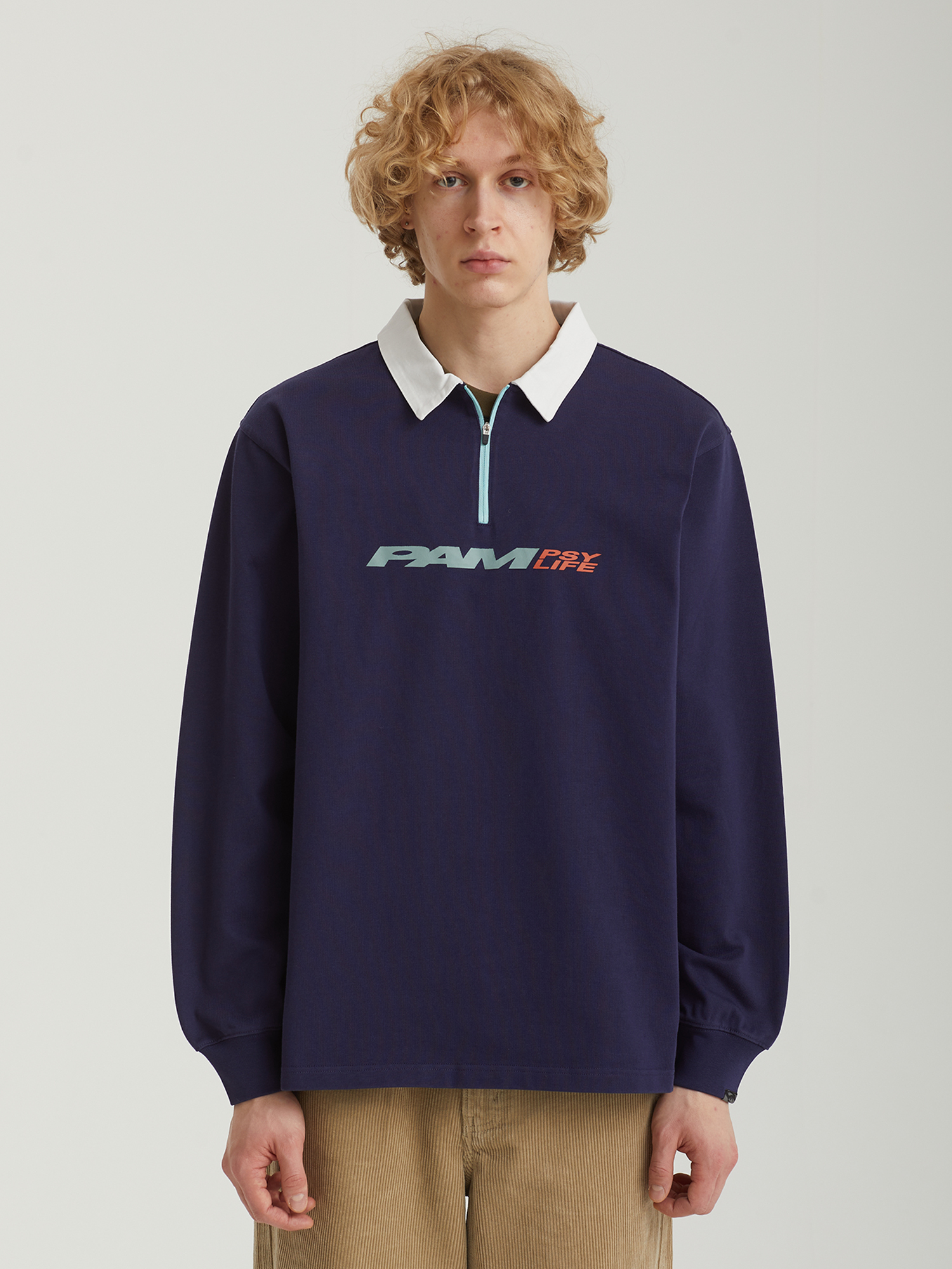 Лонгслив P.A.M. в стиле регби из плотного хлопкового трикотажа. На фронтальной панели размещен принт с логотипом бренда, а на спине — крупный графический патч.
