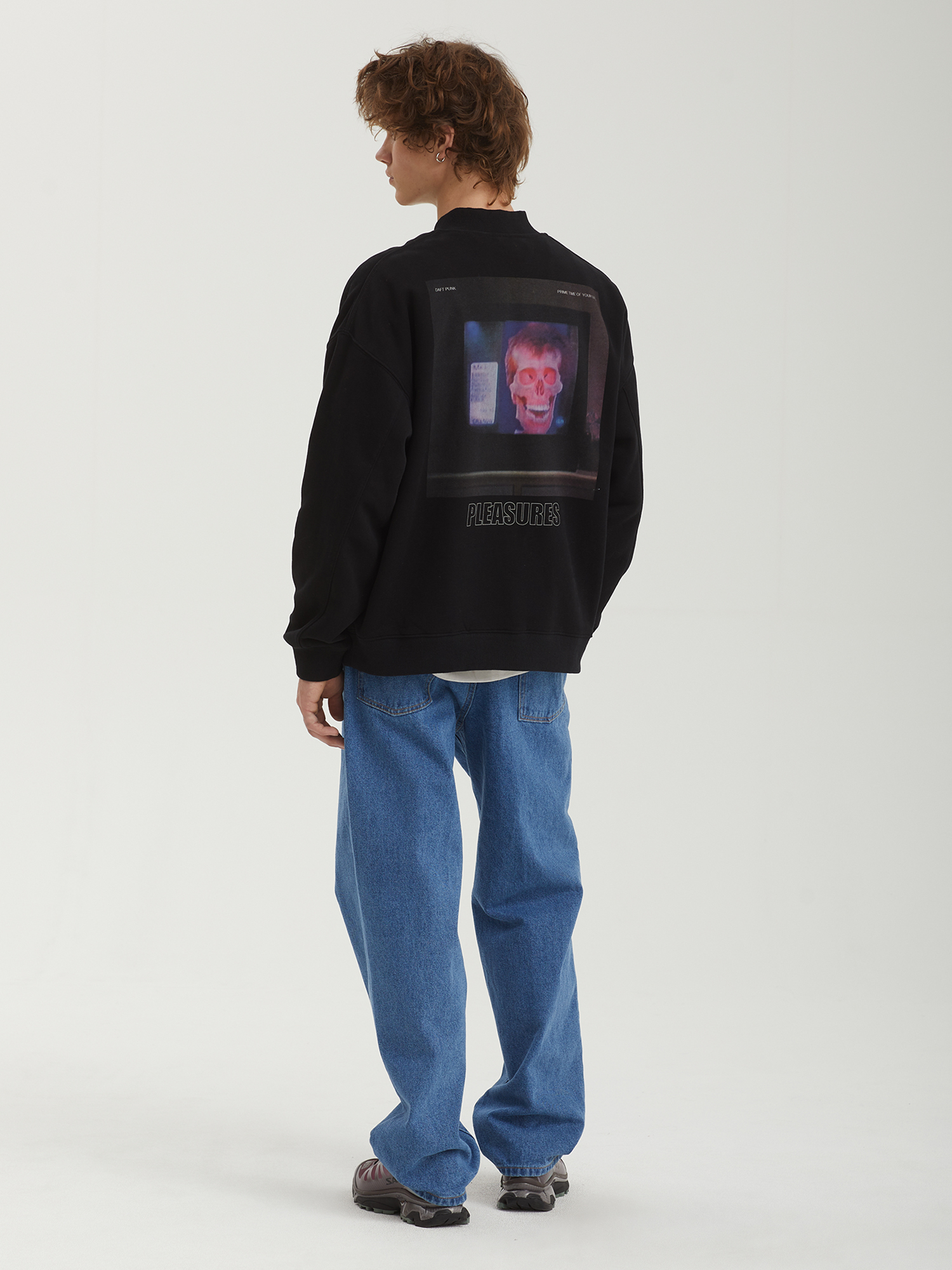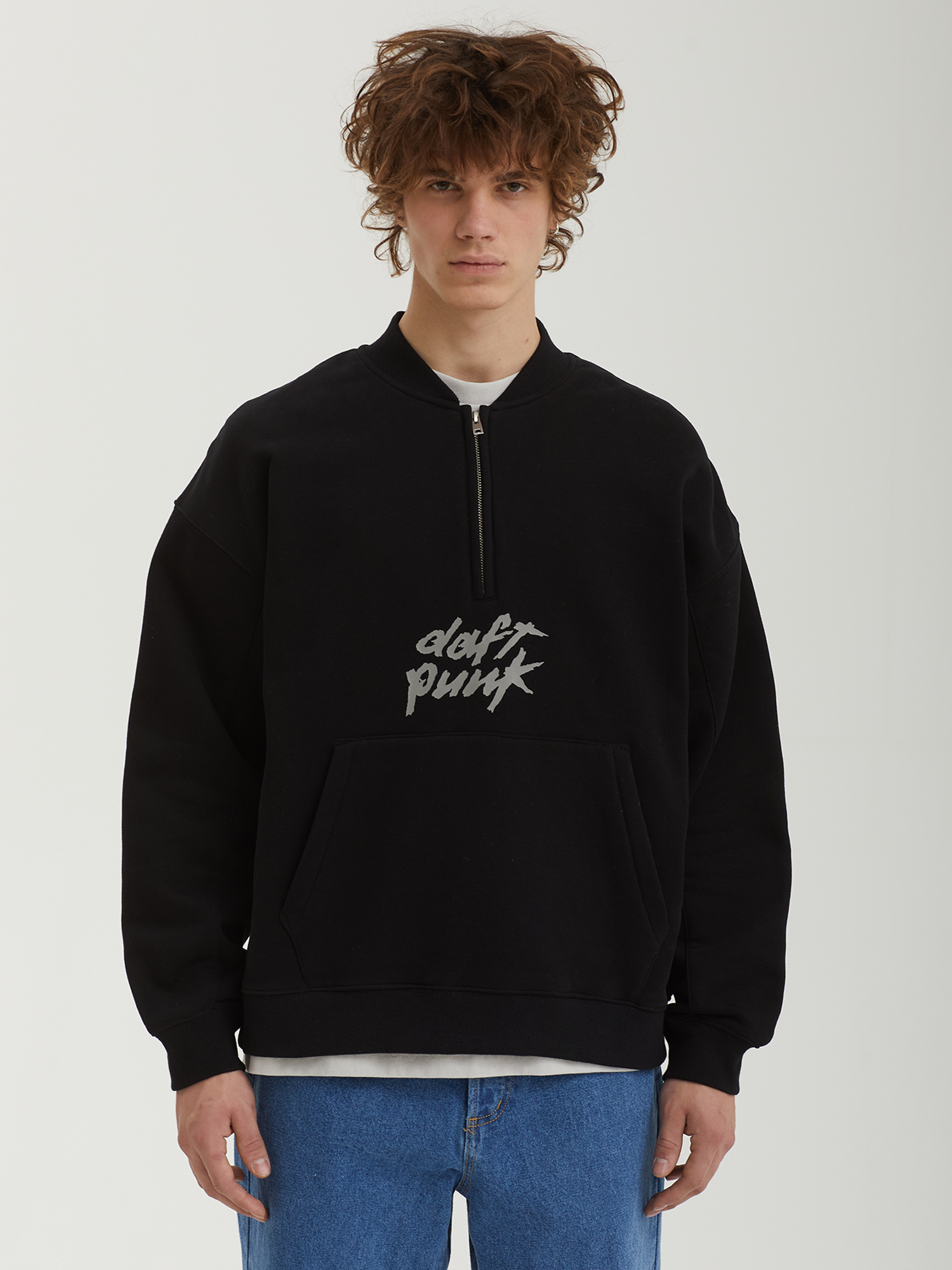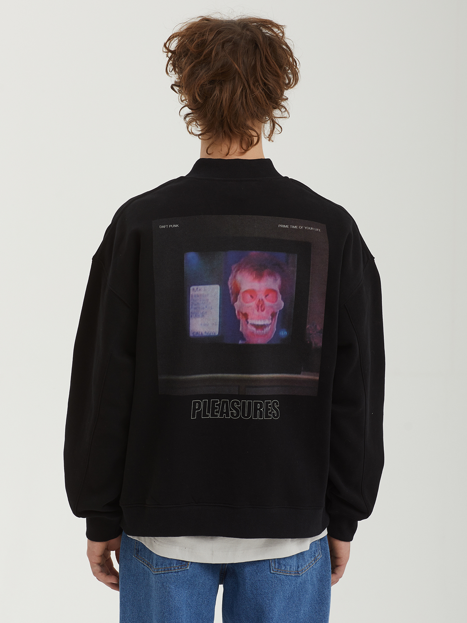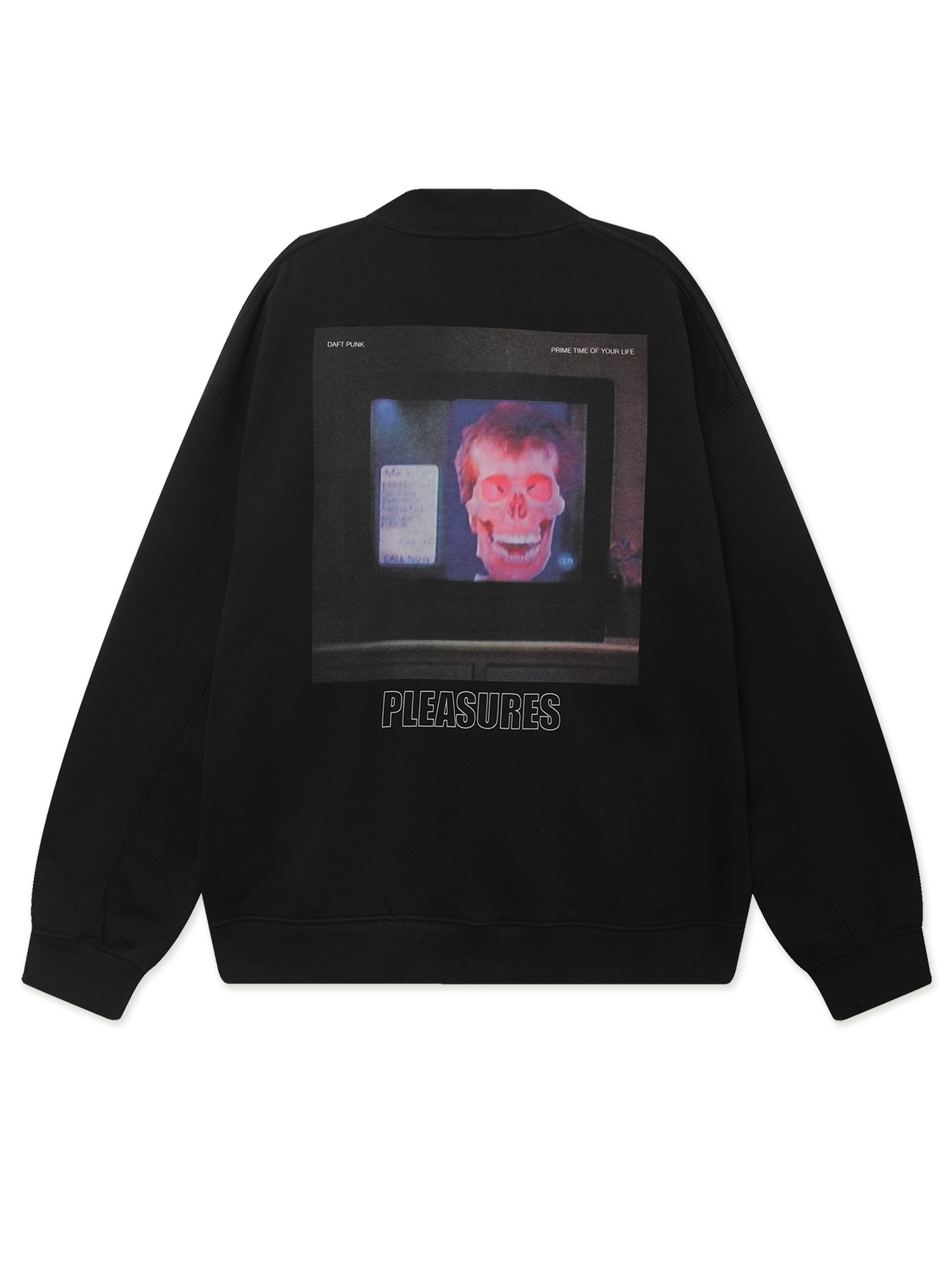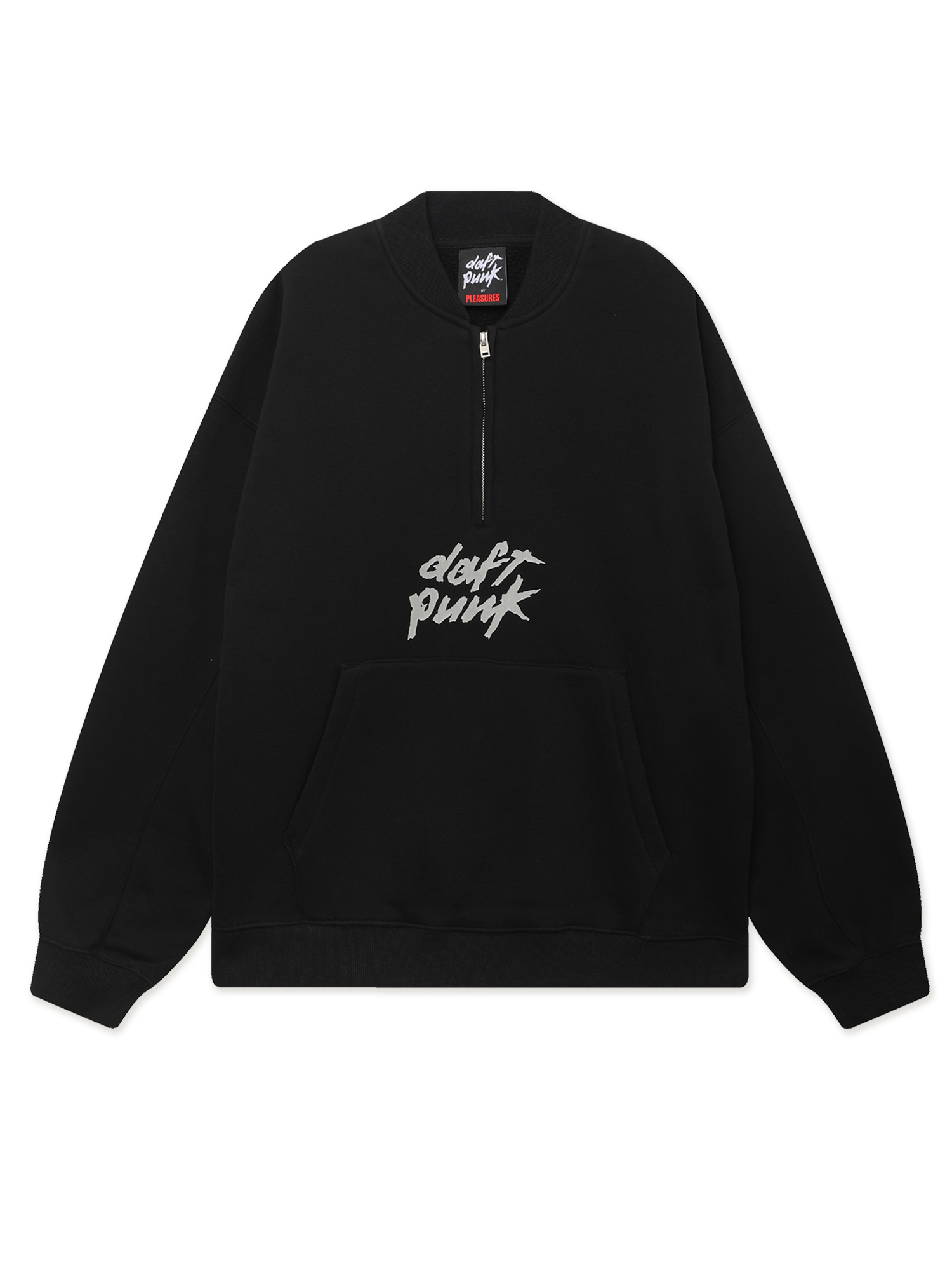 Толстовка на молнии Pleasures из официальной коллаборации с французским дуэтом Daft Punk. Изделие из плотного смесового материала с ворсистой изнанкой, дополнено двойным брендингом.