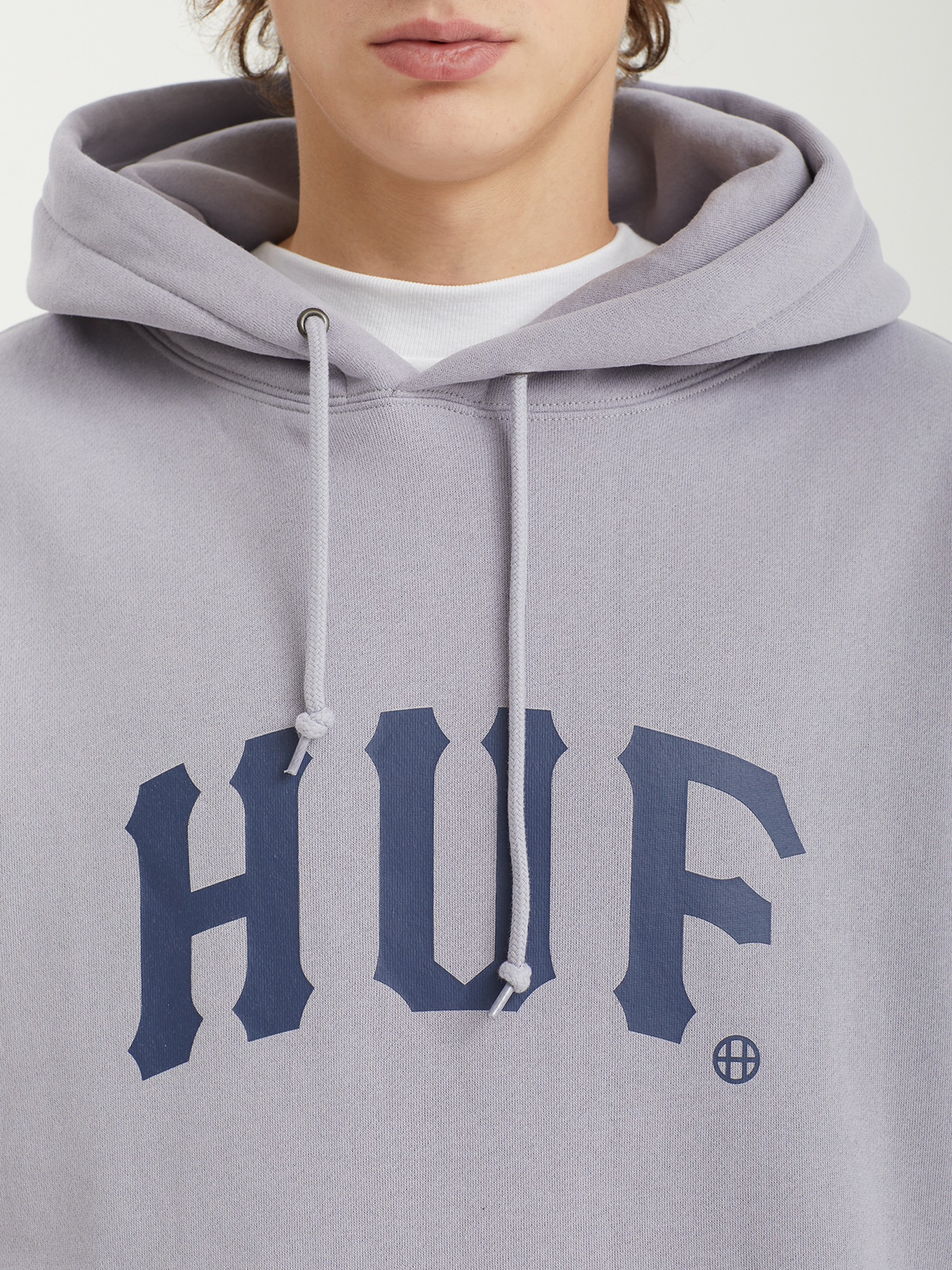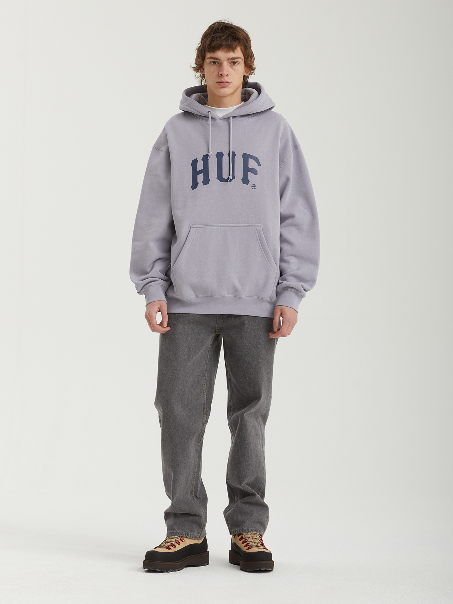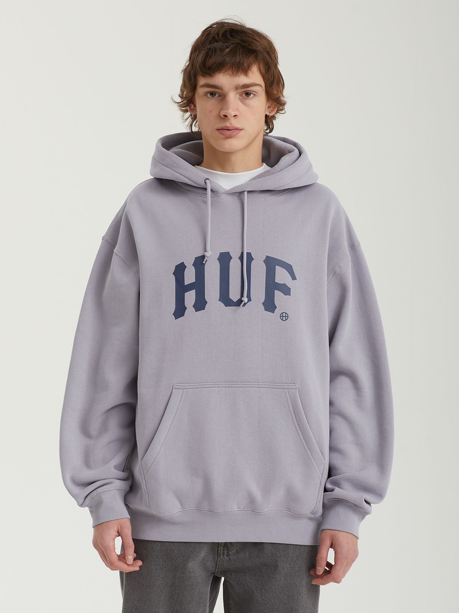 Толстовка с логотипом Huf из плотного смесового материала с ворсистой изнанкой.