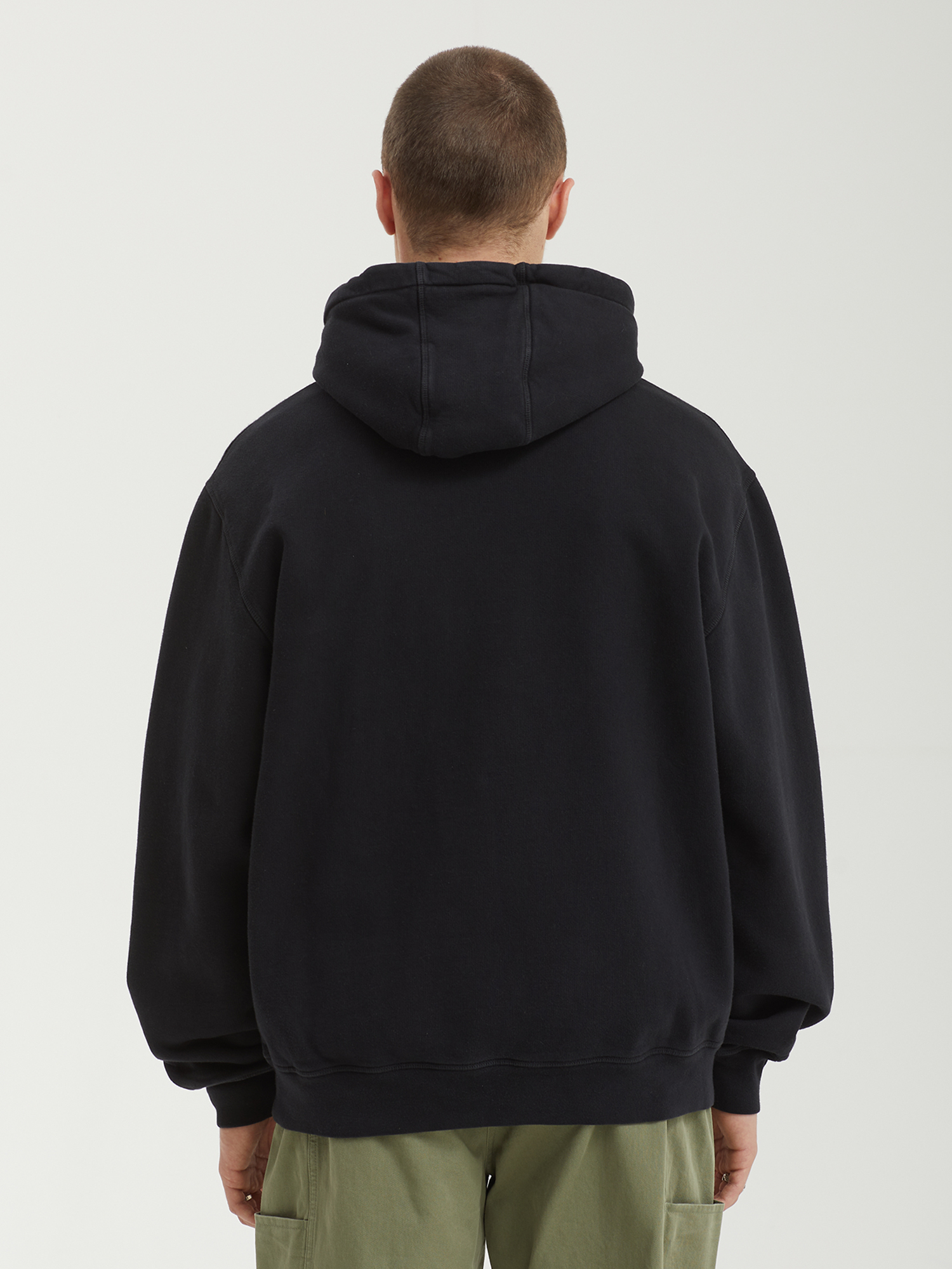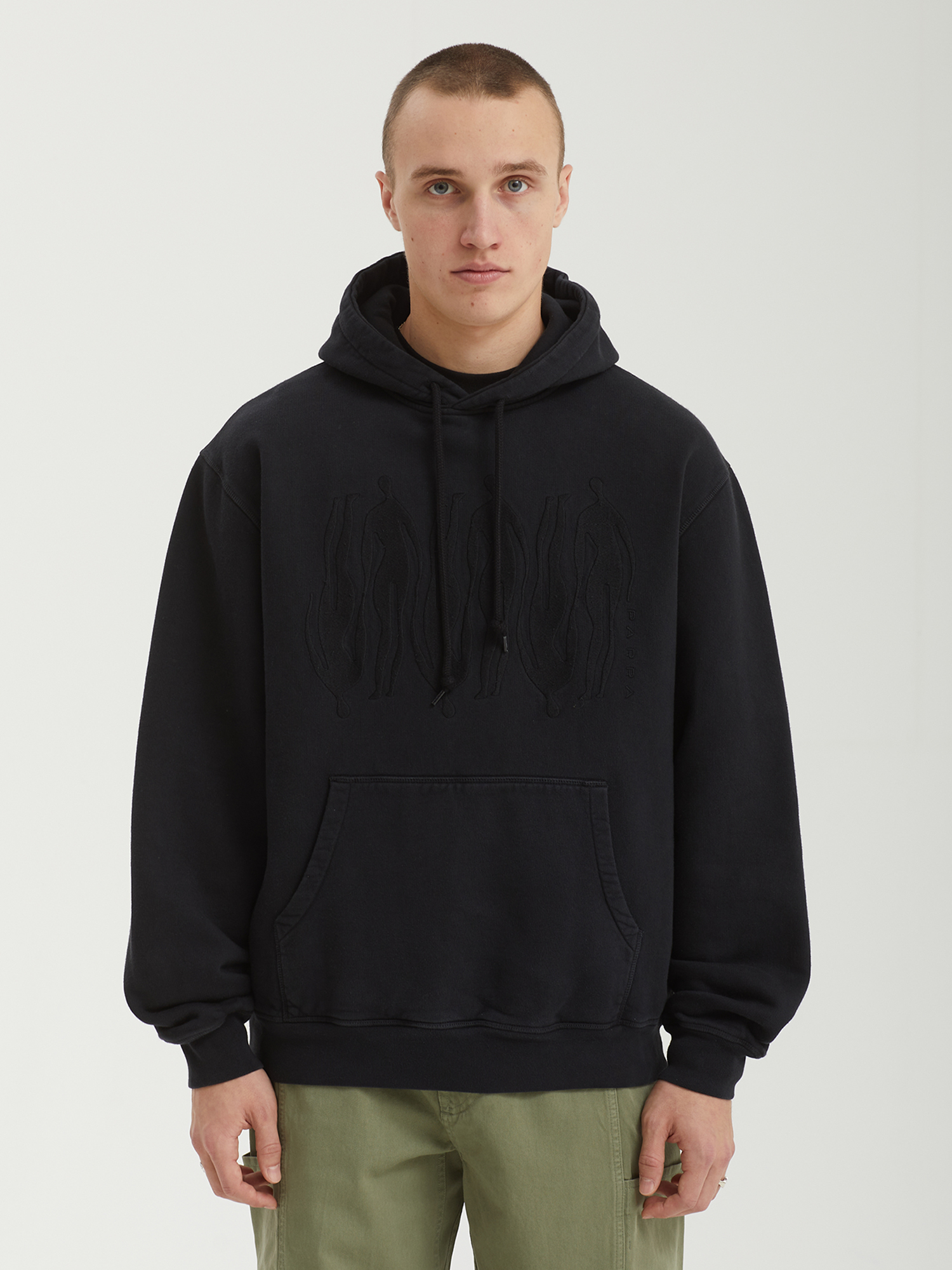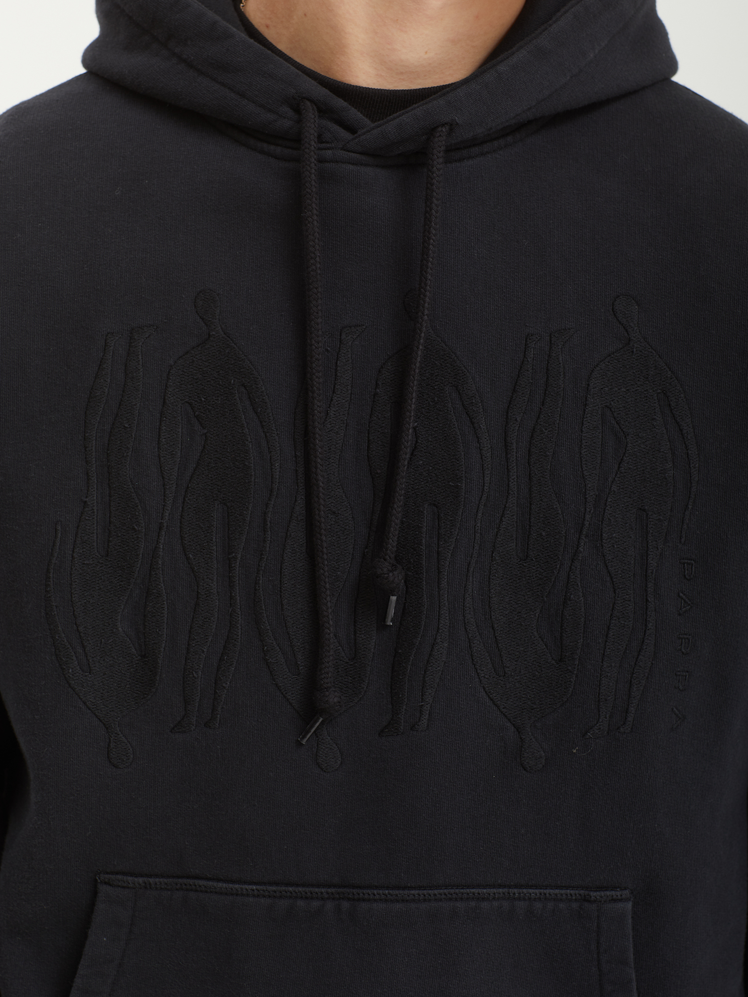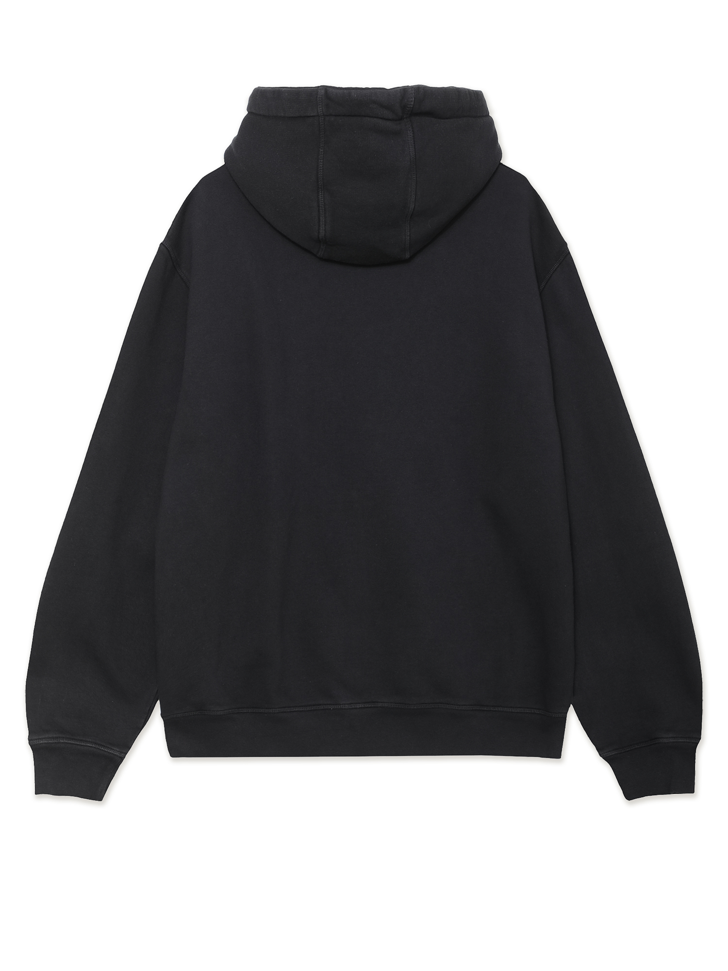 Худи By Parra из плотной хлопковой ткани с ворсистой изнанкой. На груди — вышивка с графикой от голландского художника Питера Янсена (Parra). Изделие выстирано для получения легкого винтажного эффекта.