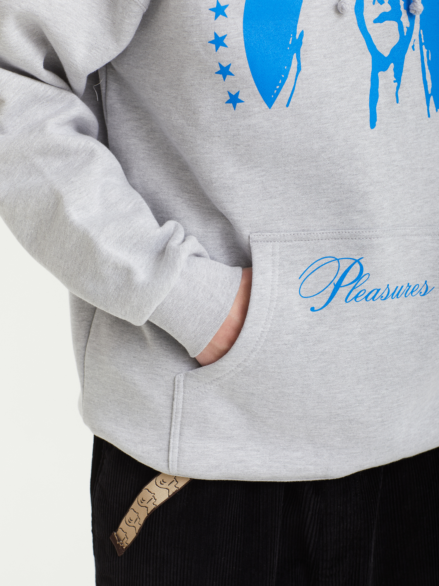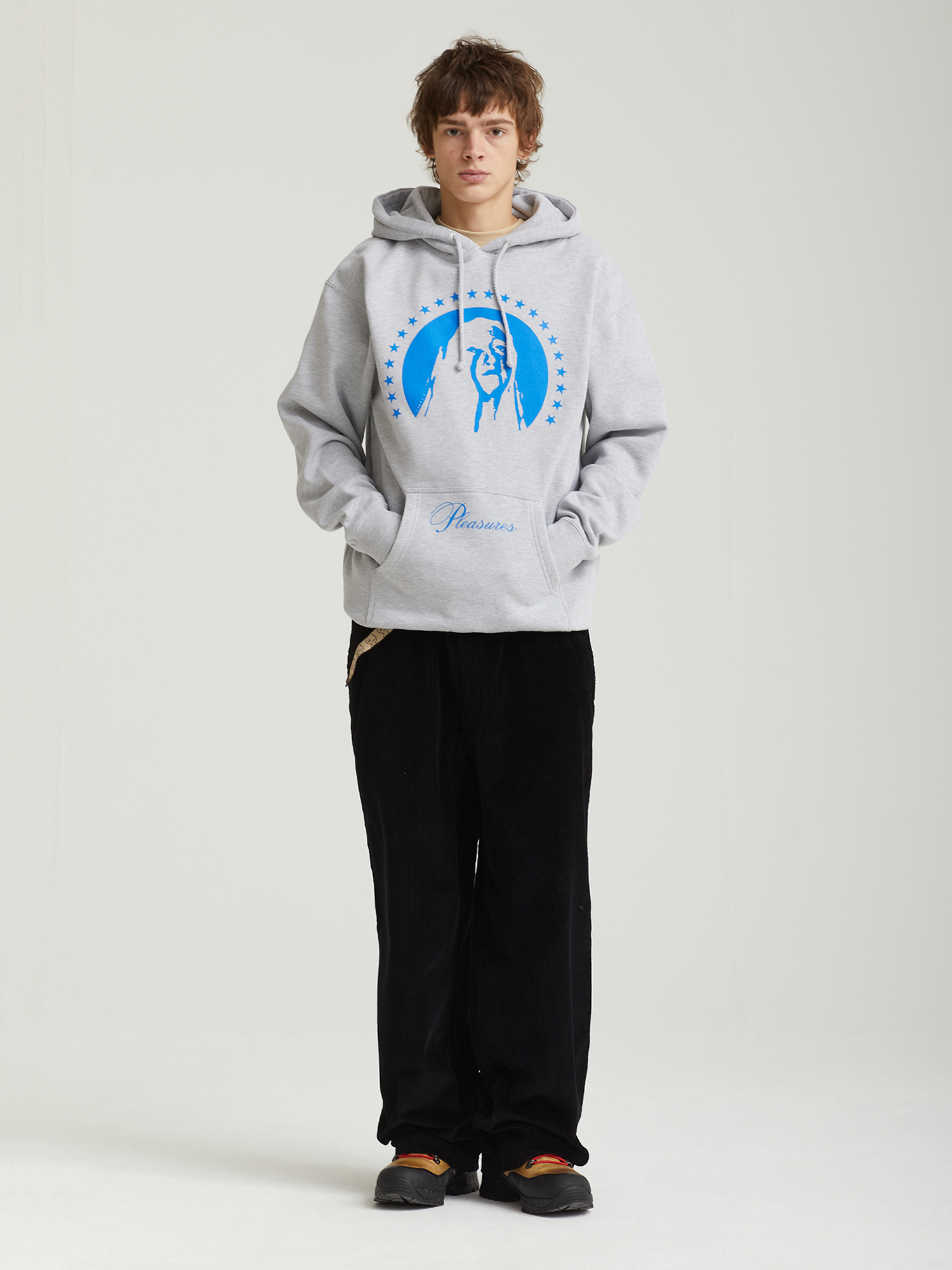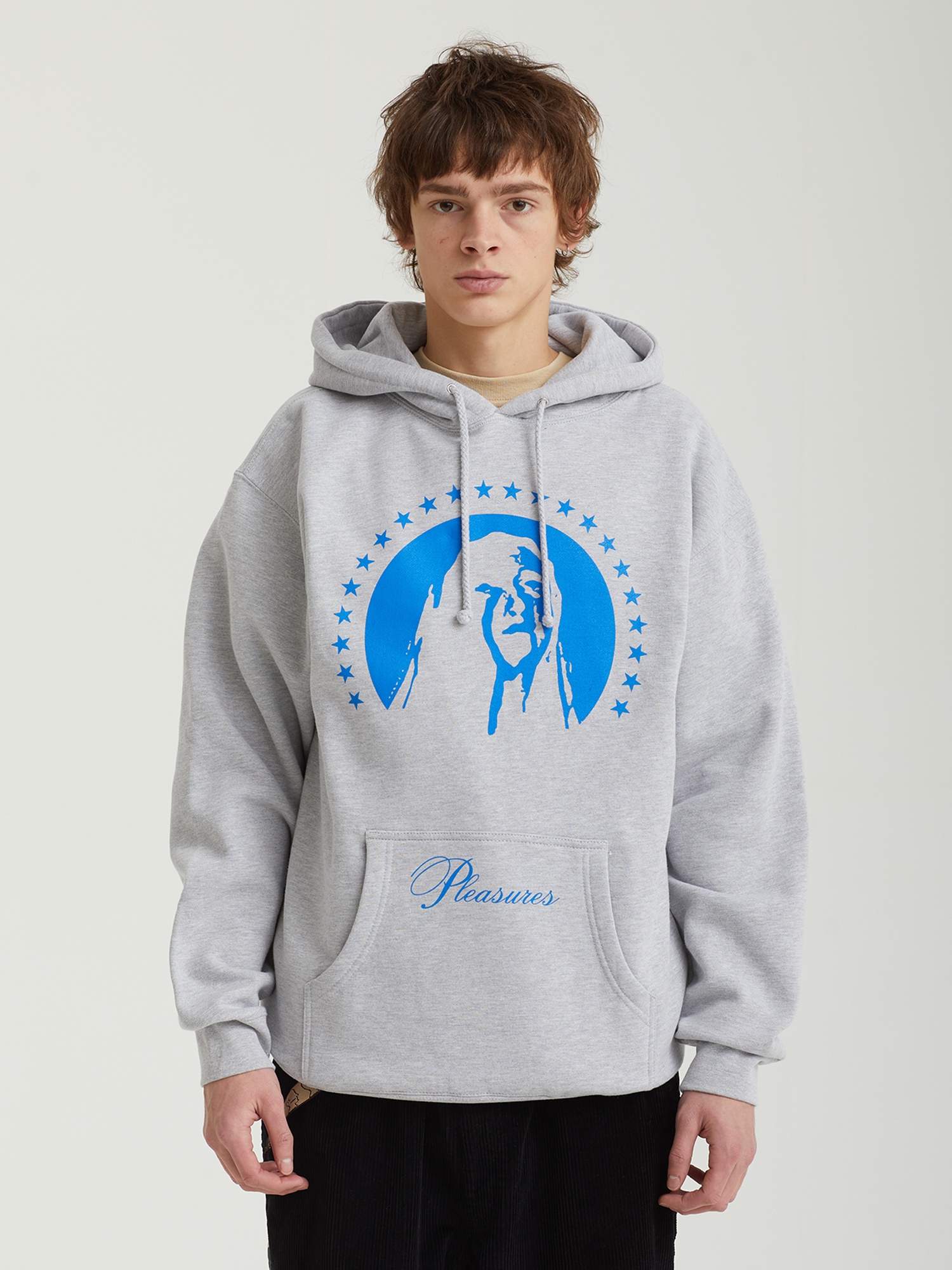 Толстовка Pleasures выполнена из смесового трикотажа на основе хлопка. Модель имеет расслабленный силуэт и дополнена сезонными принтами с двух сторон. Оснащена регулируемым капюшоном, вместительным карманом-кенгуру и эластичной отделкой манжет и нижнего края для комфортной посадки.
