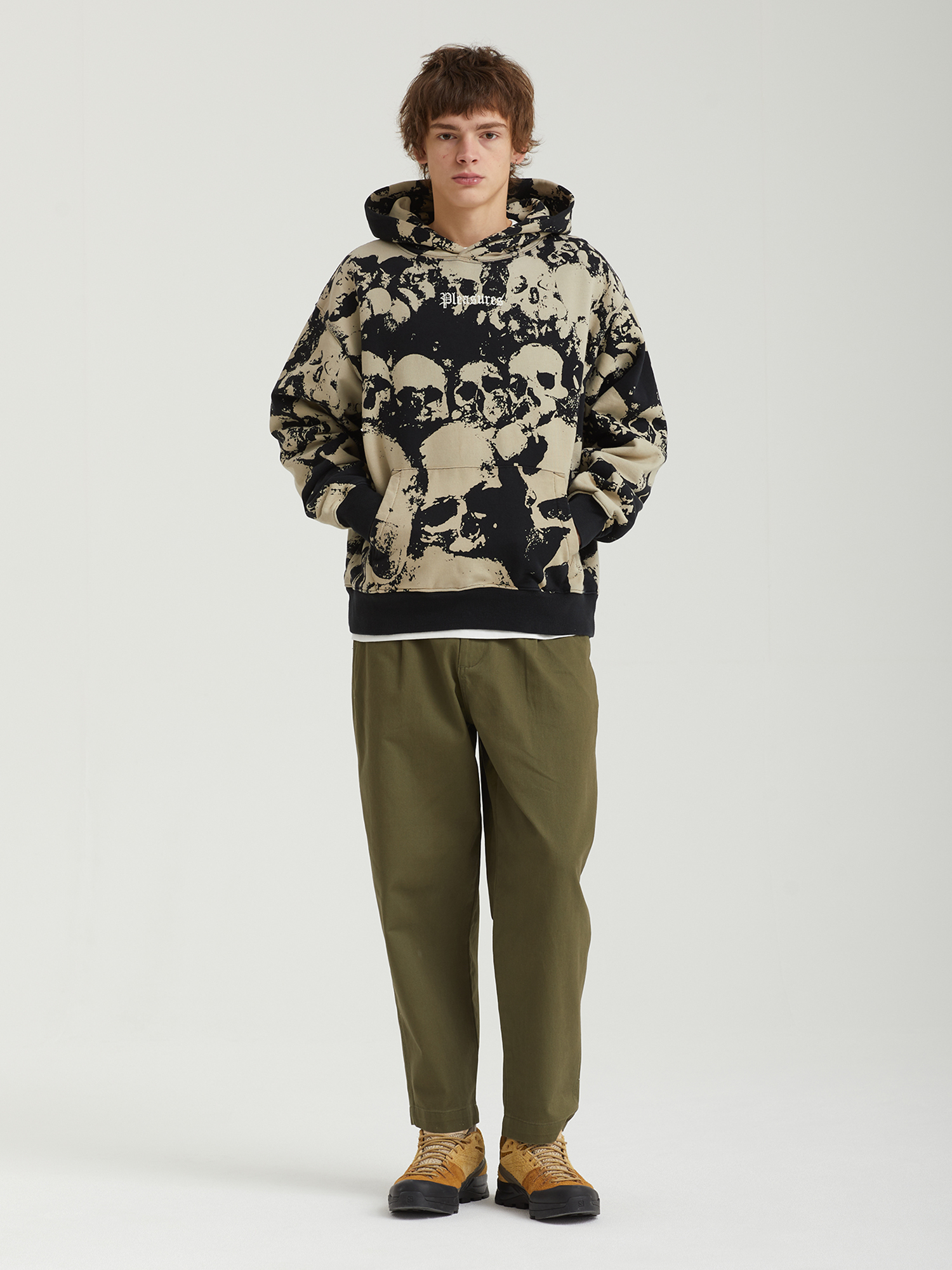 Толстовка Pleasures выполнена из плотного футера French terry — хлопкового материала, который отлично держит форму и приятен на ощупь. Модель имеет расслабленный силуэт и оформлена полноразмерным графическим принтом. Оснащена вместительным карманом-кенгуру и эластичной отделкой манжет и нижнего края для комфортной посадки.