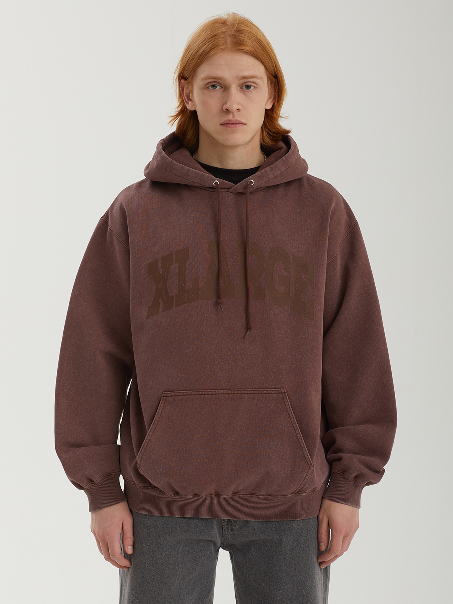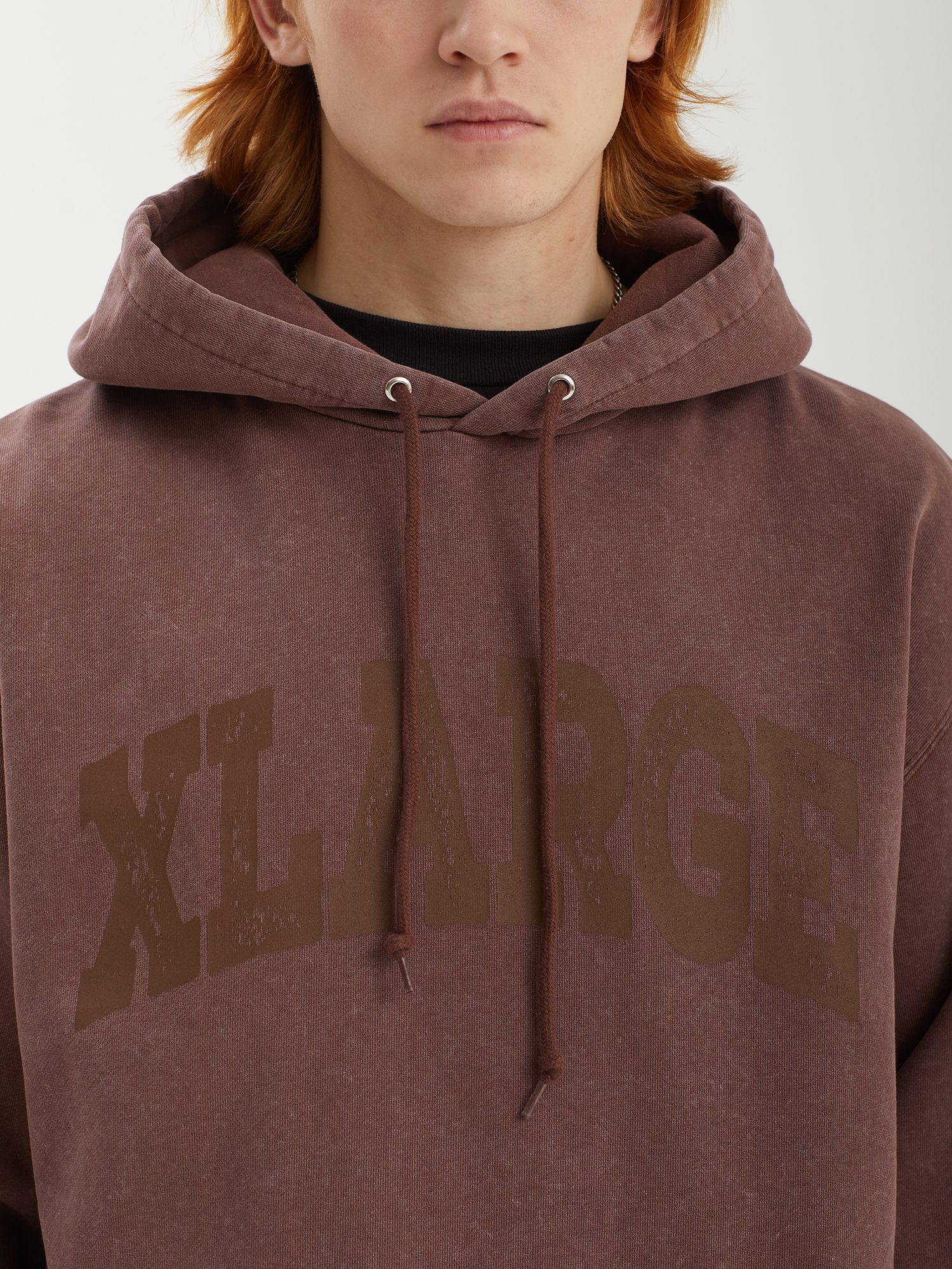 Толстовка XLarge выполнена из плотного хлопкового трикотажа и прошла специальную обработку, которая придает изделию мягкость и легкий винтажный эффект. Модель оснащена регулируемым капюшоном и удобным накладным карманом. Расслабленный силуэт, эластичные манжеты и нижняя резинка в рубчик обеспечивают комфортную посадку. Напечатанный шрифтовой логотип на фронтальной панели дополняет дизайн.