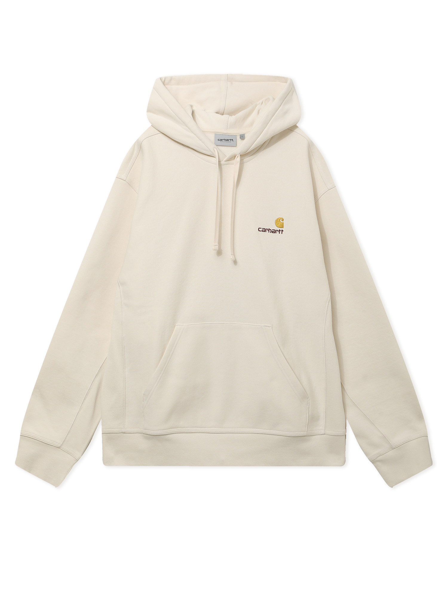 Толстовка Carhartt WIP выполнена из хлопкового футера с начесом и добавлением полиэстера. Капюшон на кулиске, традиционный накладной карман с двумя боковыми входами на животе. На груди — шрифтовая вышивка с логотипом. Низ и манжеты рукавов из трикотажной резинки.