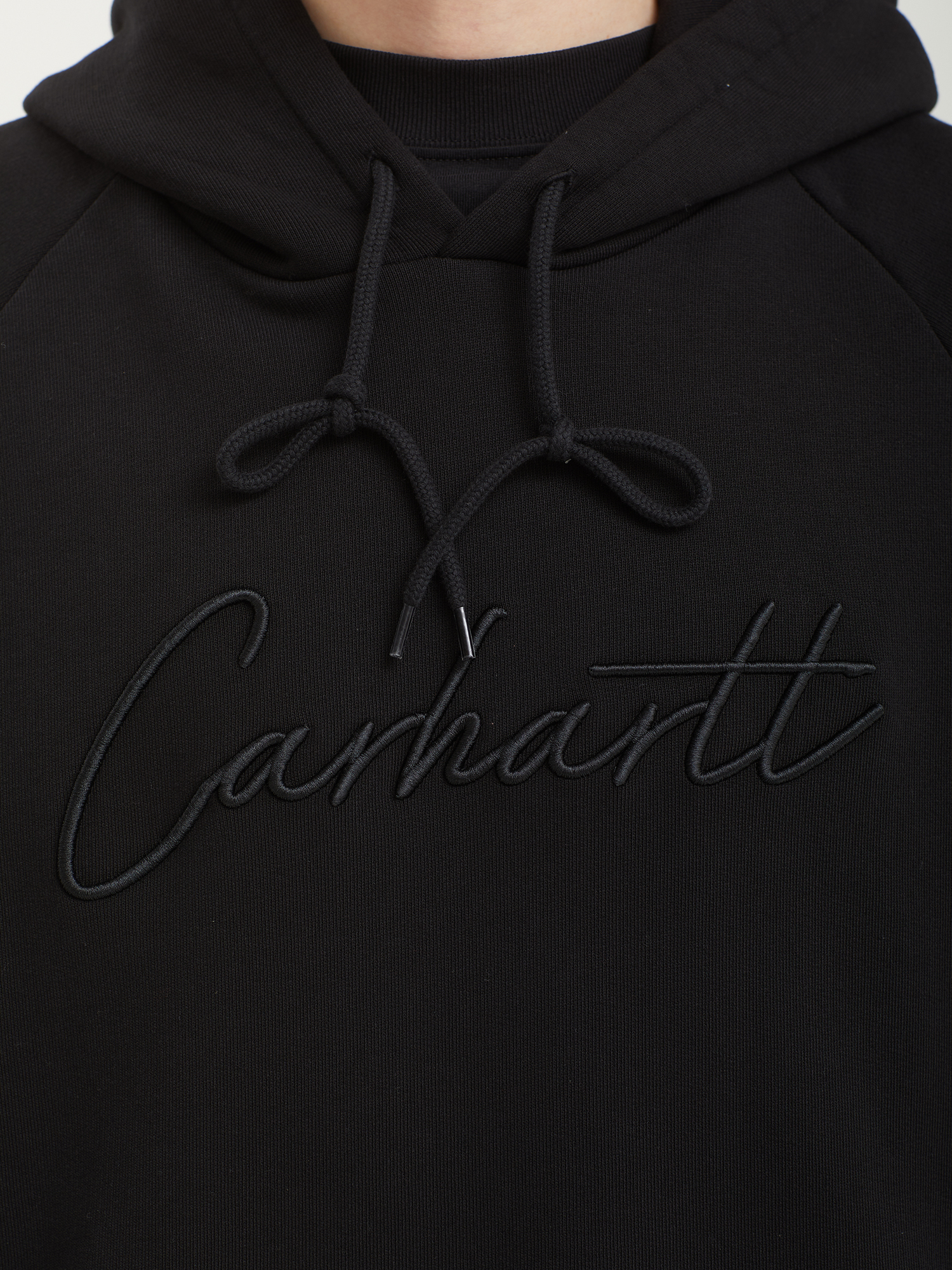 Толстовка Carhartt WIP Hooded Ray Sweatshirt выполнена из плотного хлопкового материала с петлевой изнанкой, без ворса. Модель имеет свободный крой, регулируемый капюшон и вместительный накладной карман. Крупная вышивка на фронтальной части завершает дизайн.