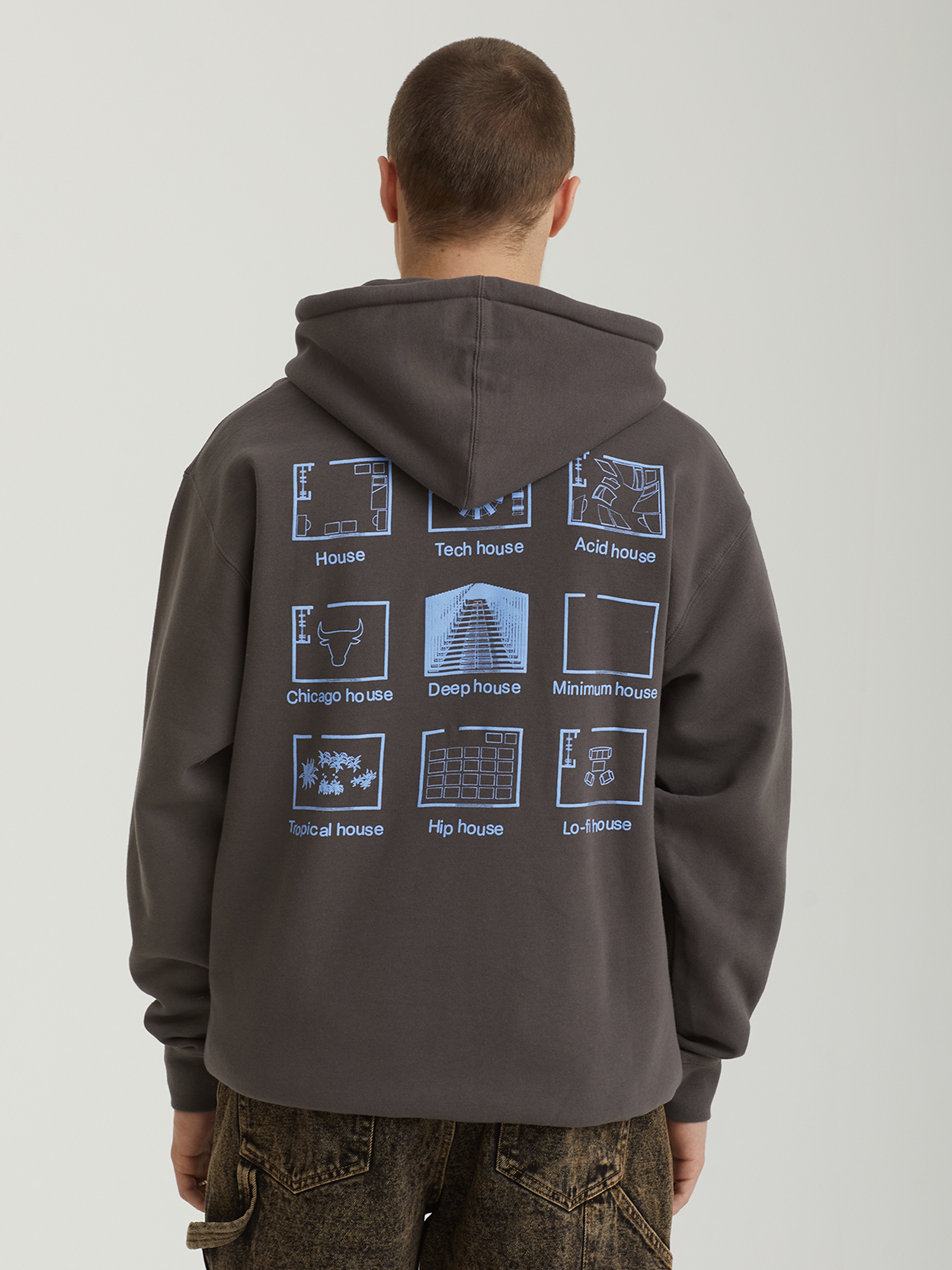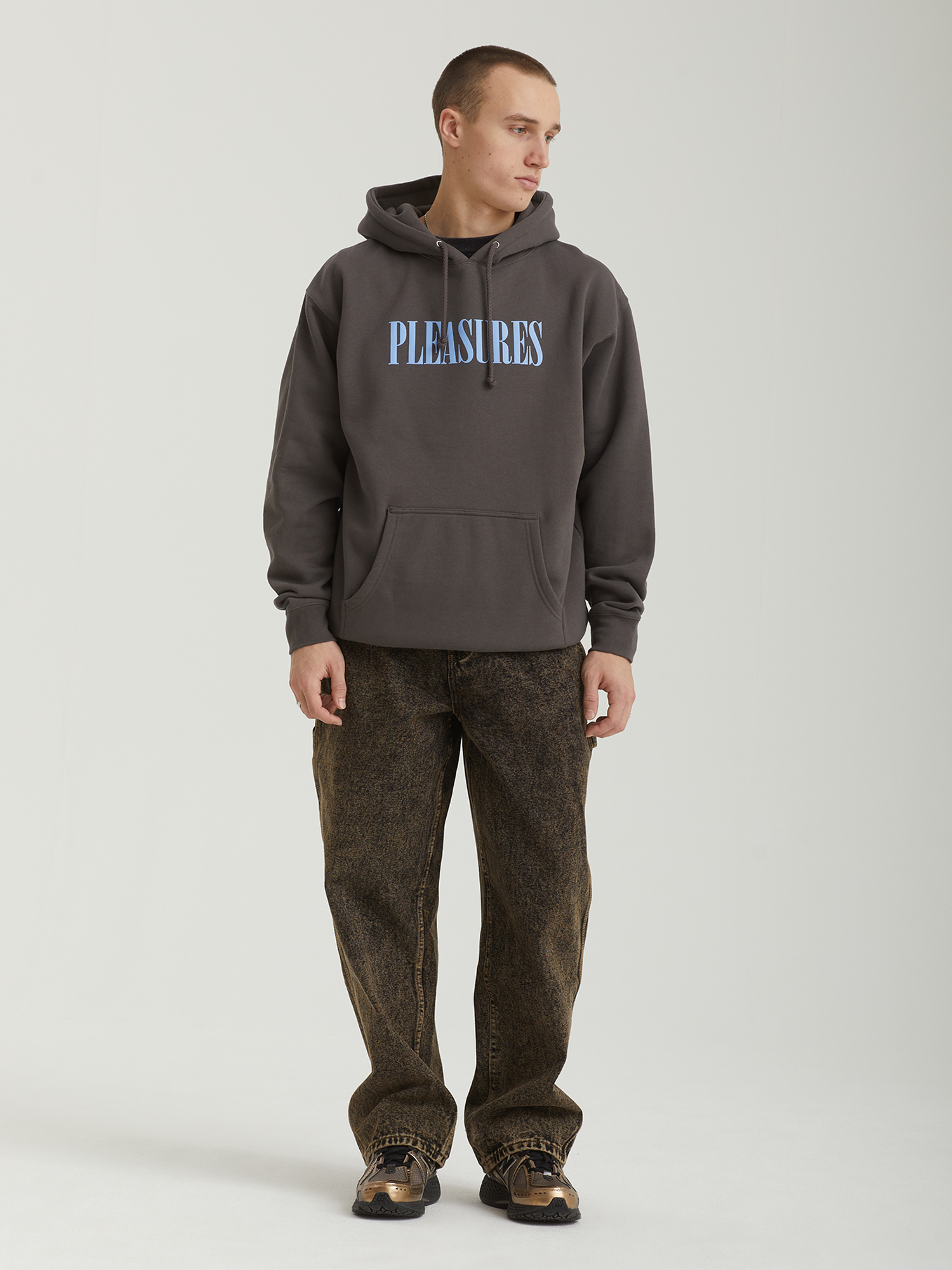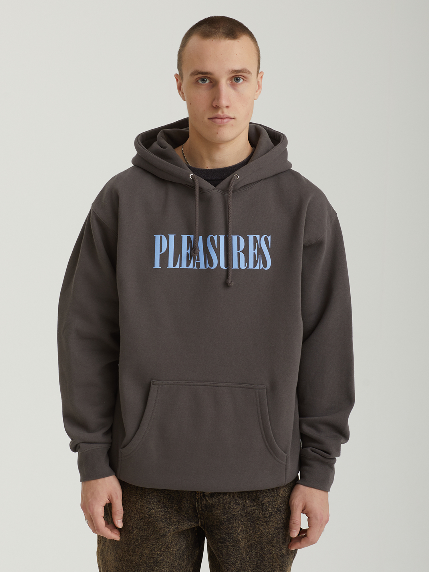 Худи Pleasures из смесового трикотажа на основе хлопка. Модель имеет свободный крой и дополнена сезонными принтами с двух сторон. Оснащена регулируемым капюшоном, объемным карманом-кенгуру, эластичными манжетами и нижней резинкой в рубчик.