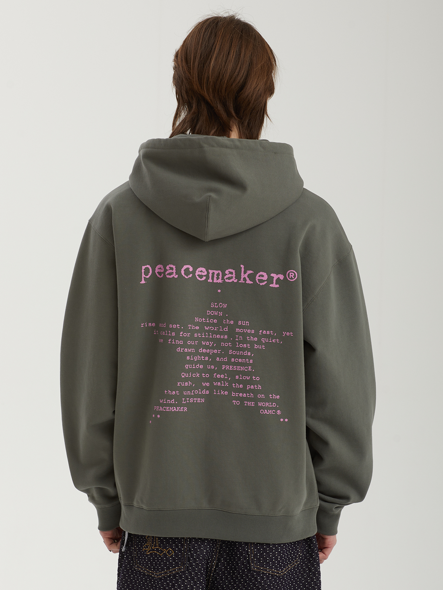 Толстовка Peacemaker выполнена из мягкого хлопкового трикотажа и оформлена графическими принтами с обеих сторон. Модель оснащена регулируемым капюшоном и удобным накладным карманом. Расслабленный силуэт, эластичные манжеты и нижняя резинка в рубчик обеспечивают комфортную посадку.